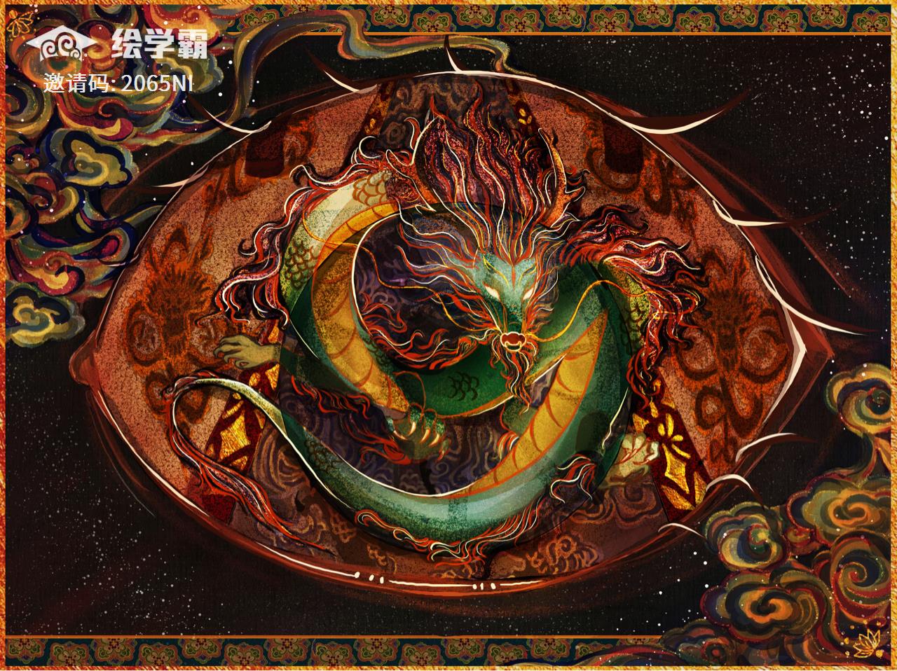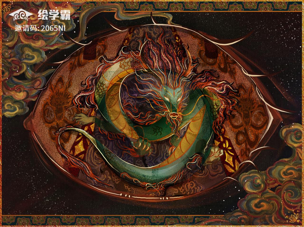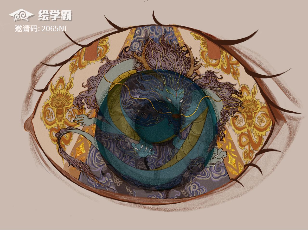 最后细化了一下,画的是叶公看到龙时惊恐的眼睛