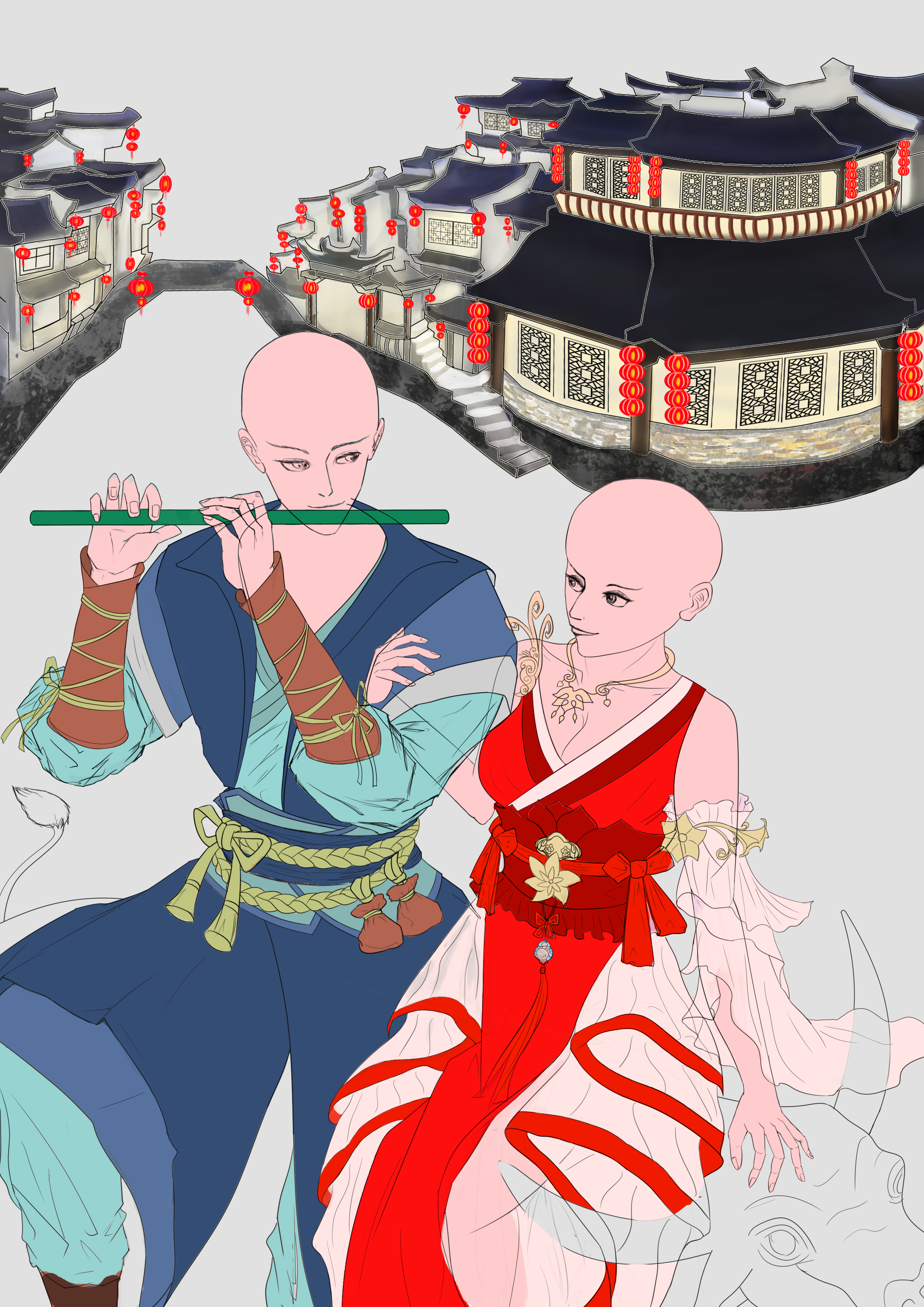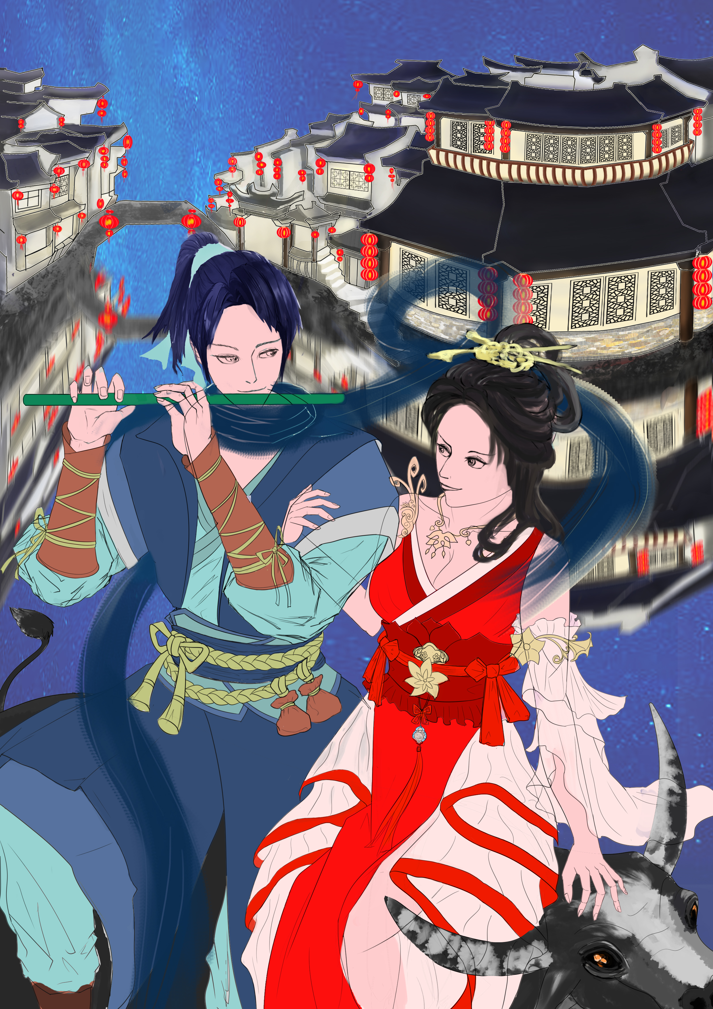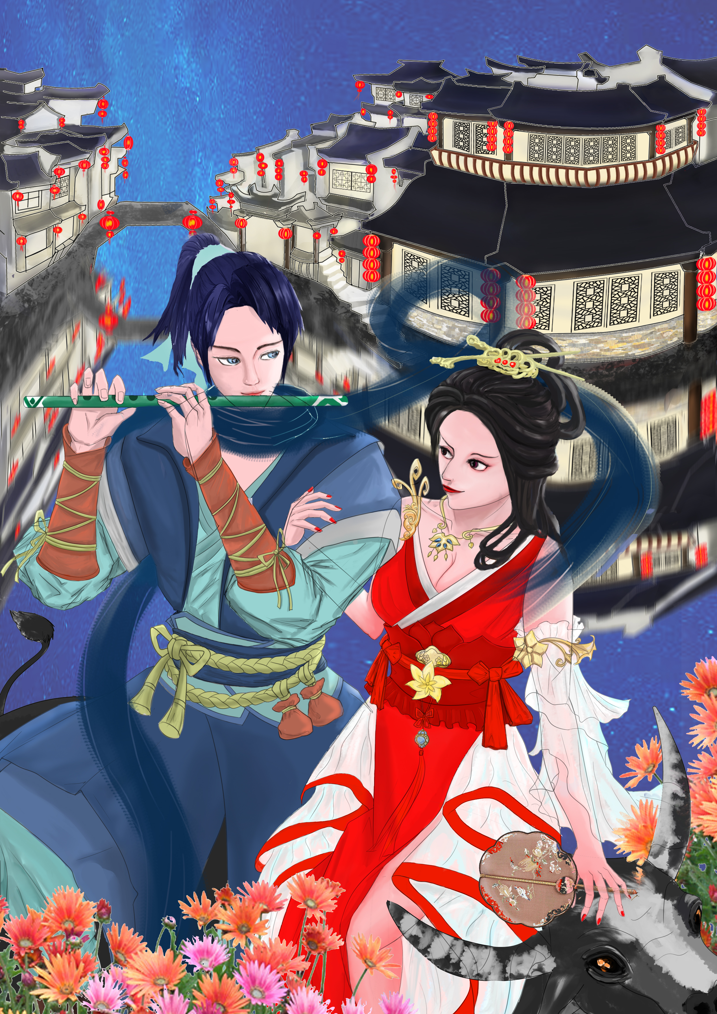描绘牛郎织女一年一度相会的情景,体现这个千年爱情故事的浪漫
