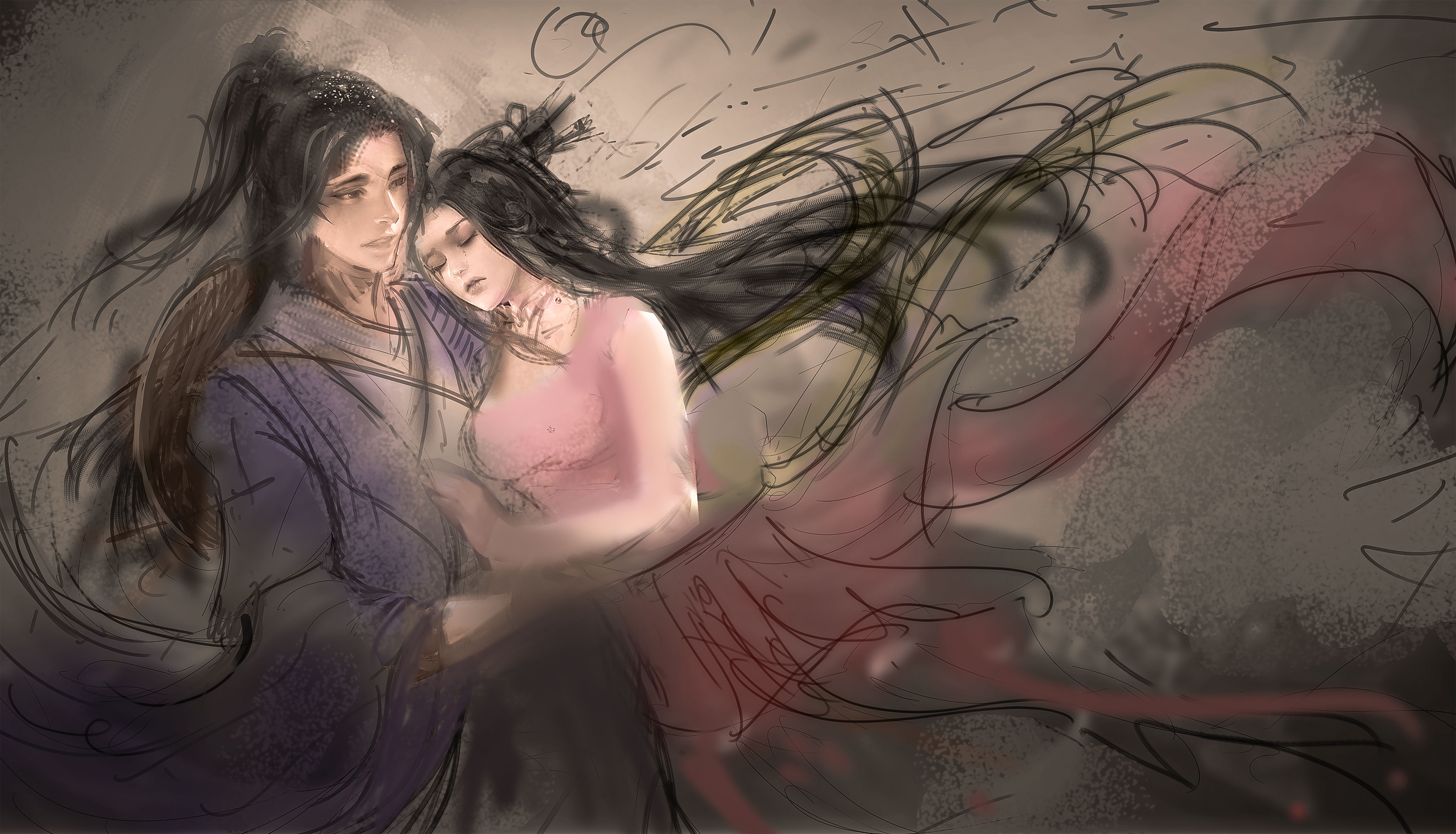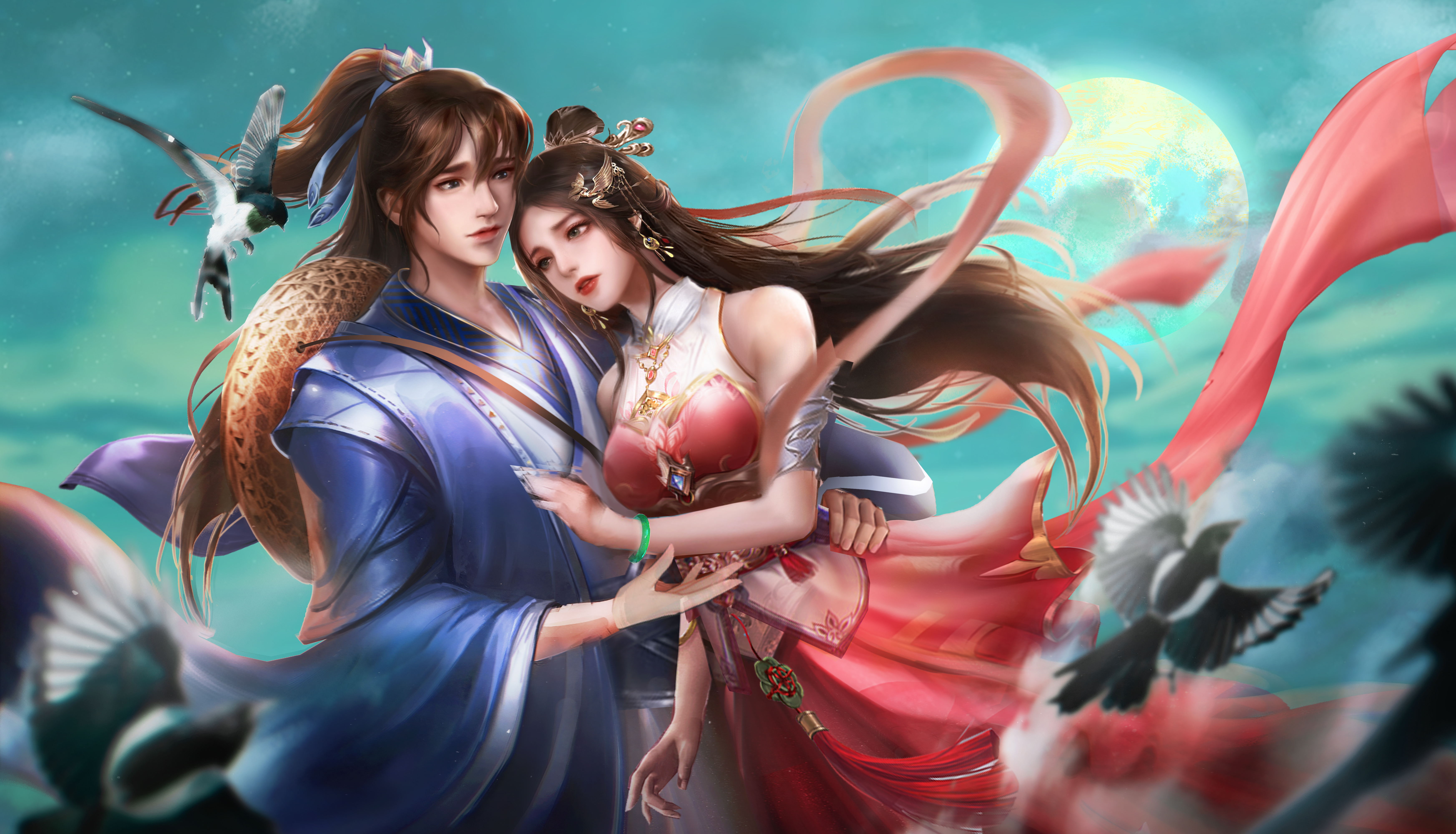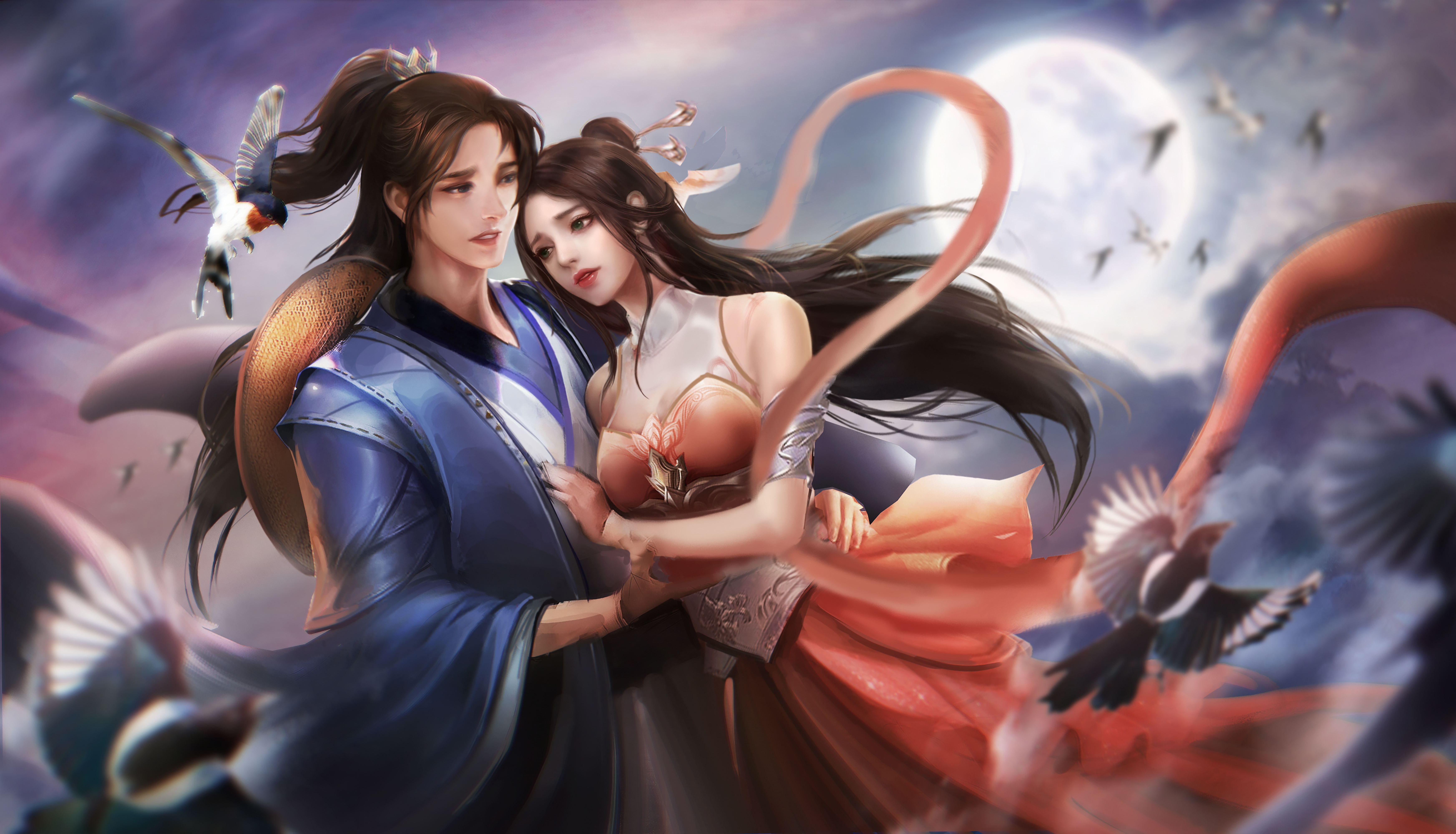 历经千辛万苦,牛郎与织女终于相见,相互依偎。