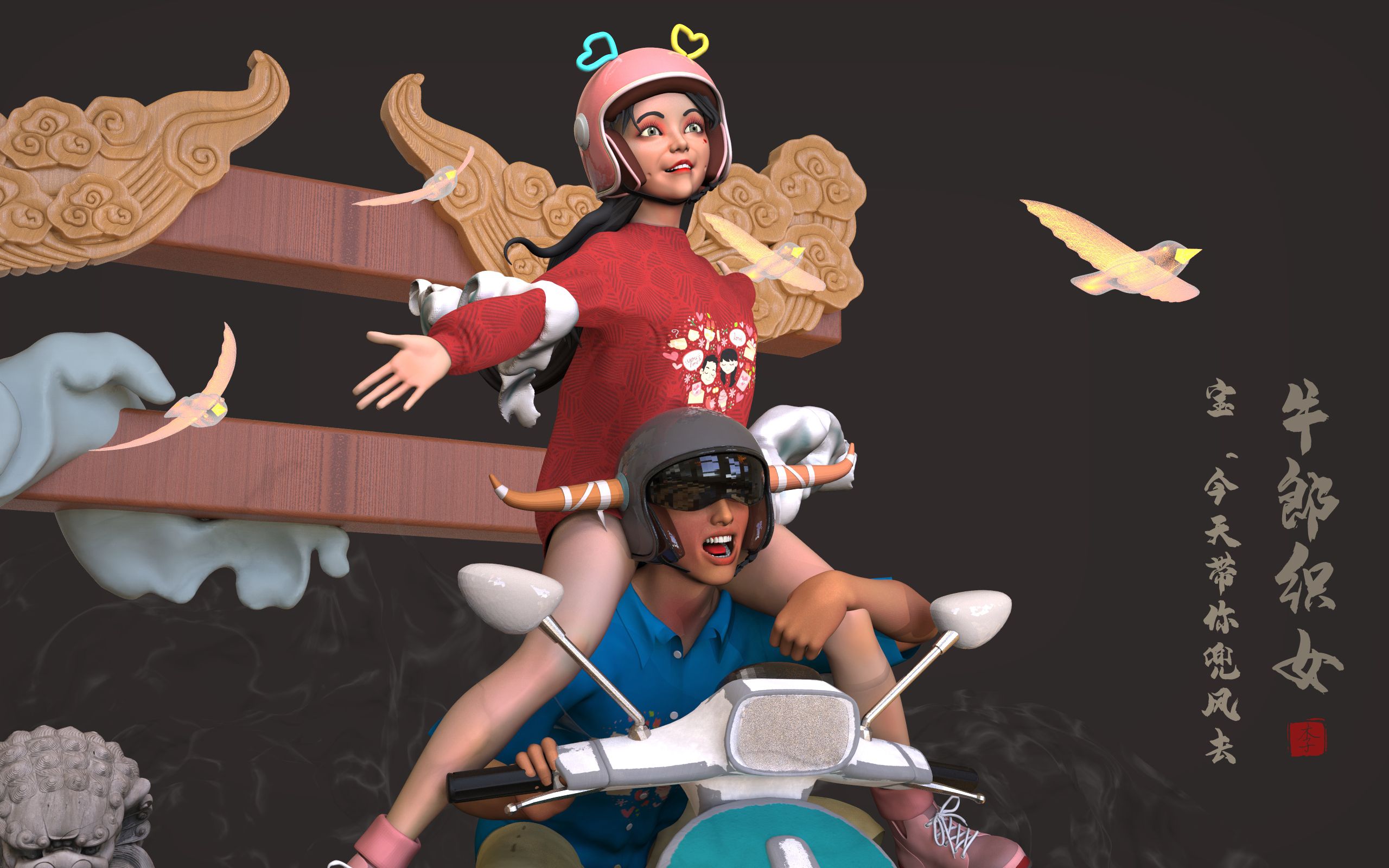 《牛郎织女--“宝,兜风去”》