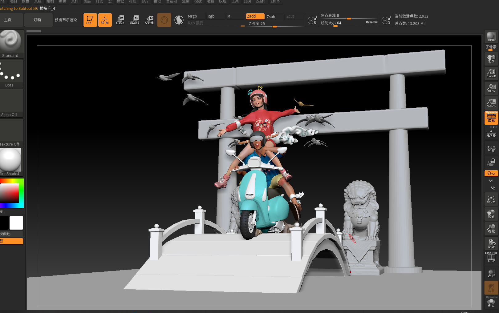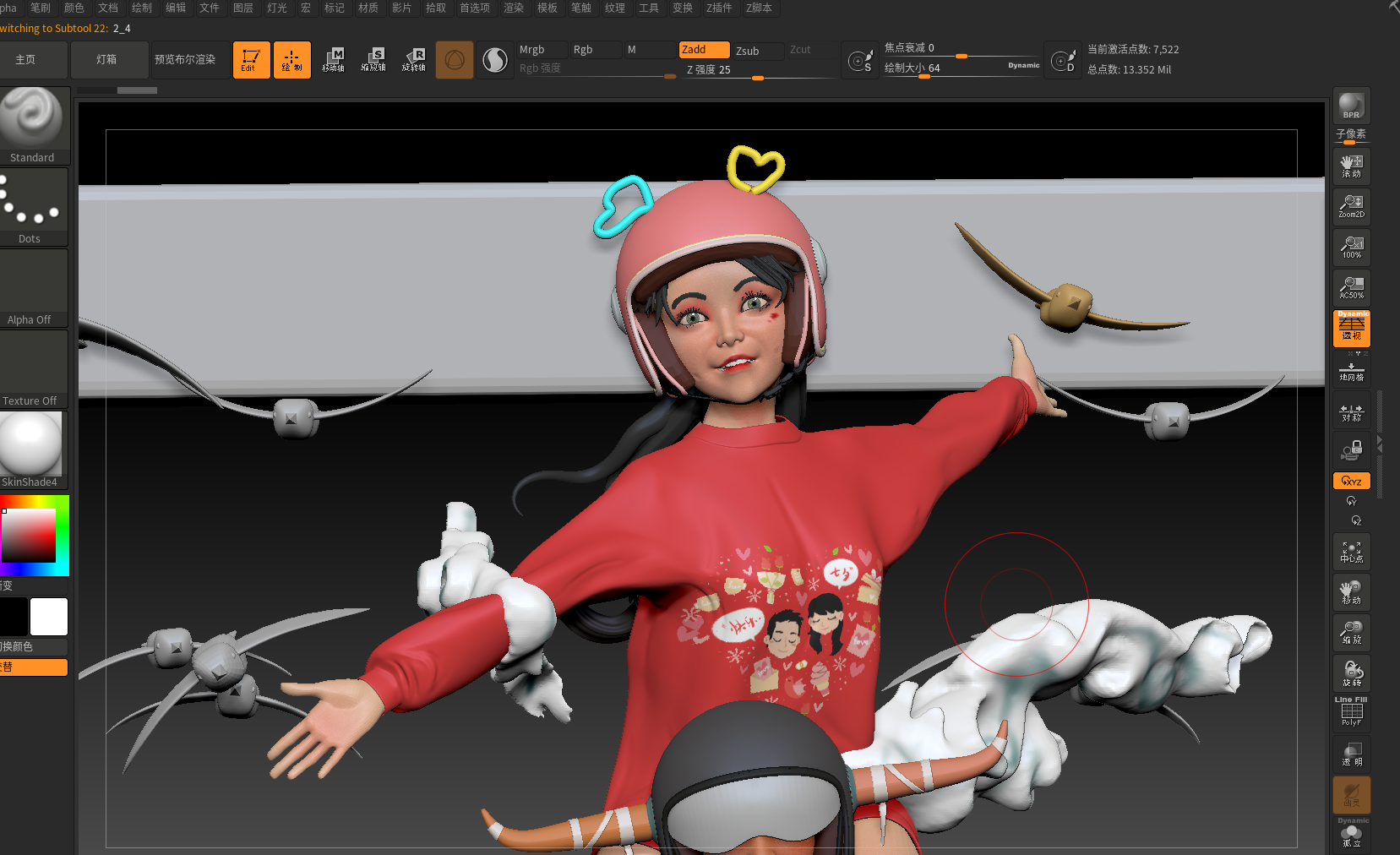 使用软件:模型使用zbrush以及3dsMax制作。贴图使用substance painter以及zbrush部分功能绘制。衣物使用md制作。最终使用keyshot渲染。