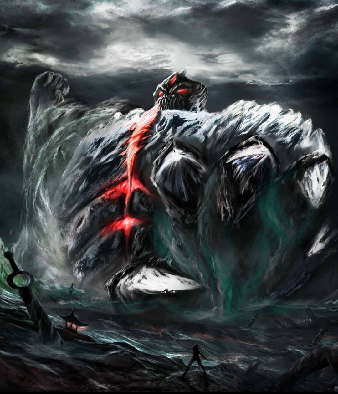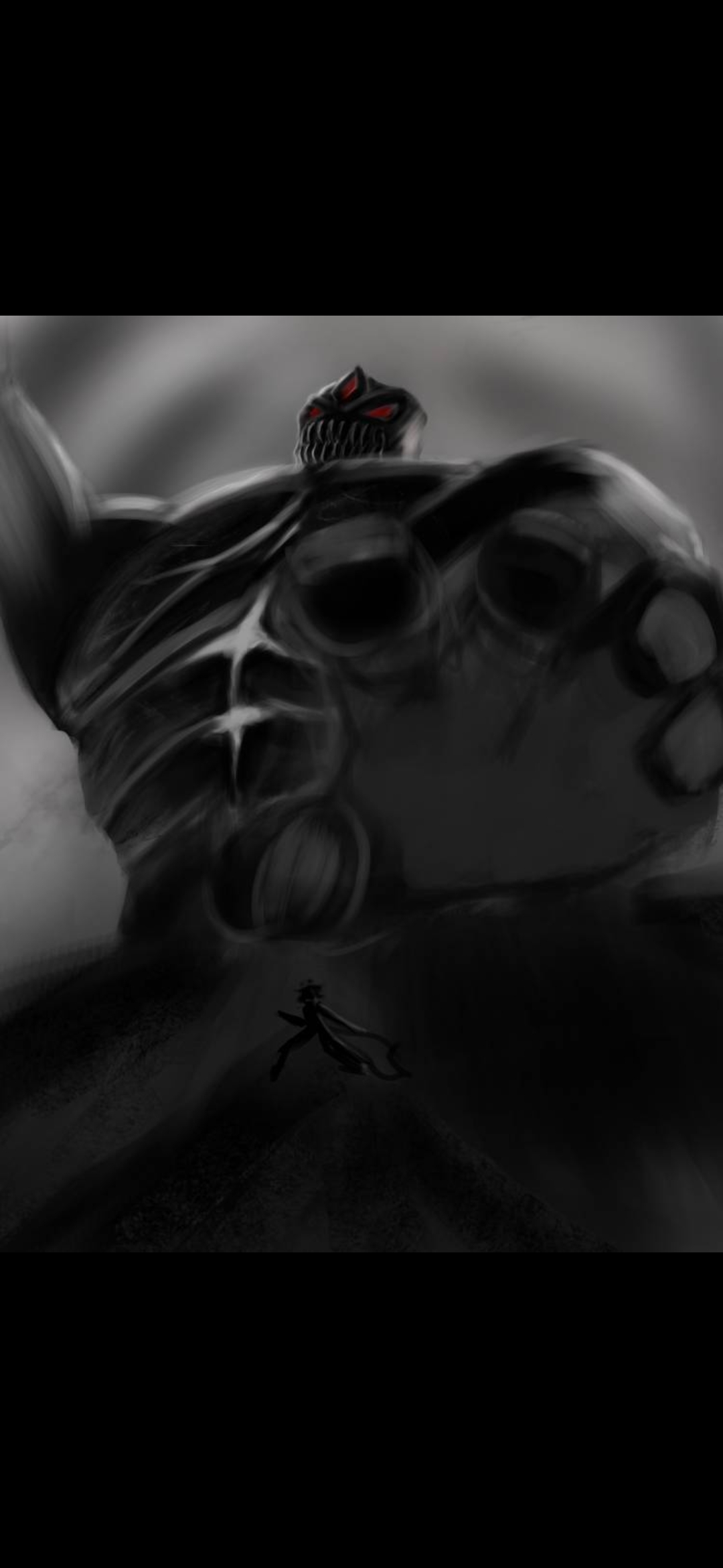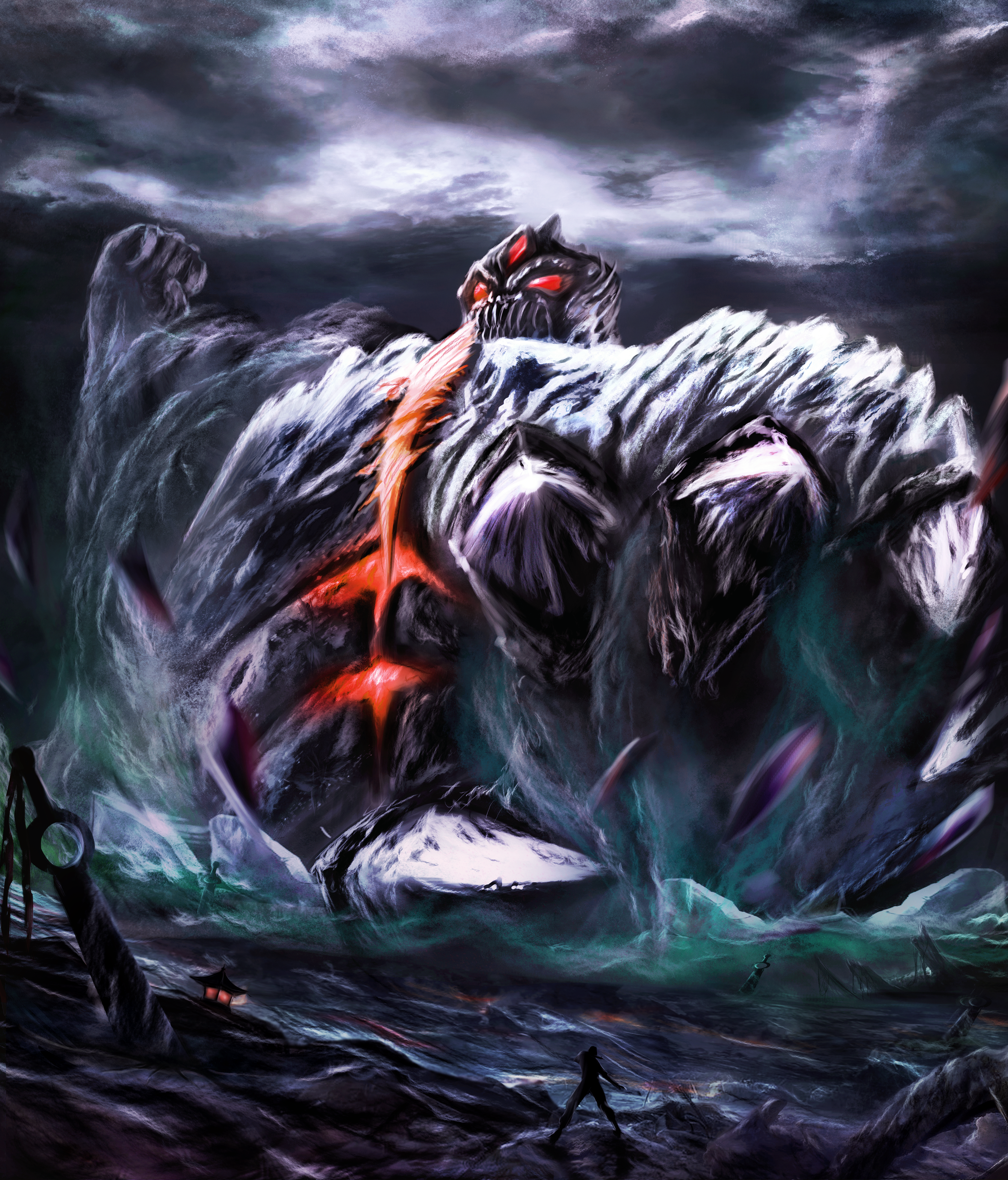 魈是一个凶残的怪兽 为了突出他的残忍 特意画了巨大化这样能显示出震撼效果