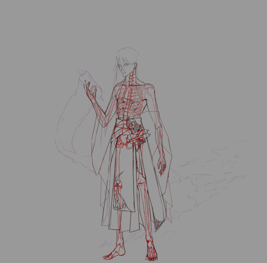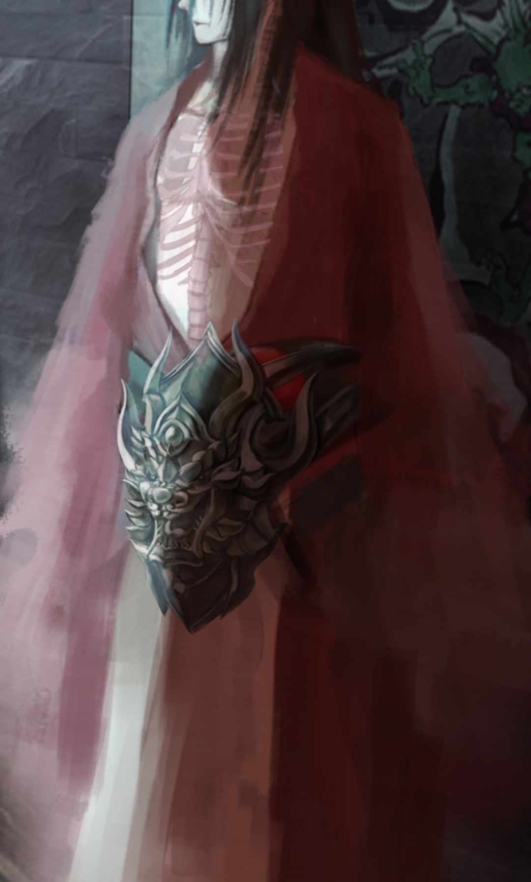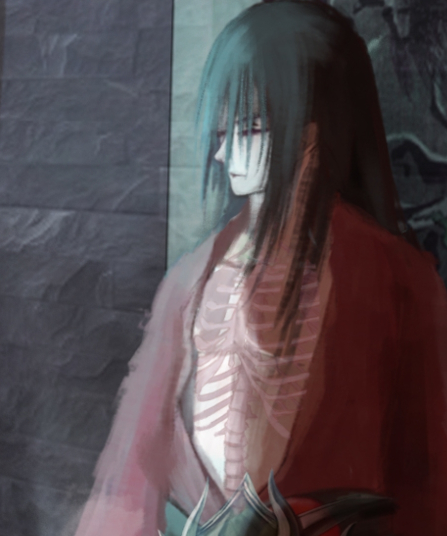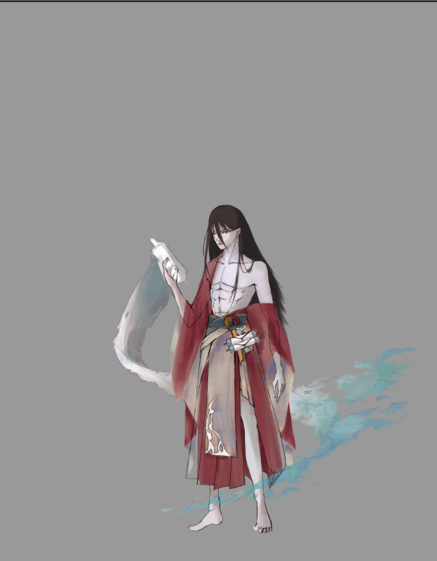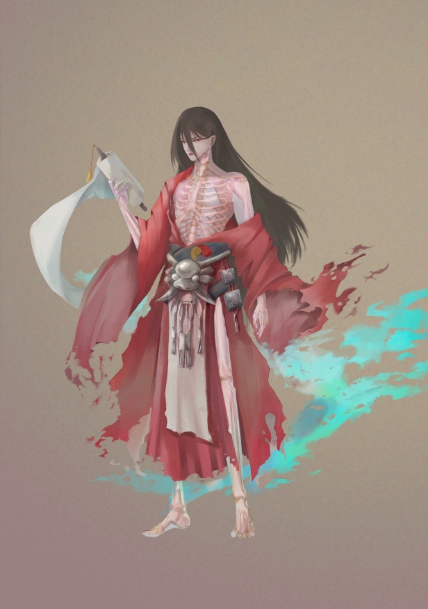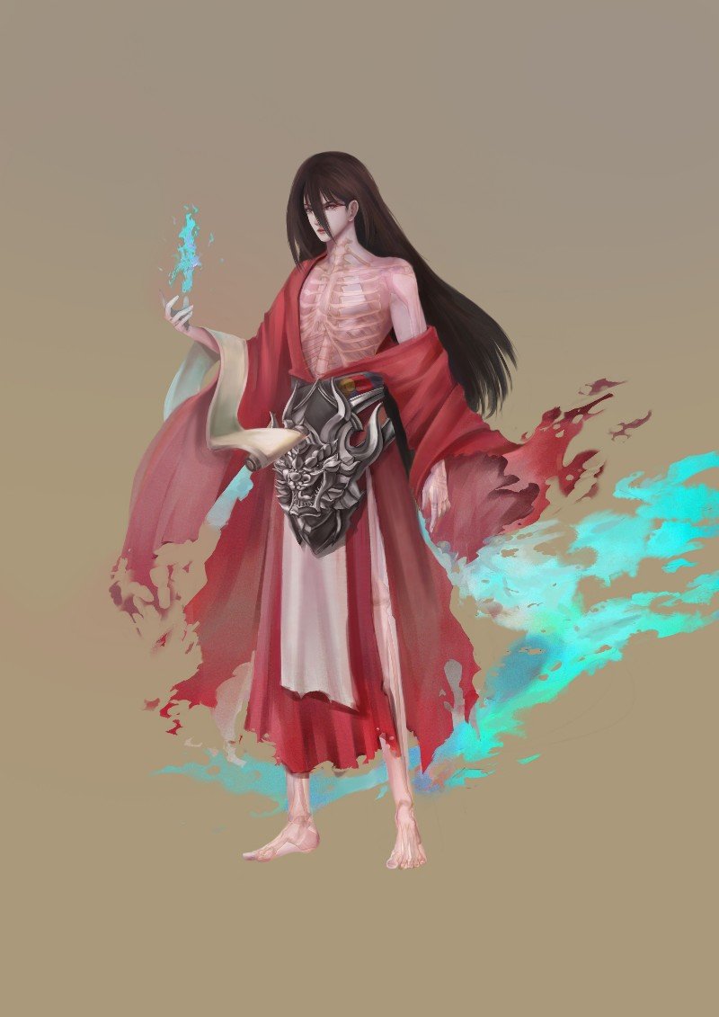 关于空心鬼的描写,胸膛是透明的,所以我设计角色的时候做了一个透过皮肤看到骨头的形象。