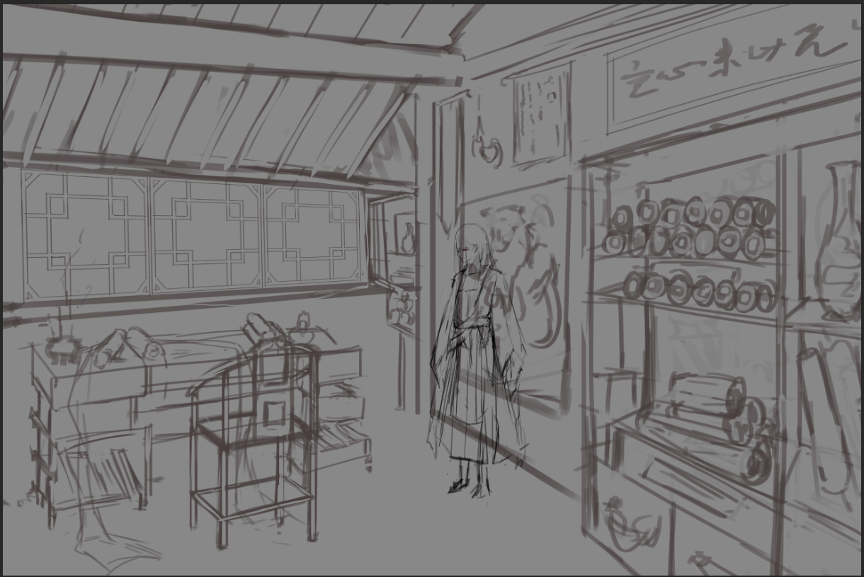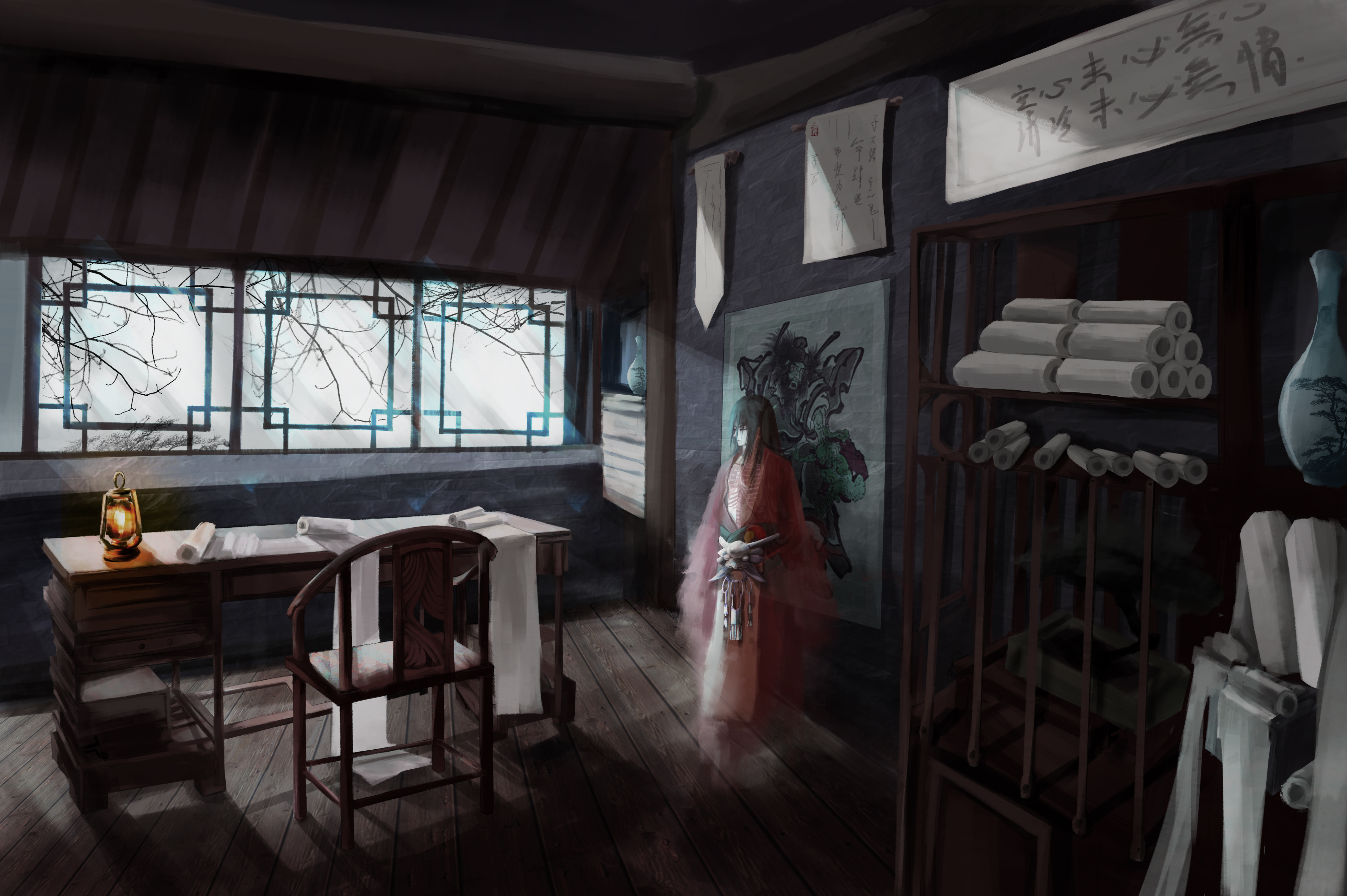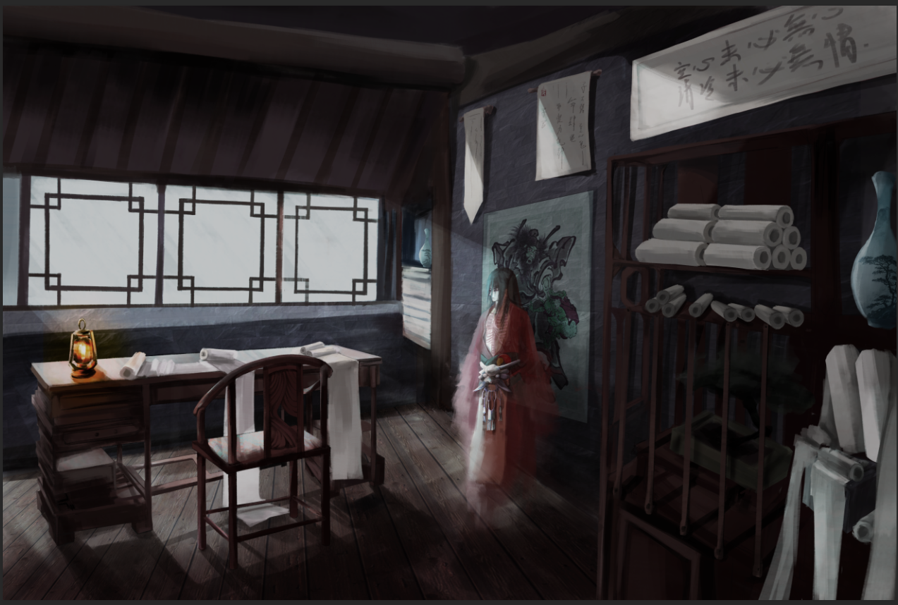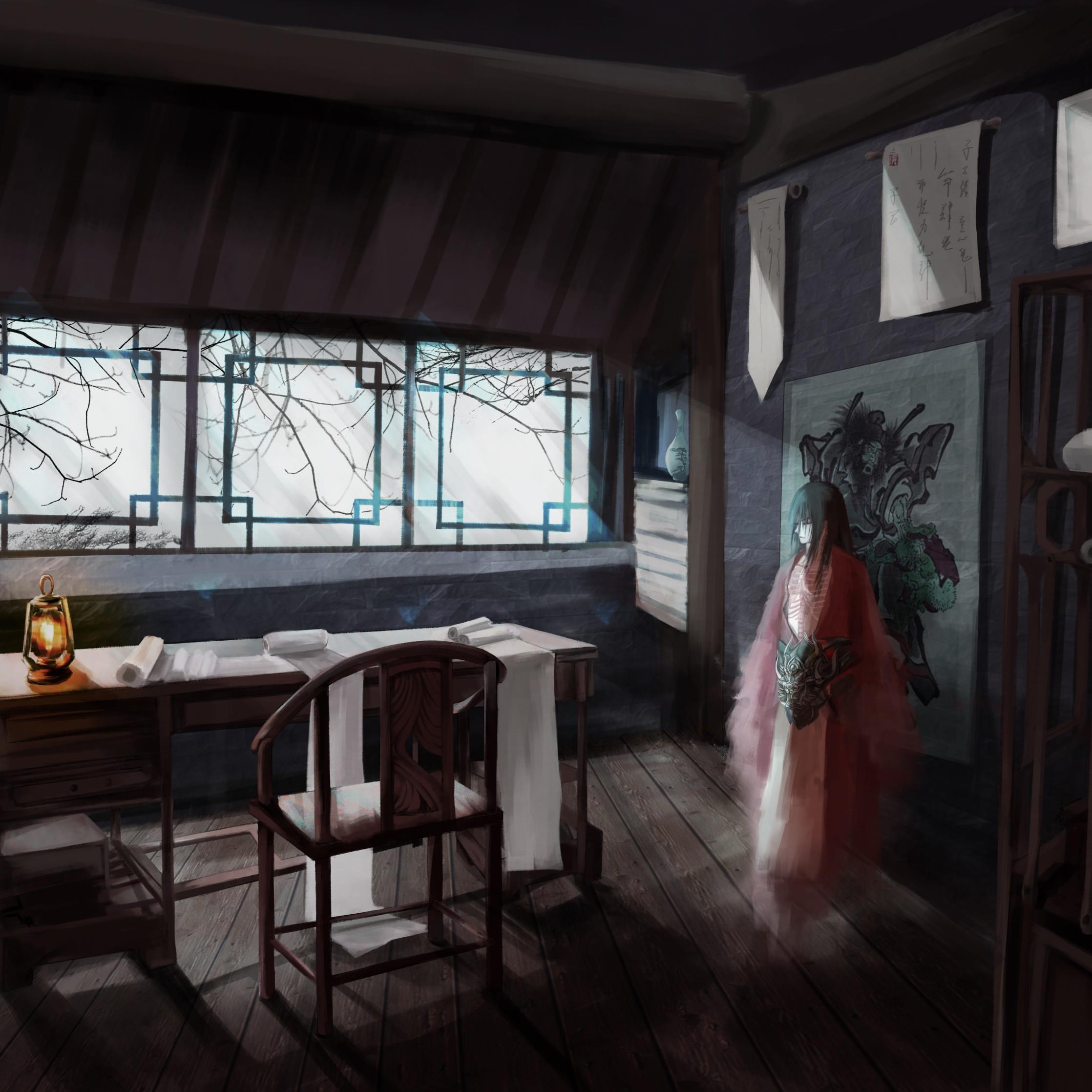 关于空心鬼的描写,胸膛是透明的,所以我设计角色的时候做了一个透过皮肤看到骨头的形象。