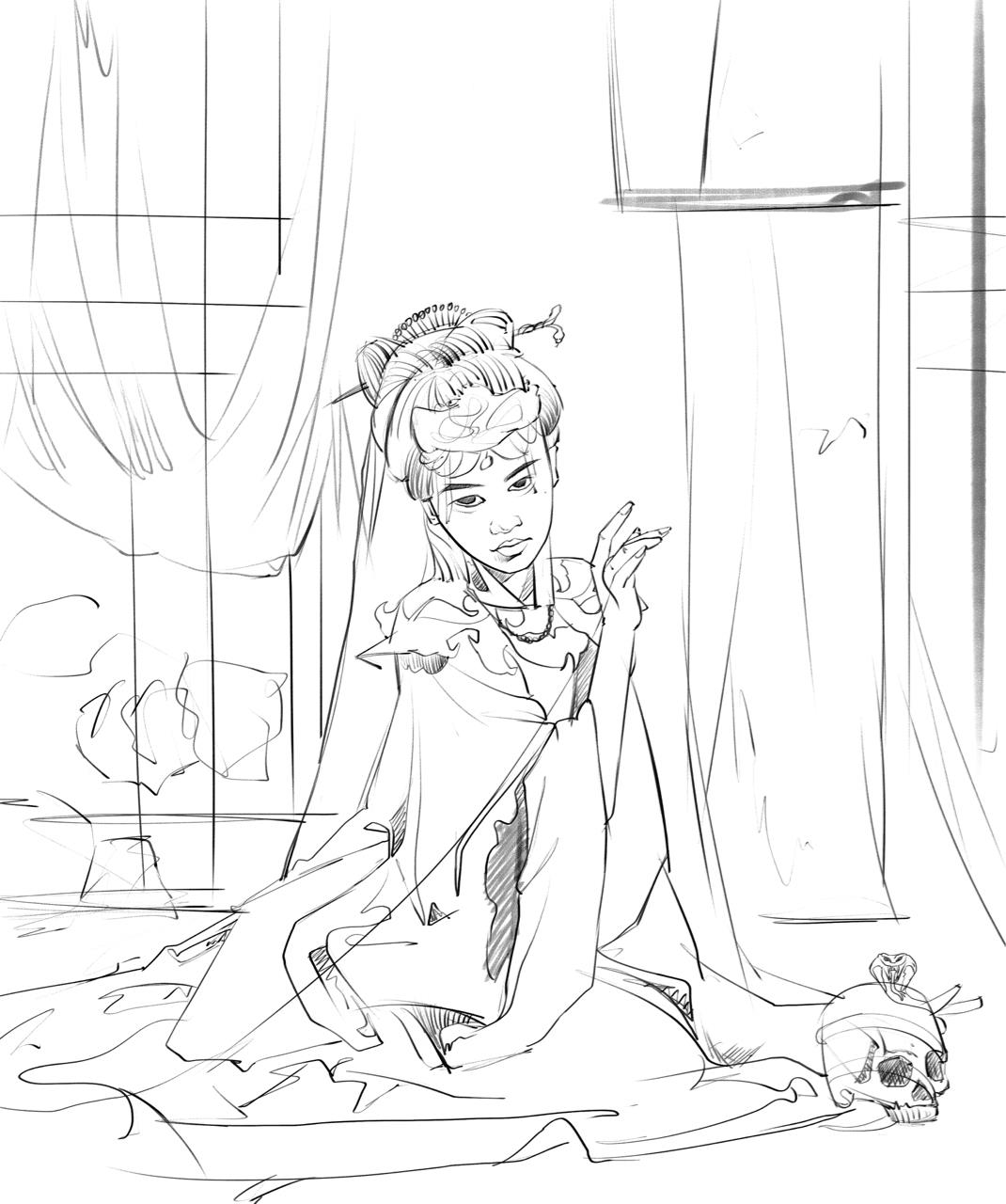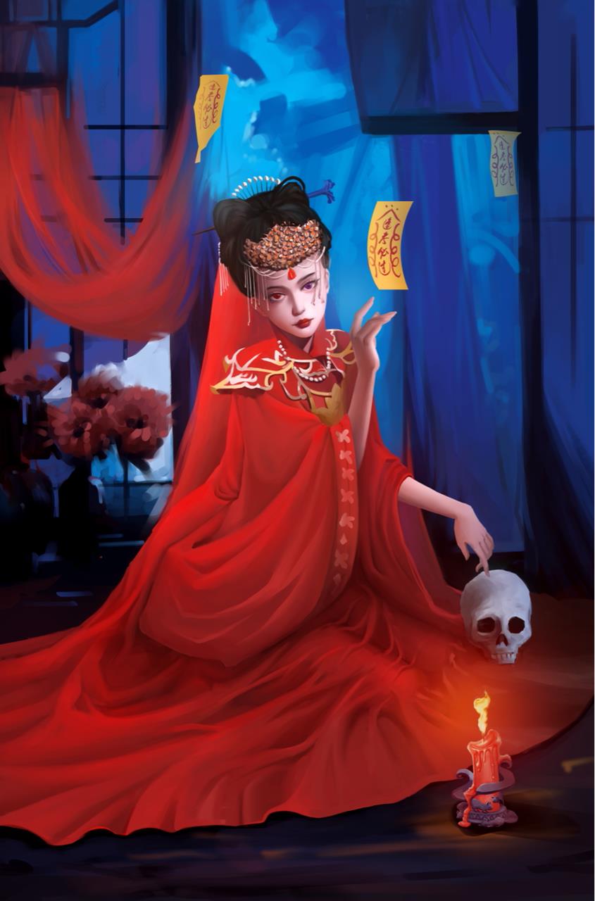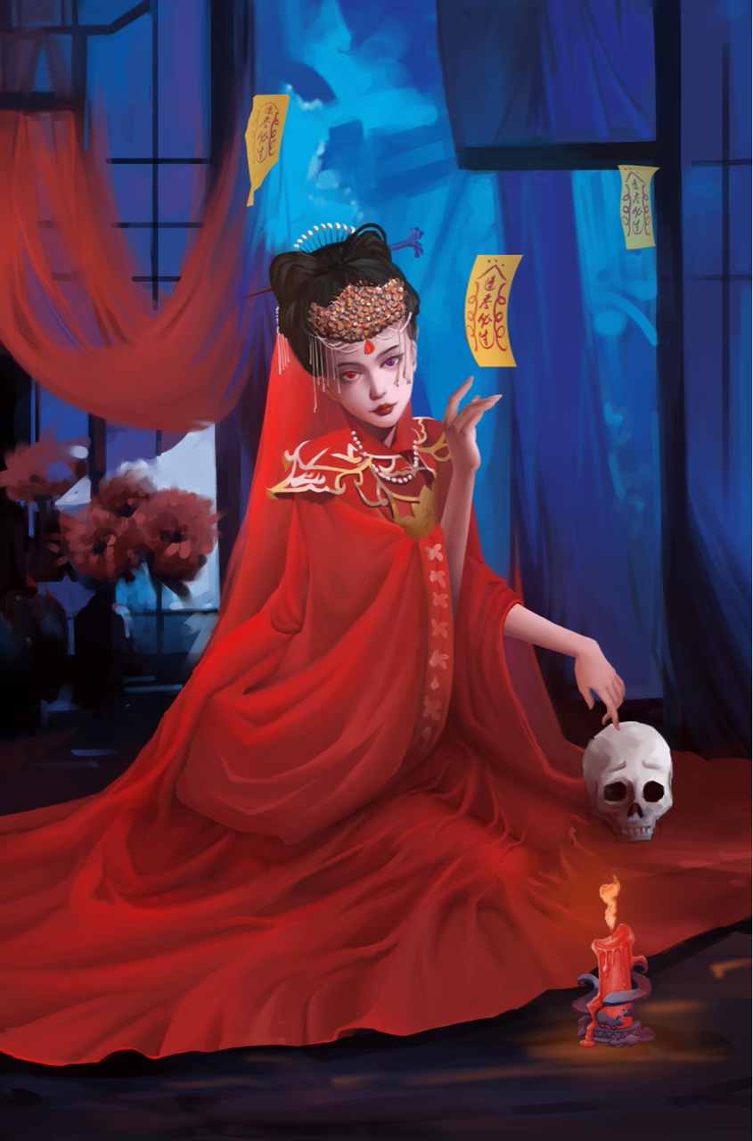 谈到聊斋第一映像就是鬼新娘 、当时也没什么好的点子 就想着画一个比较有氛围感的鬼新娘 符合聊斋这个主题就好了