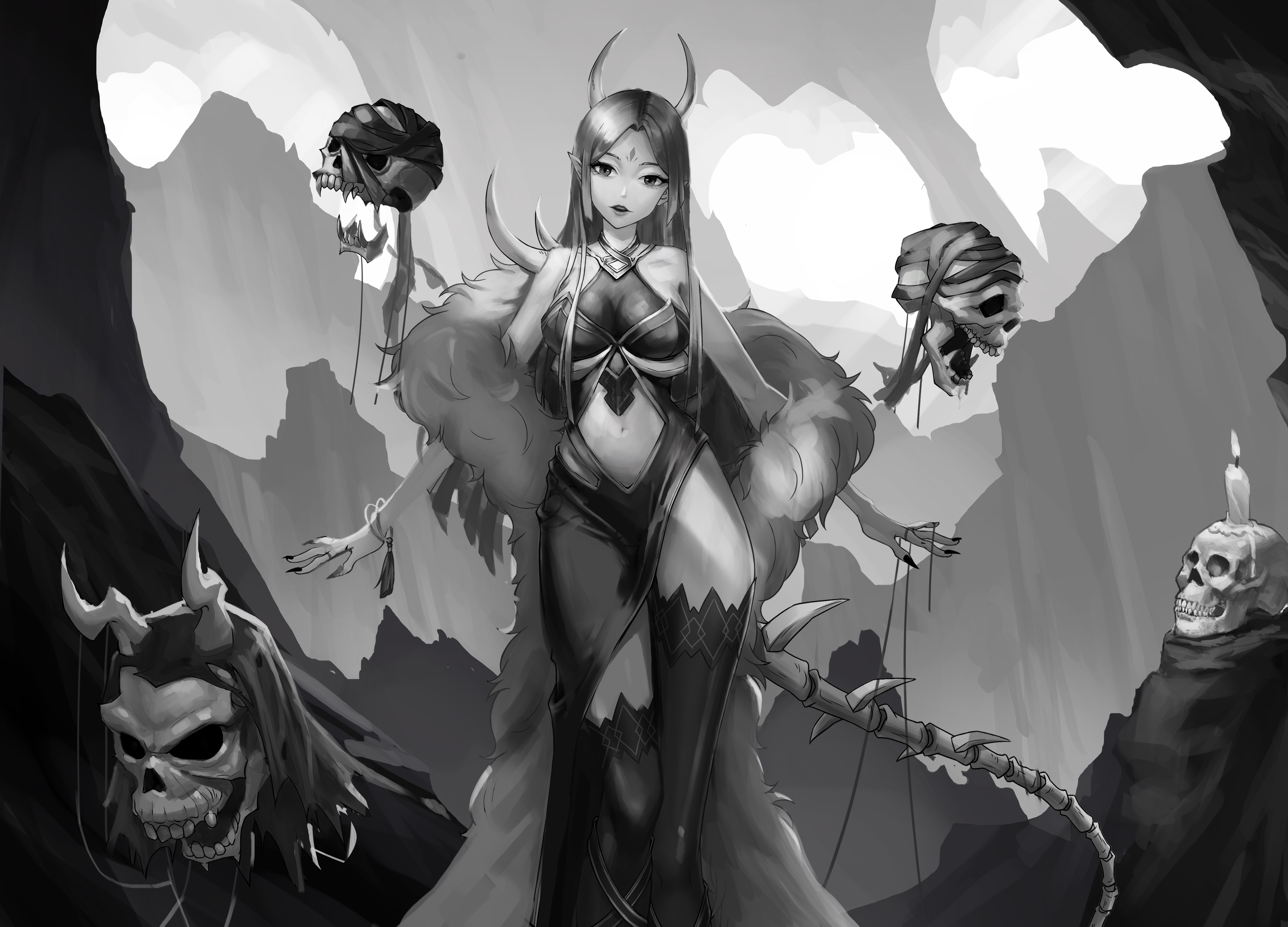 人们熟知的白骨精的形象大多源自于西游记,书中的白骨精在大部分读者心中都是个阴险狡诈、十恶不赦的妖精。然而在我心中,白骨夫人是位端庄优雅、明辨是非的美丽女性,她生前也许有过非常悲惨的经历,才会在死后以妖怪的形式滞留人间。谣言四起,人们以讹传讹,将她妖魔化,她却始终保持着理智,清醒活出了自己的样子。