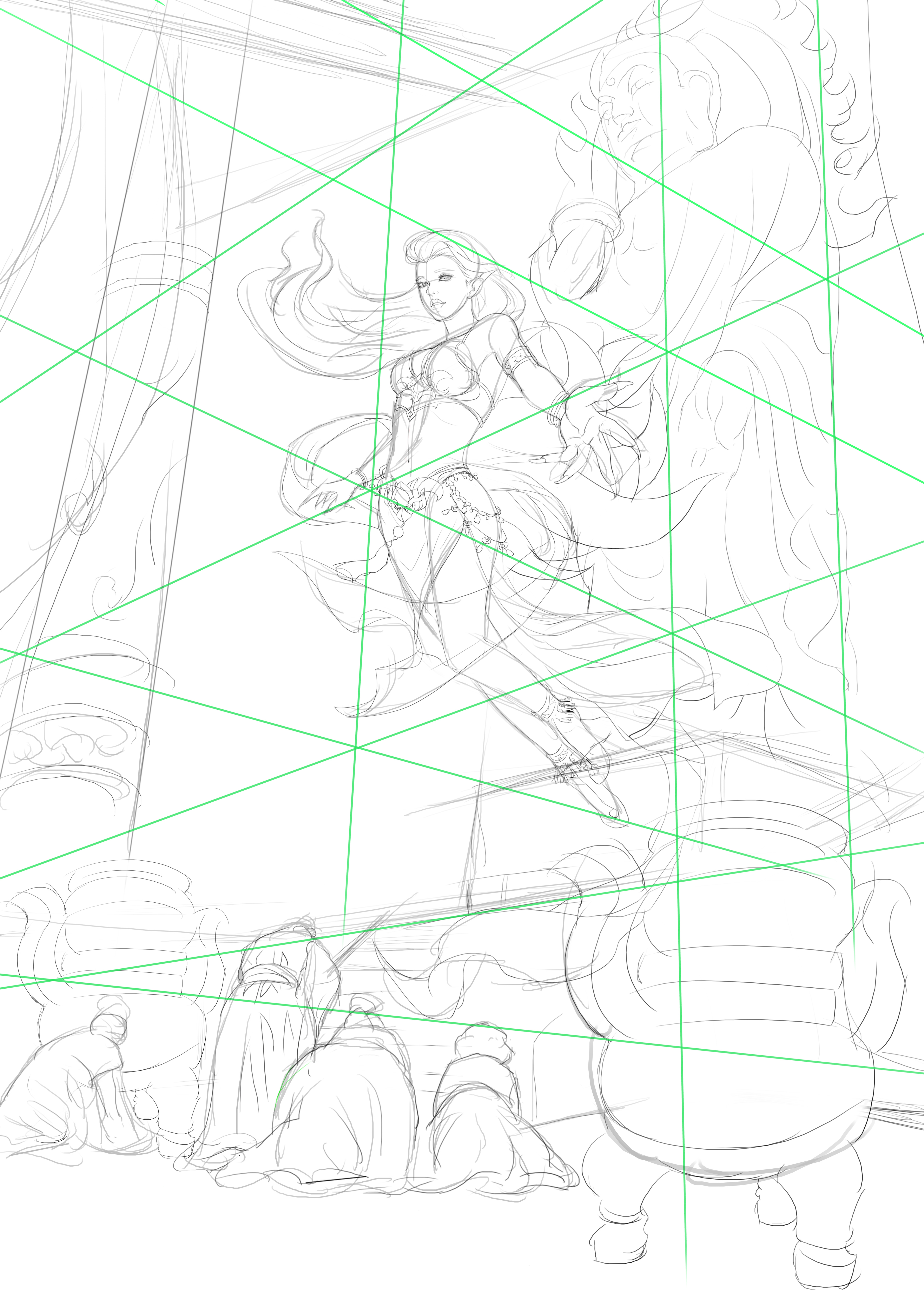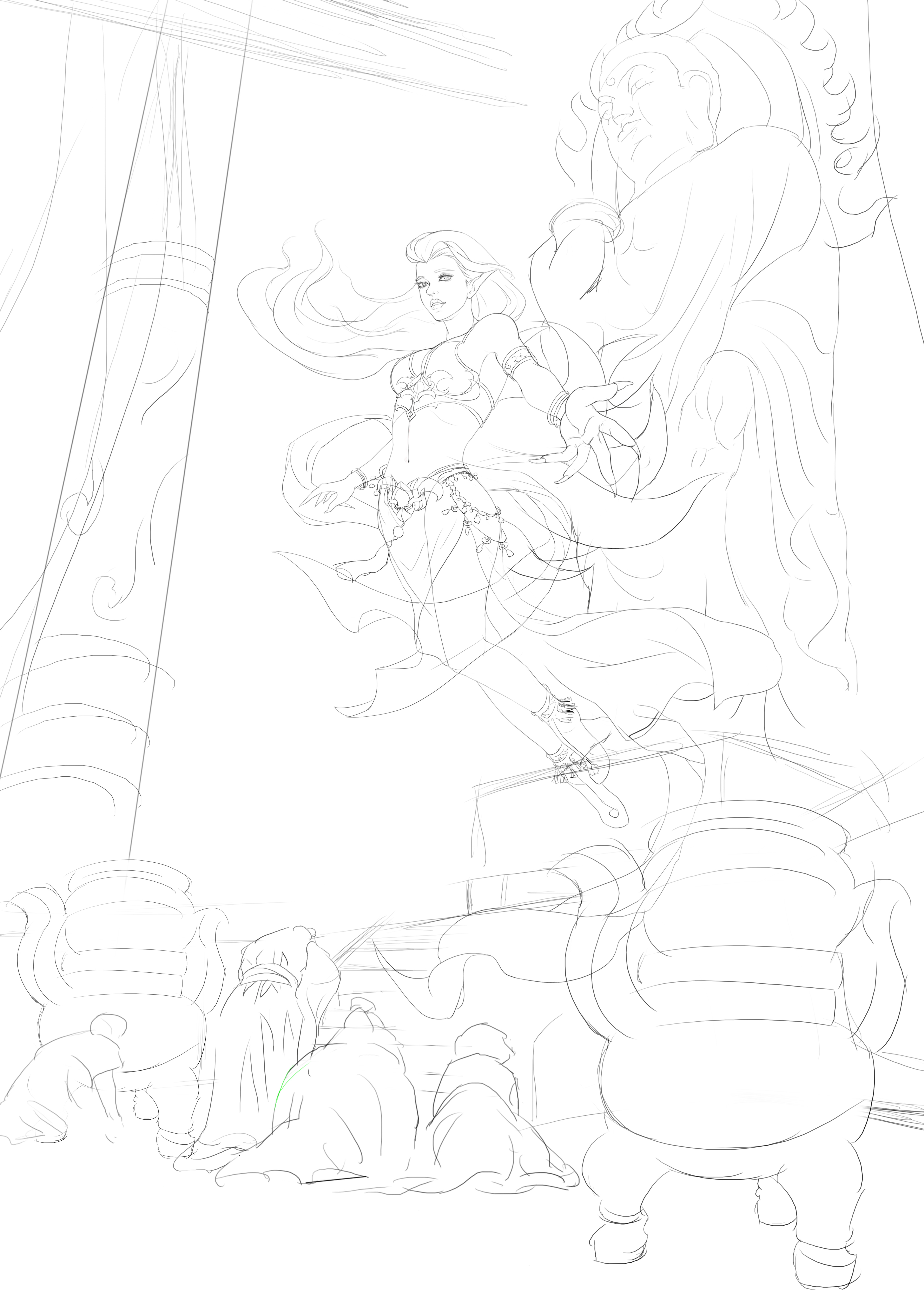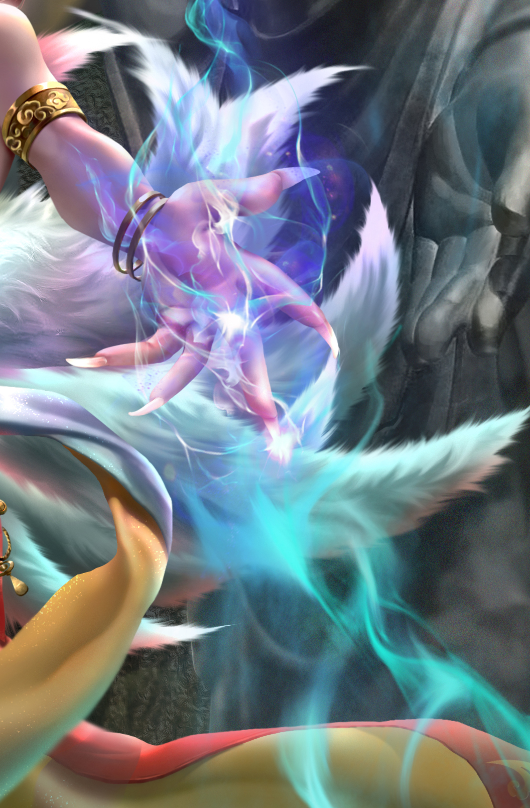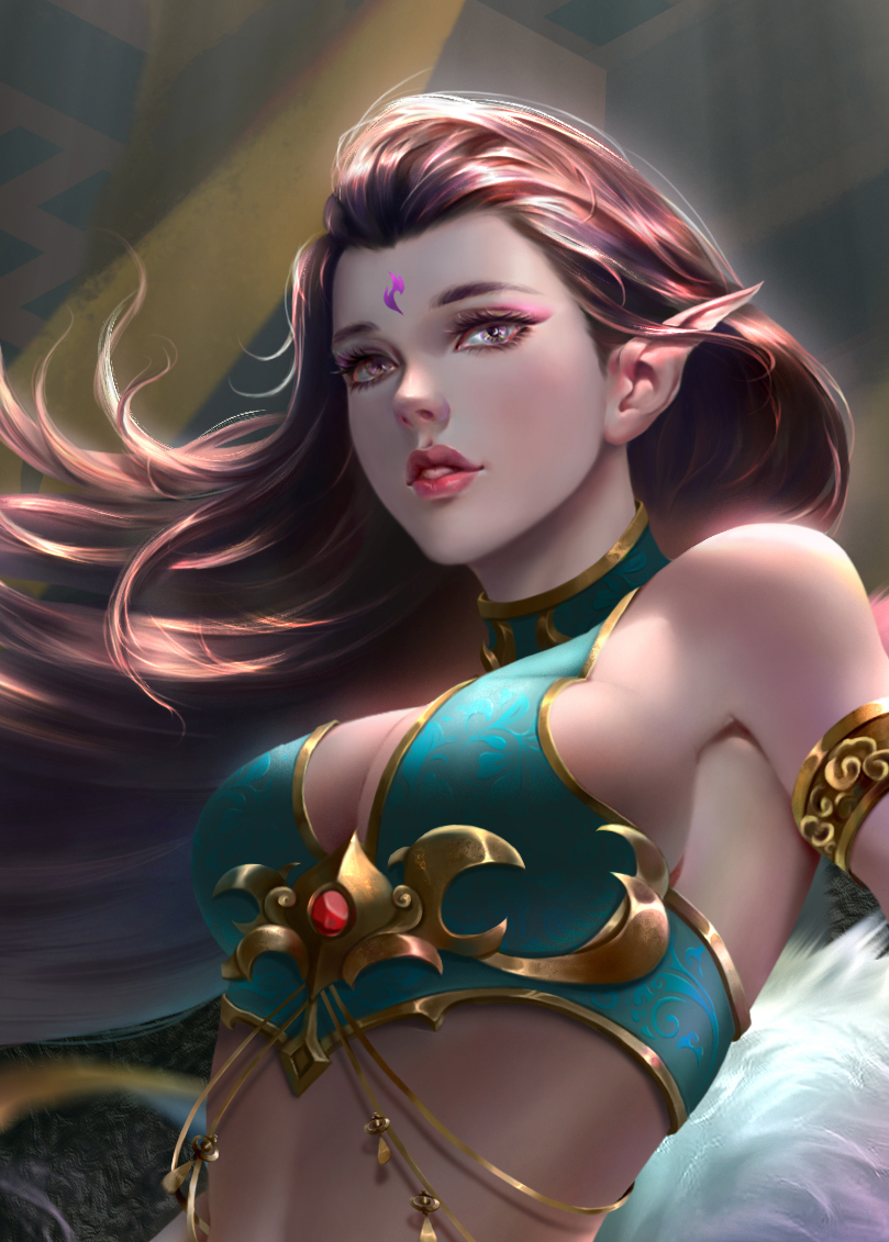 服装设计的灵感来源于敦煌壁画中的飞天服饰加以改进,本来还有点纠结,但是偶然看见壁画中有一“香音神”佛经中名“乾闼婆”她是美丽的满身香馥的菩萨,是天界不食烟火的乐神,因此被称为“香音神”,也就是“不啖酒肉,唯嗅香气之意”。结合本次设计的乃是借寺庙香火修行的狐妖,狐狸本身也是有一特殊的气味,而这只狐狸本就是一只明辨是非善恶的狐狸,飞舞的彩带和飘逸的裙摆,鲜艳的色彩和这个角色相得益彰,故此更加坚定了我的想法。