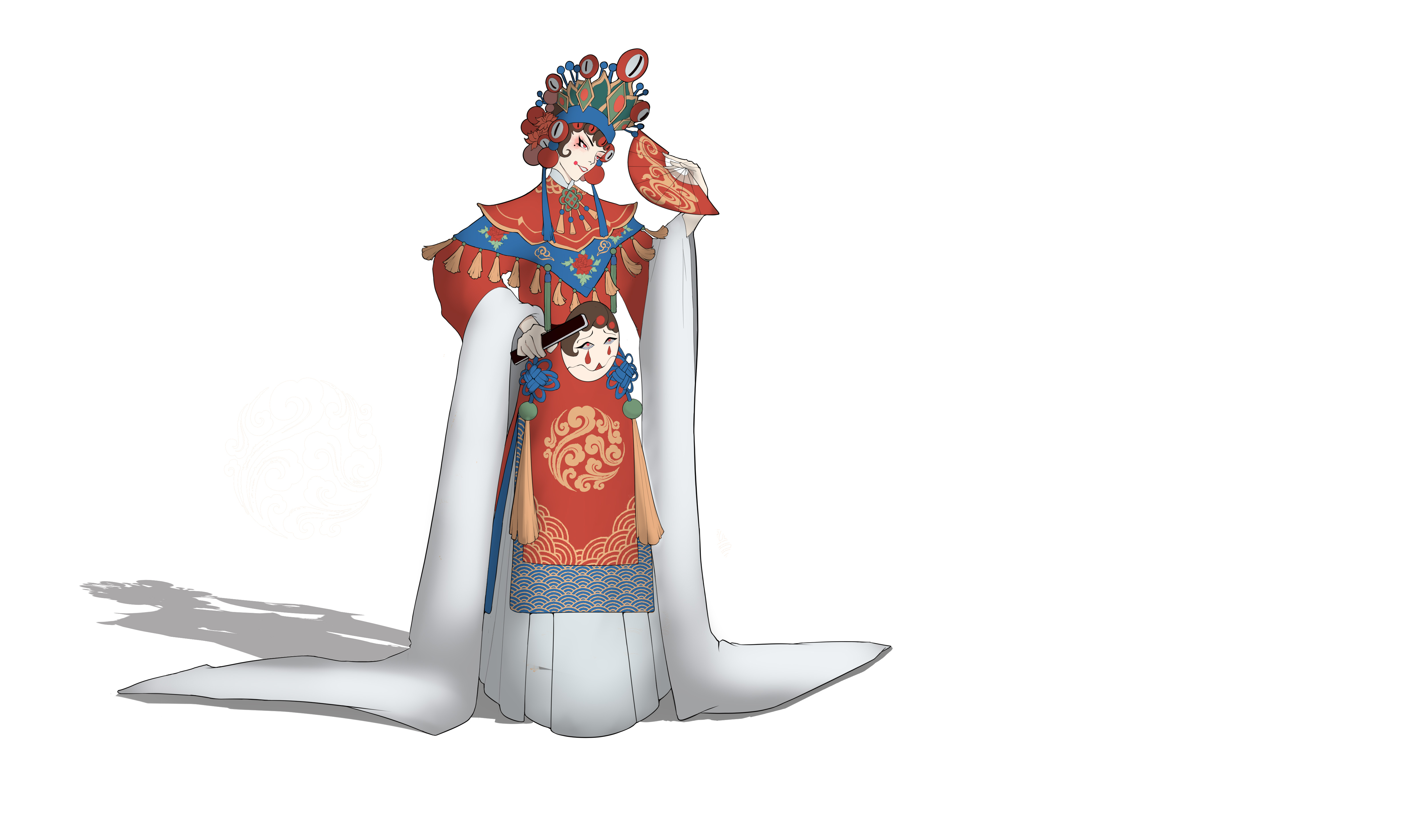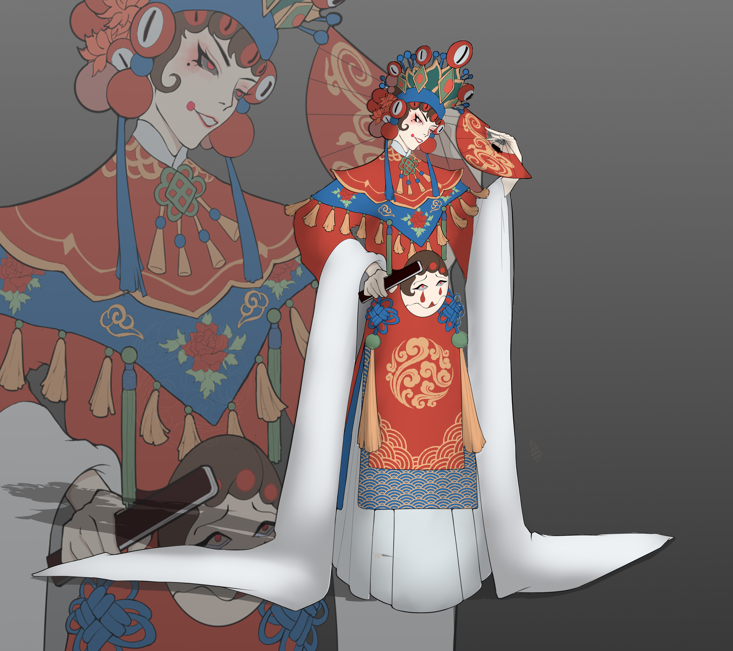一位唱花旦的男人,喜欢漂亮女人的脸。腰上的面具是备用的脸皮,是活的。