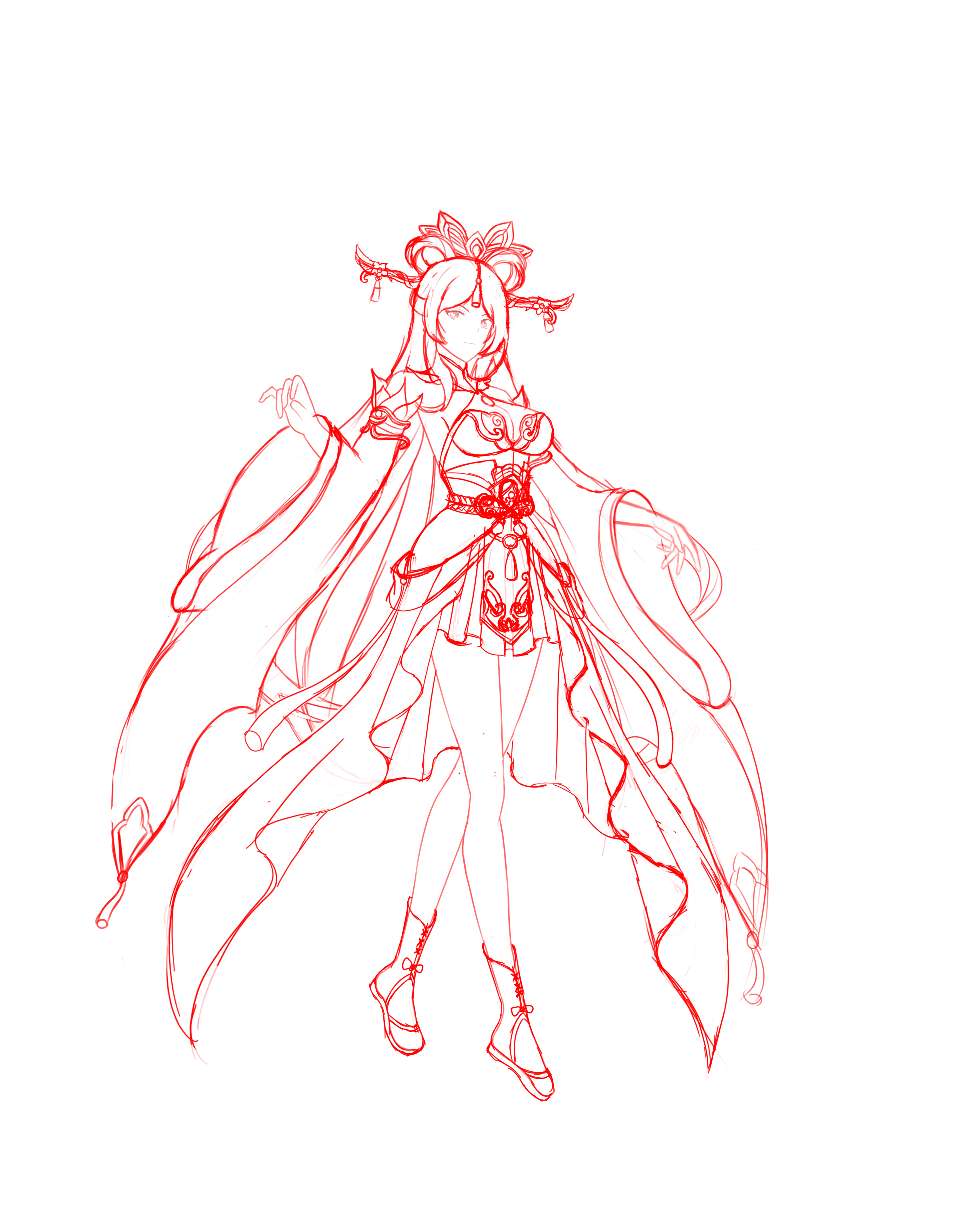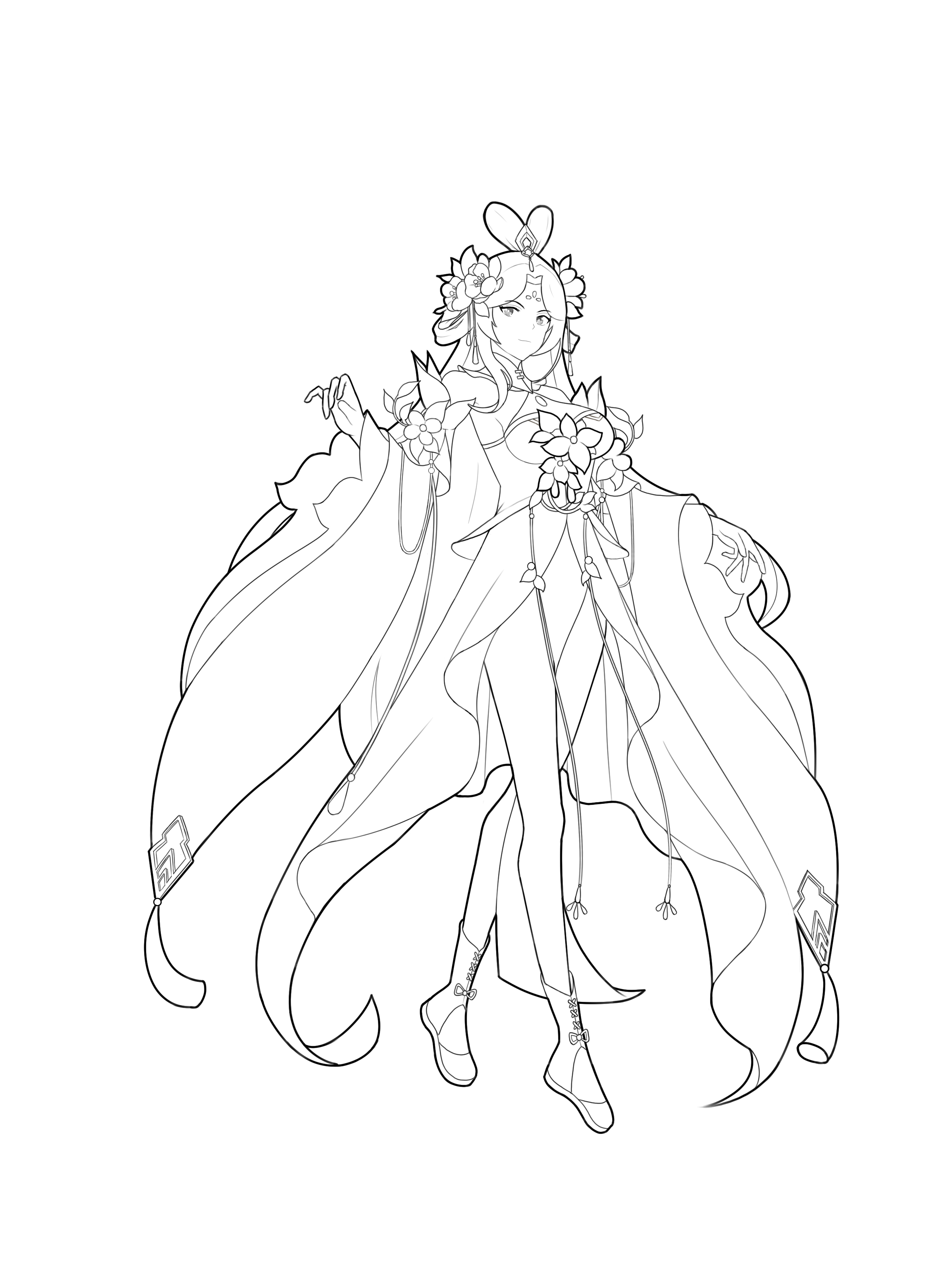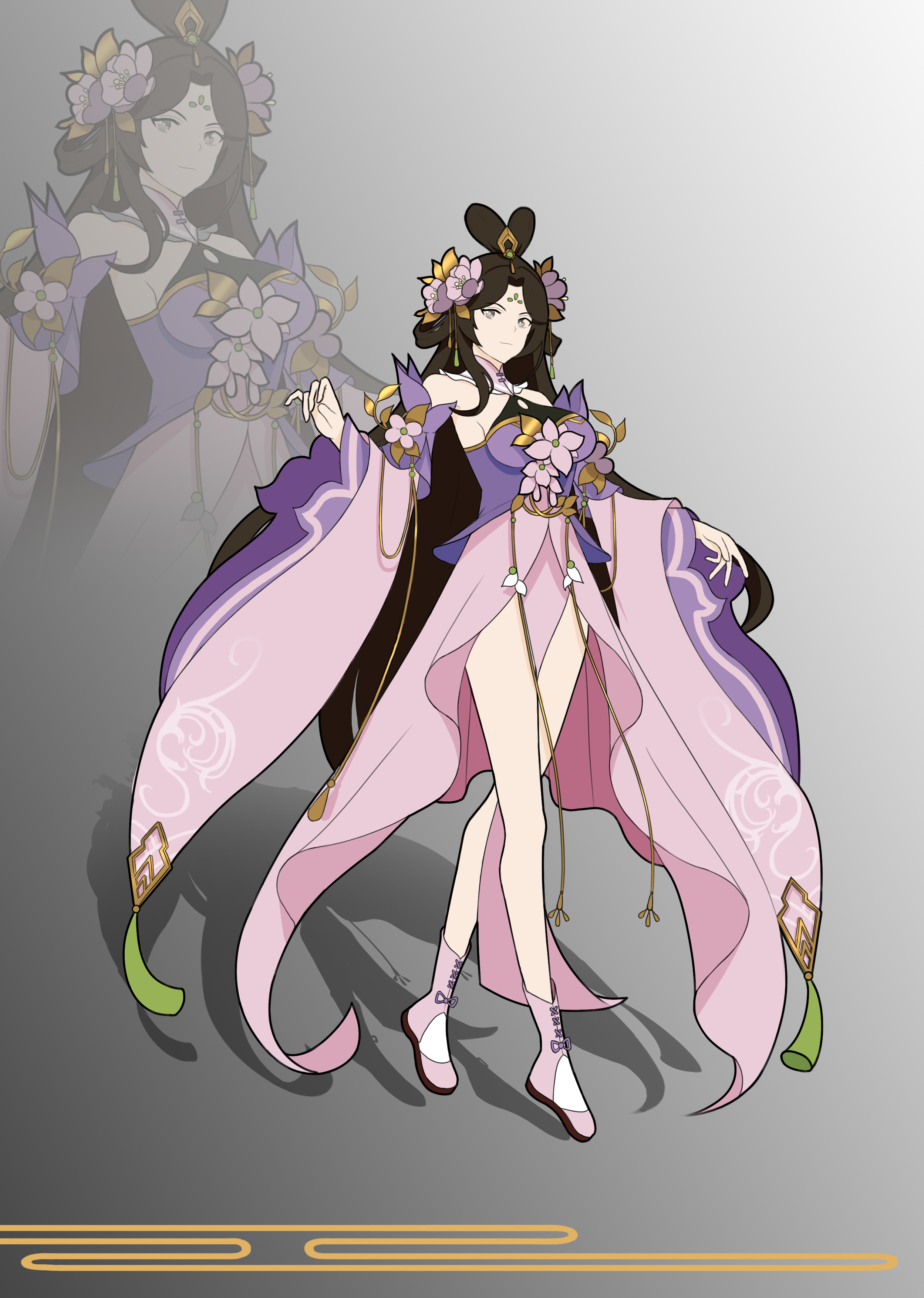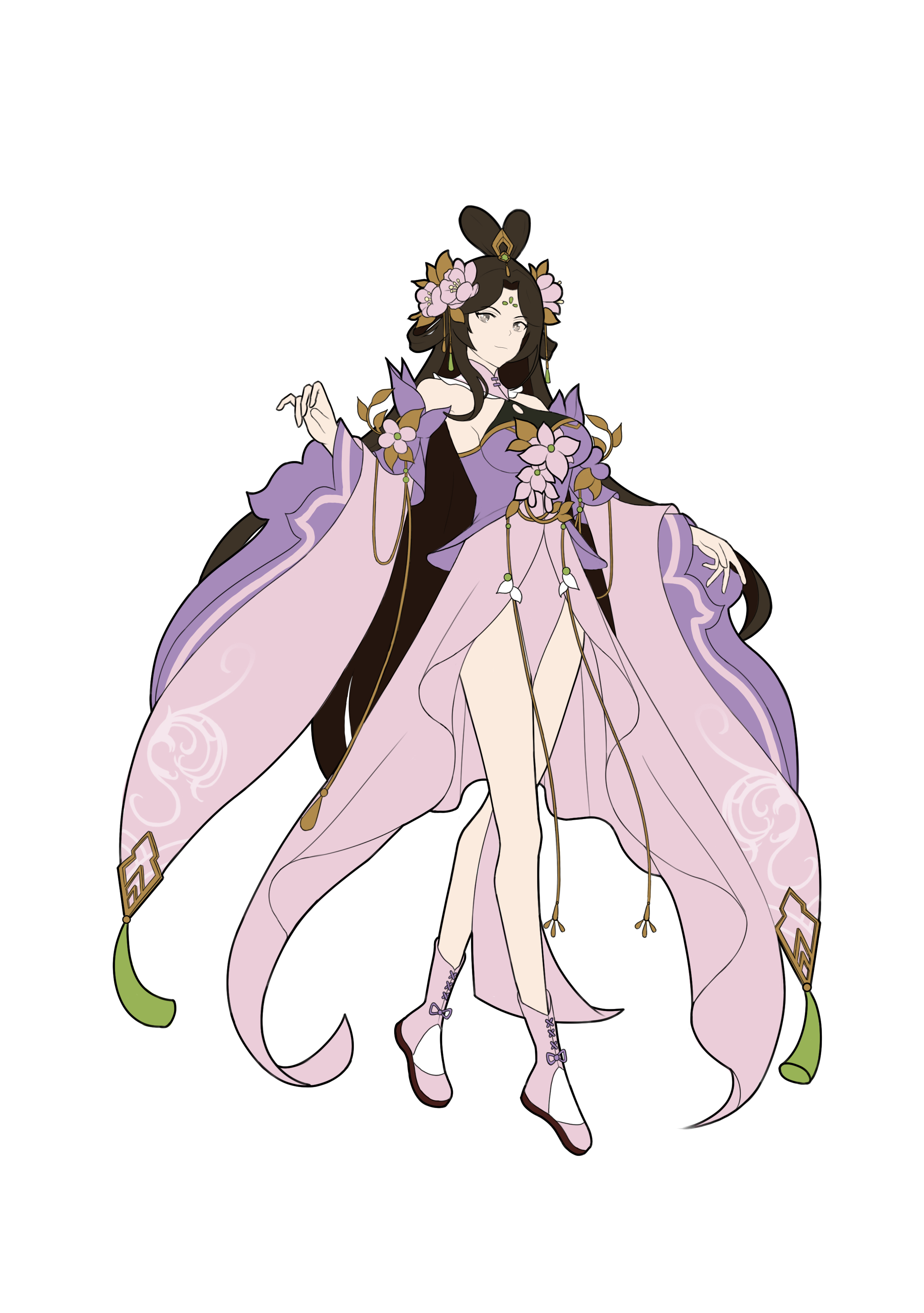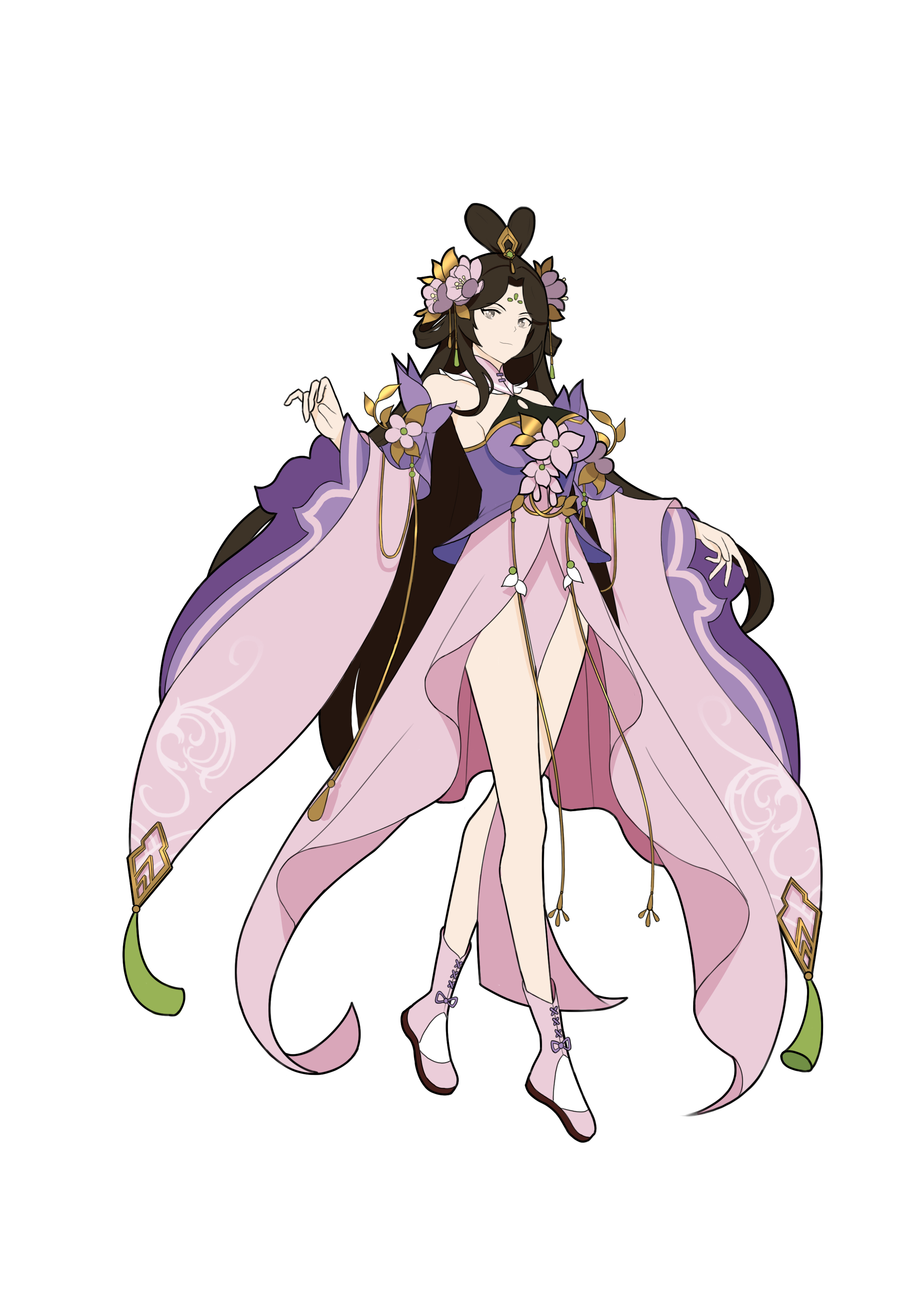 为突出其仙气飘零,设计时也未将其过分妖化。因其实体为花,所以在饰品设计中加入大量花朵元素