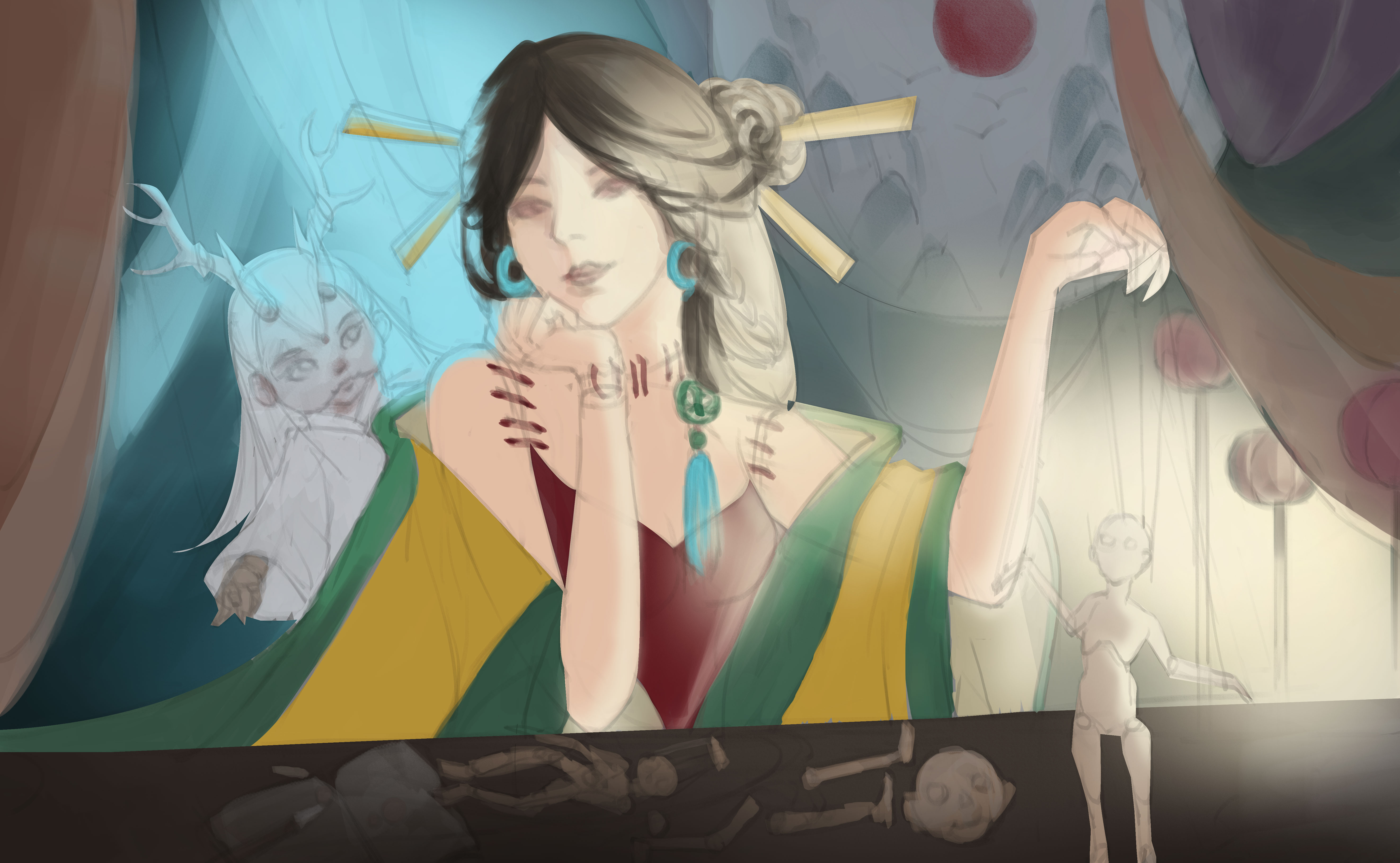 以聊斋里面《木偶人》的故事为创作灵感,创造木偶世界的美人木偶师也是被创造出来的木偶,木偶被赋予人类的情感和思维,即世界即是“木偶宇宙”!