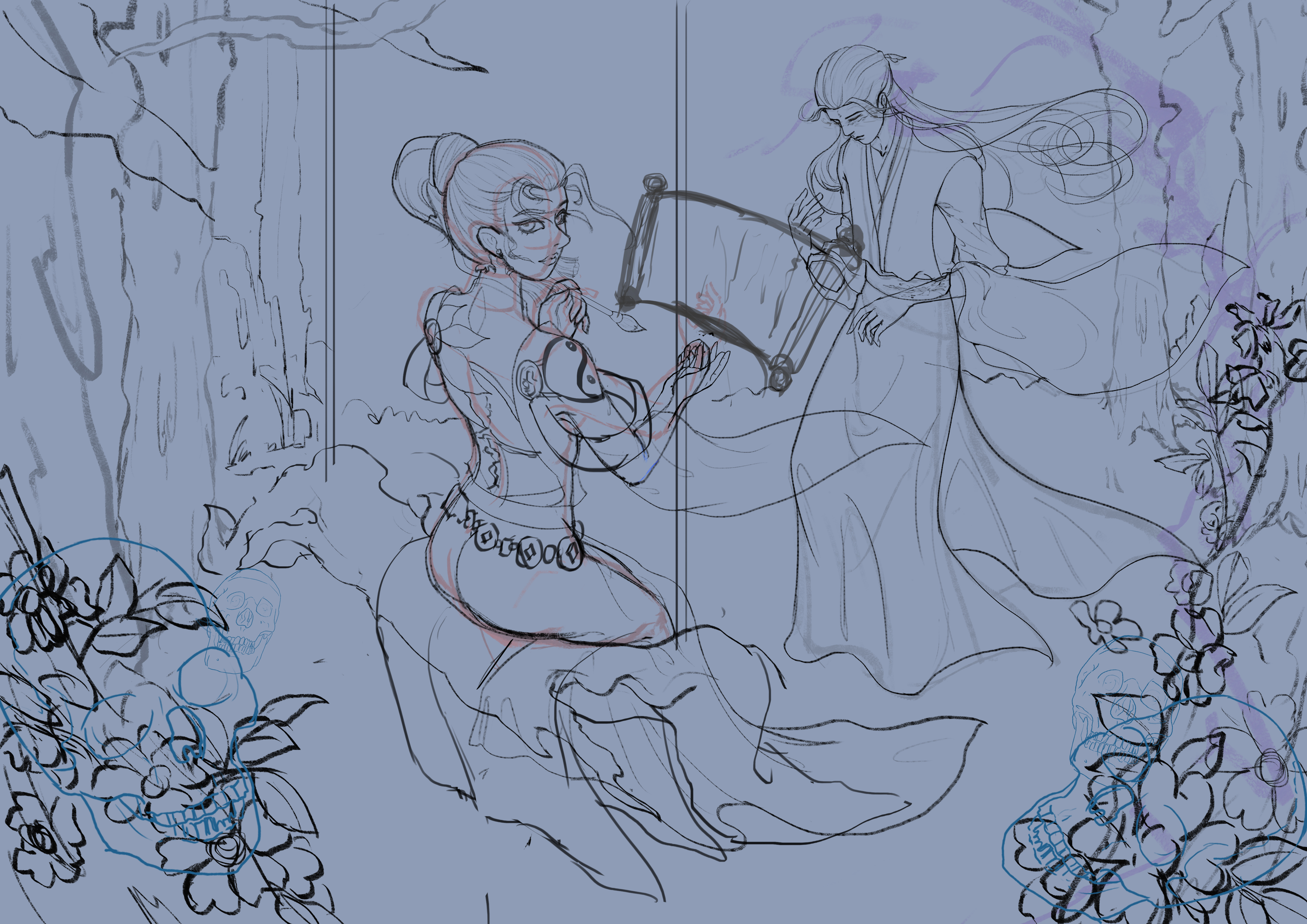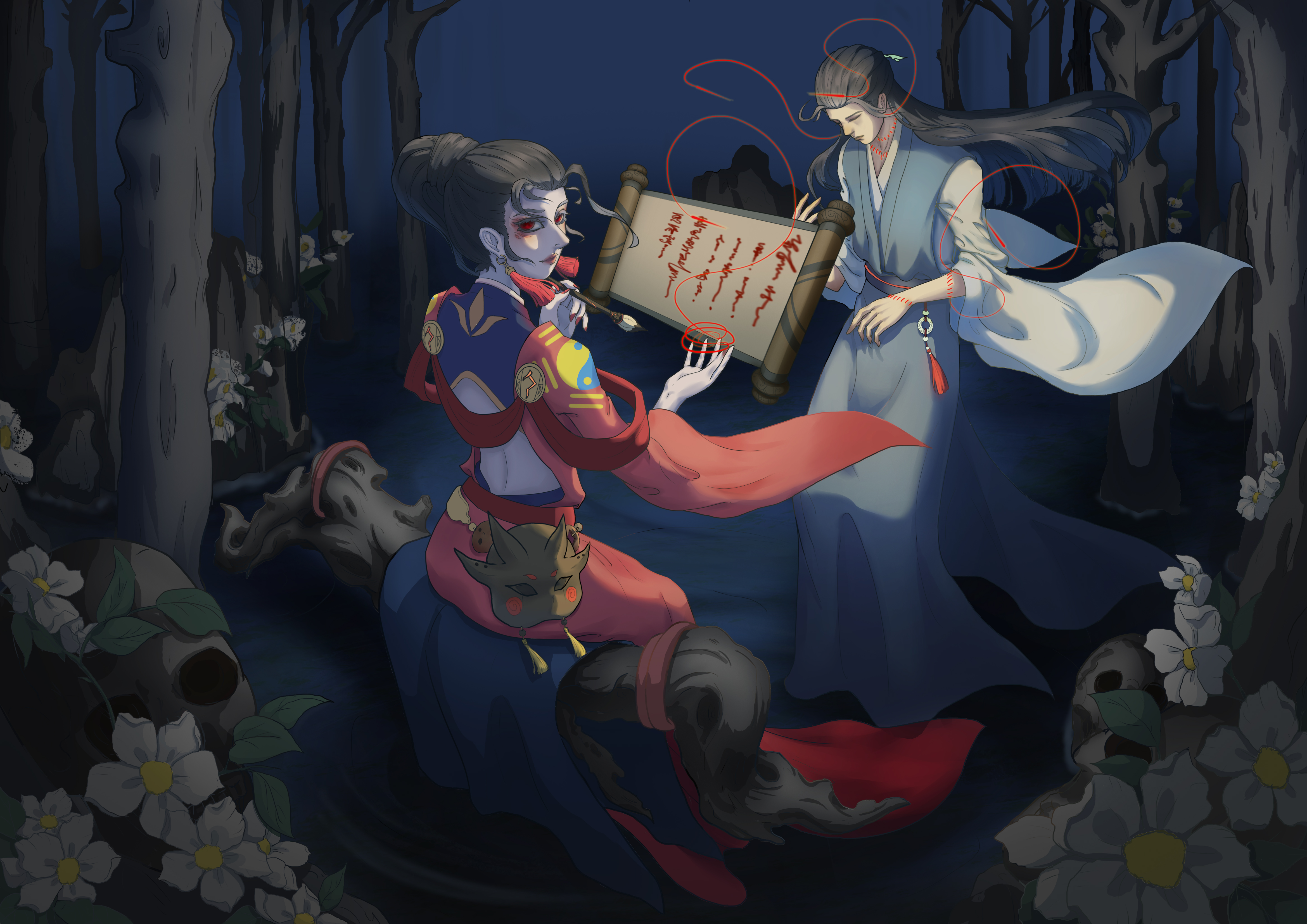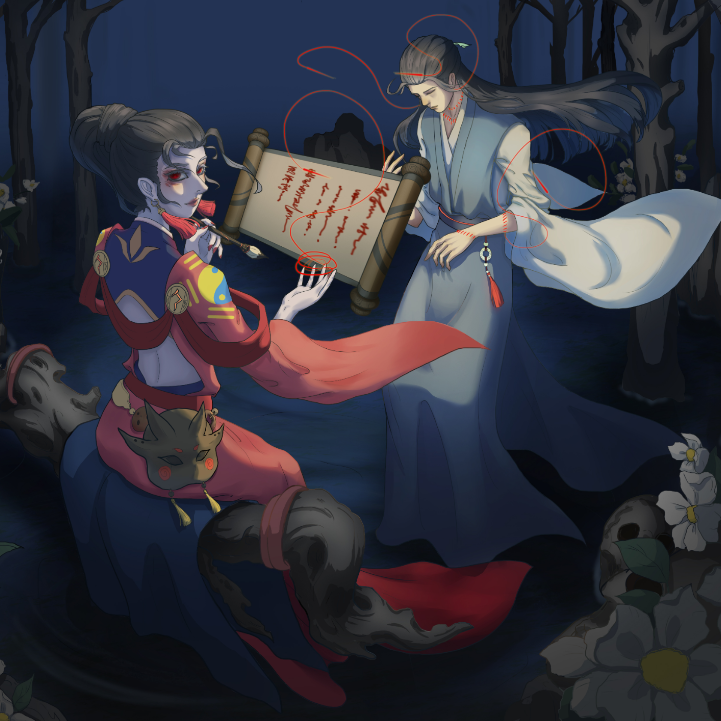 本作品名为《复生·自缚》灵感来源于《聊斋志异》中的画皮,以及陆判官。