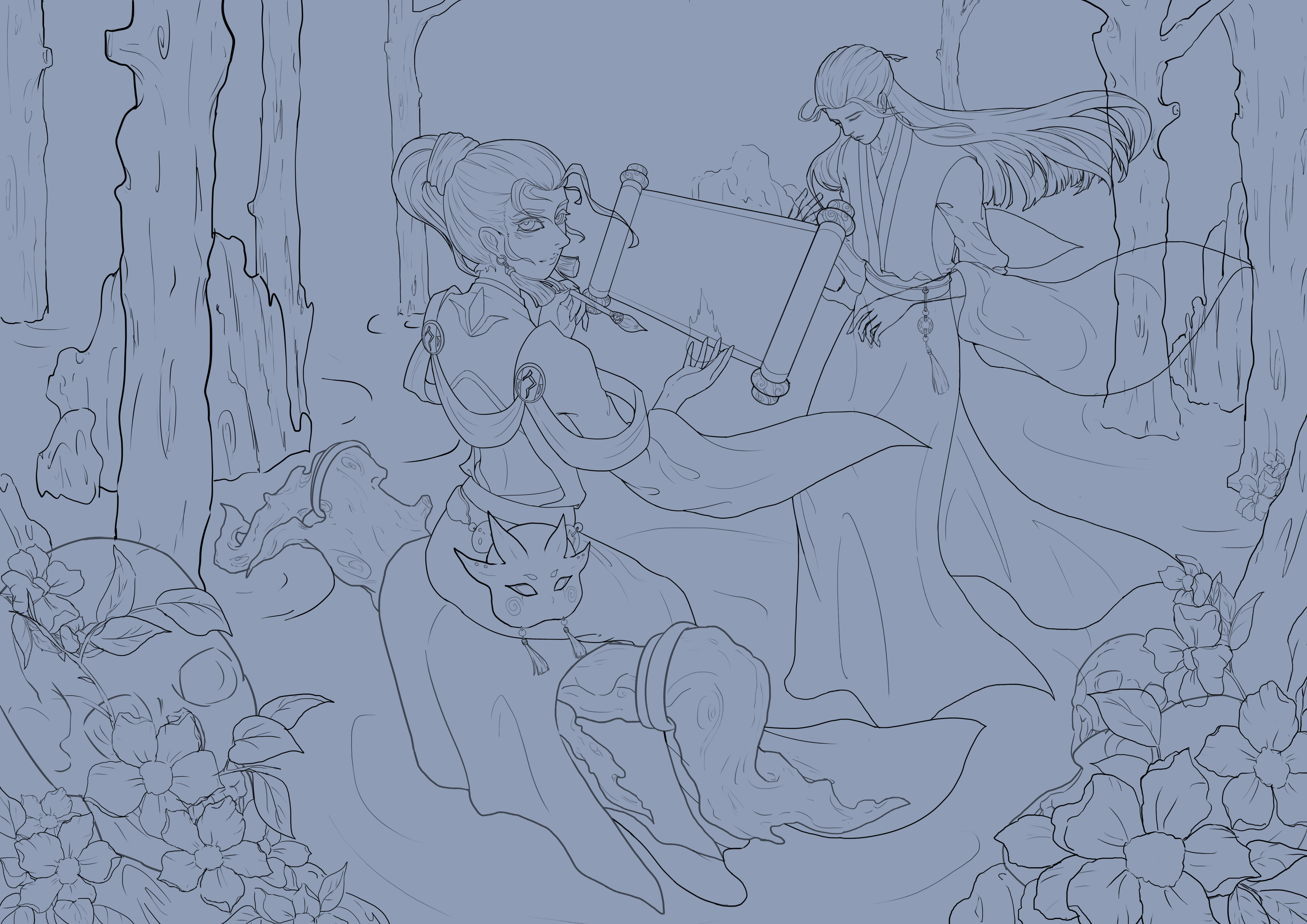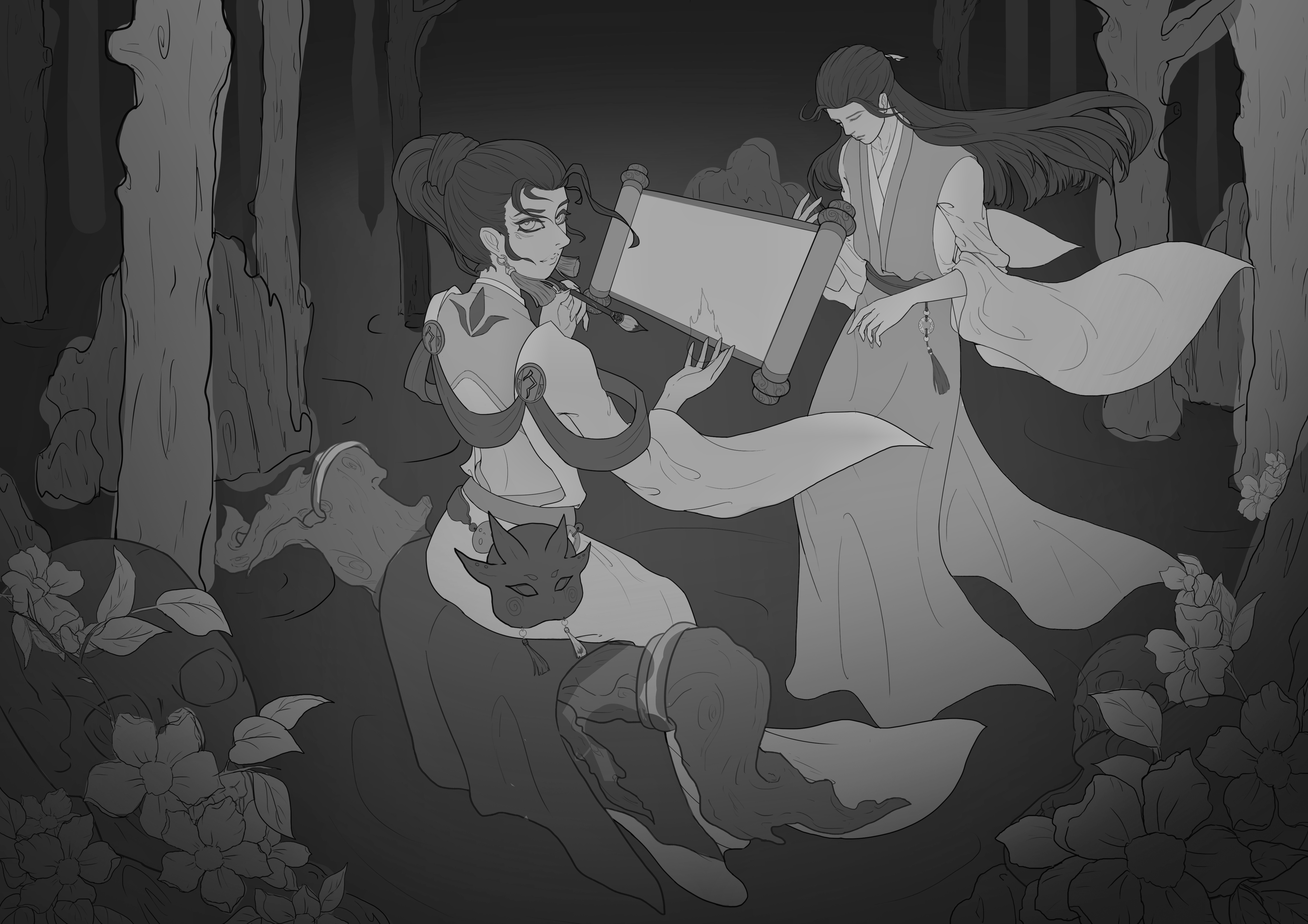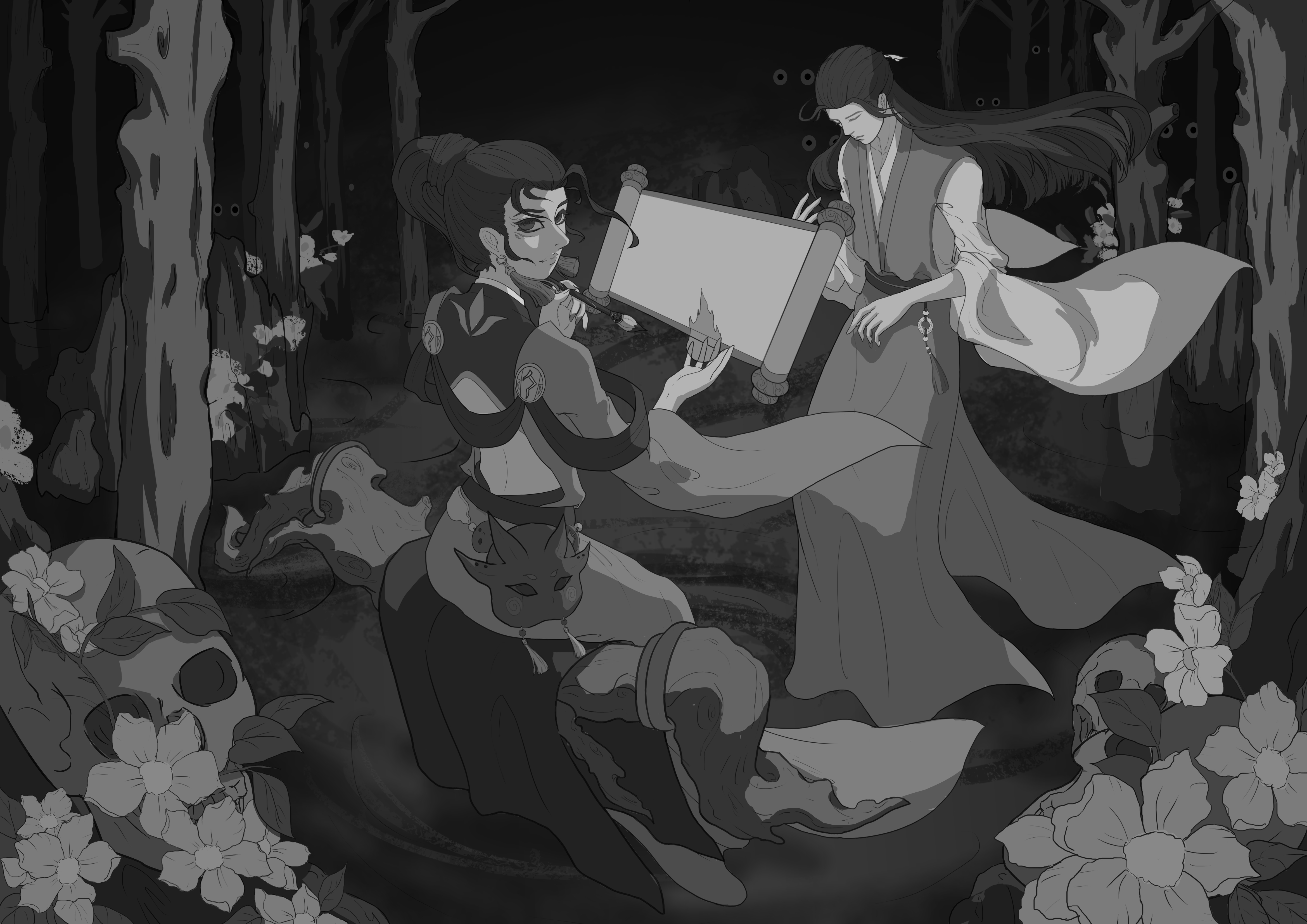本作品名为《复生·自缚》灵感来源于《聊斋志异》中的画皮,以及陆判官。