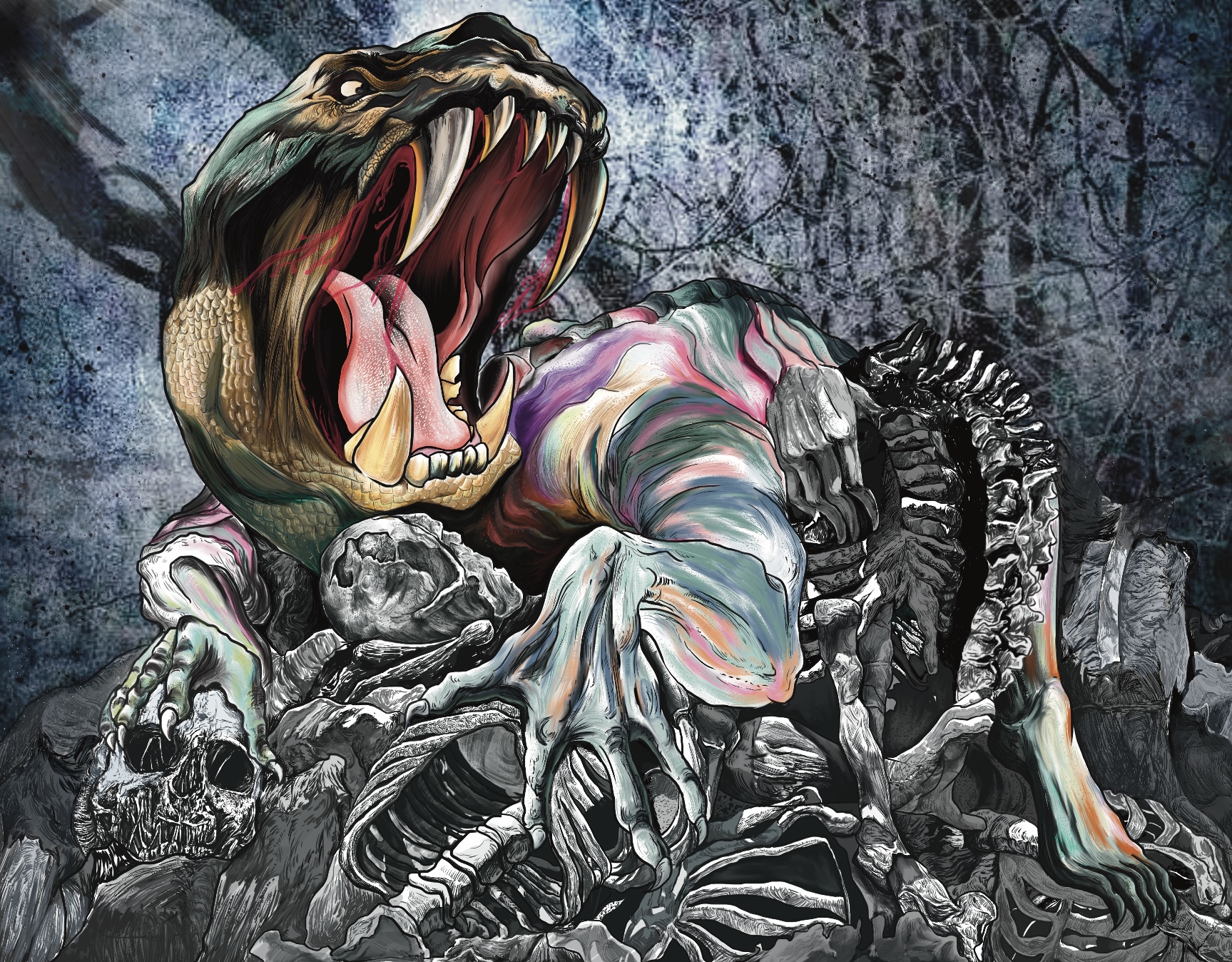 这个故事最可怕的就是给我们讲述了这样一个事实:在动荡不安的年代,不仅活着的人活不下去,就连死人也死不安生!活人活不起,死人死不起,还被怪物吃。死后还要被野狗子“啮人首,吸其脑”—无论是七党,还是朝廷官军,他们都不体恤老百姓,不就如怪物、如野狗一样么?那个时代的黑暗恐怖。苦的不还是老百姓。生前活得辛苦,死后仍不得安生,连全尸都不能留下。
