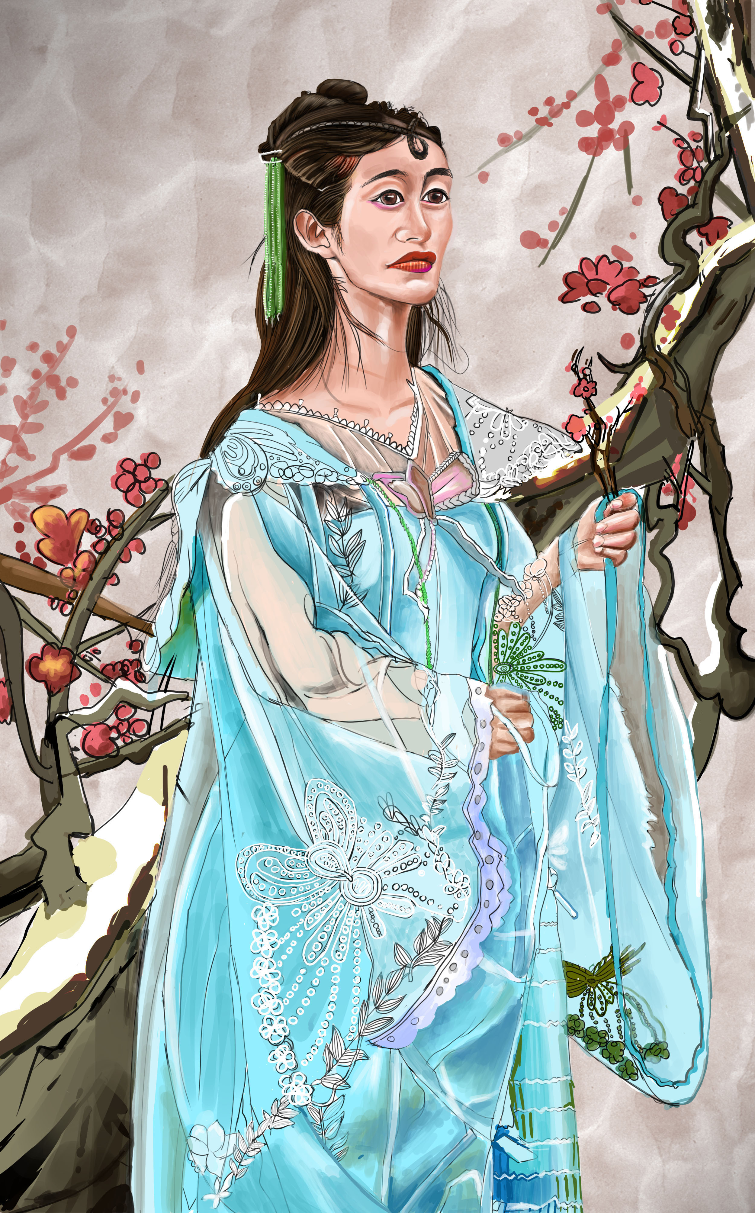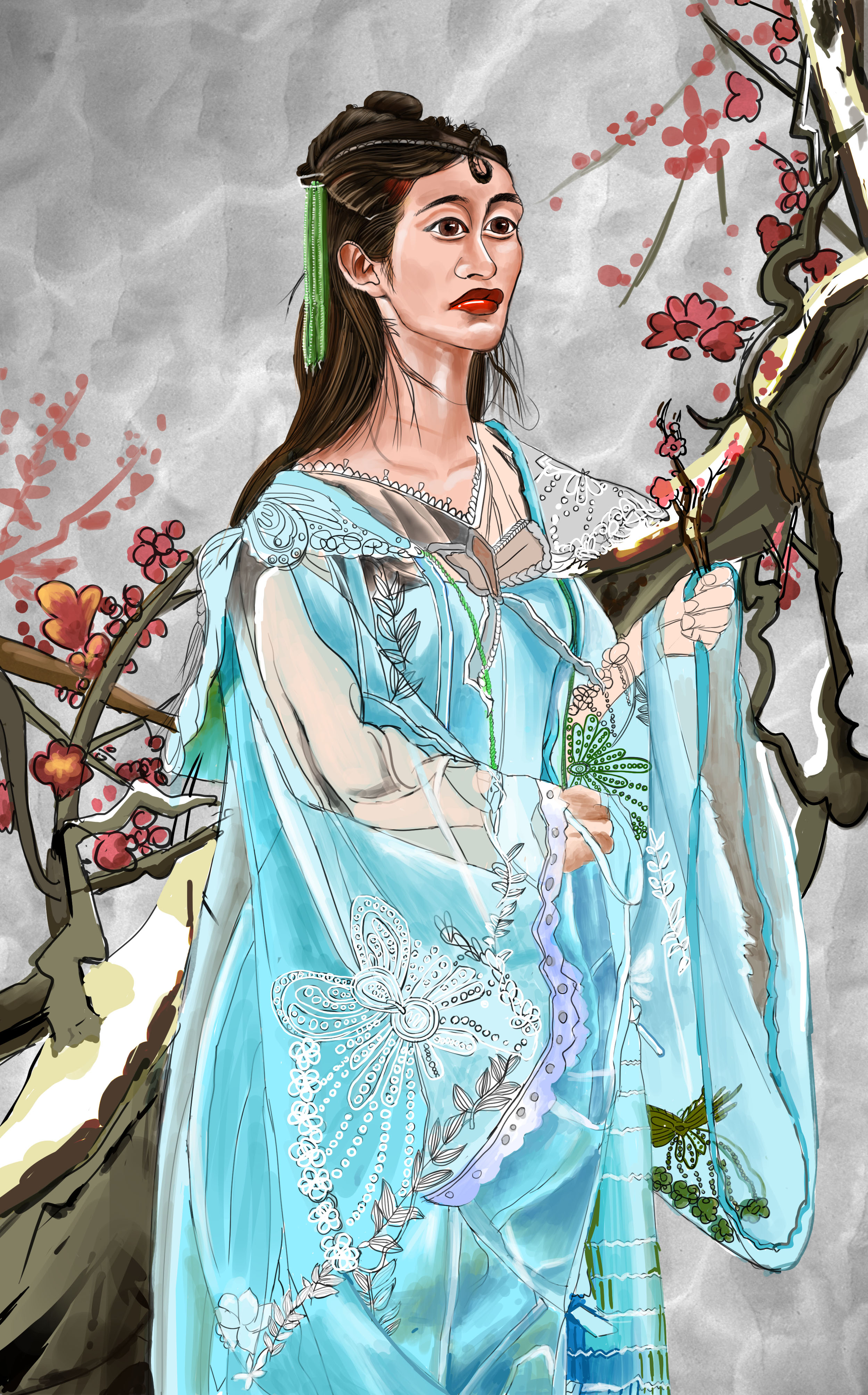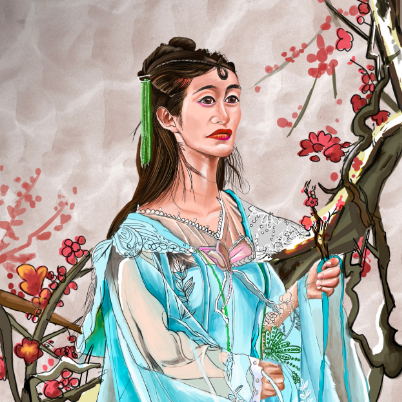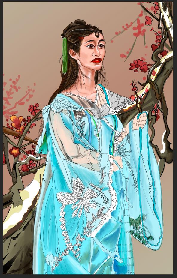 秋天的时候,传人拿着樱花,飘飘起舞,表现历史人物