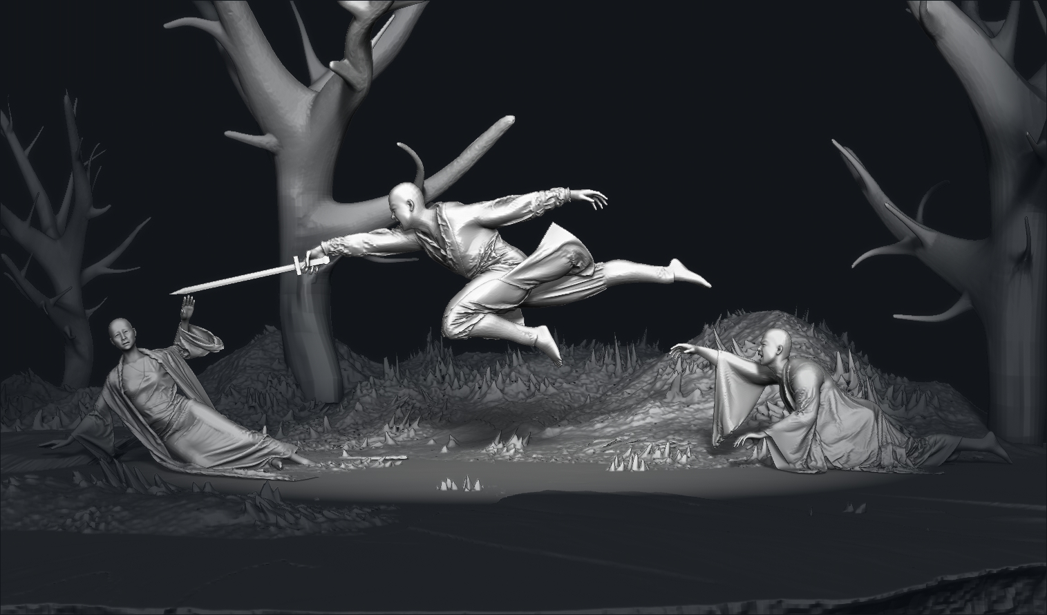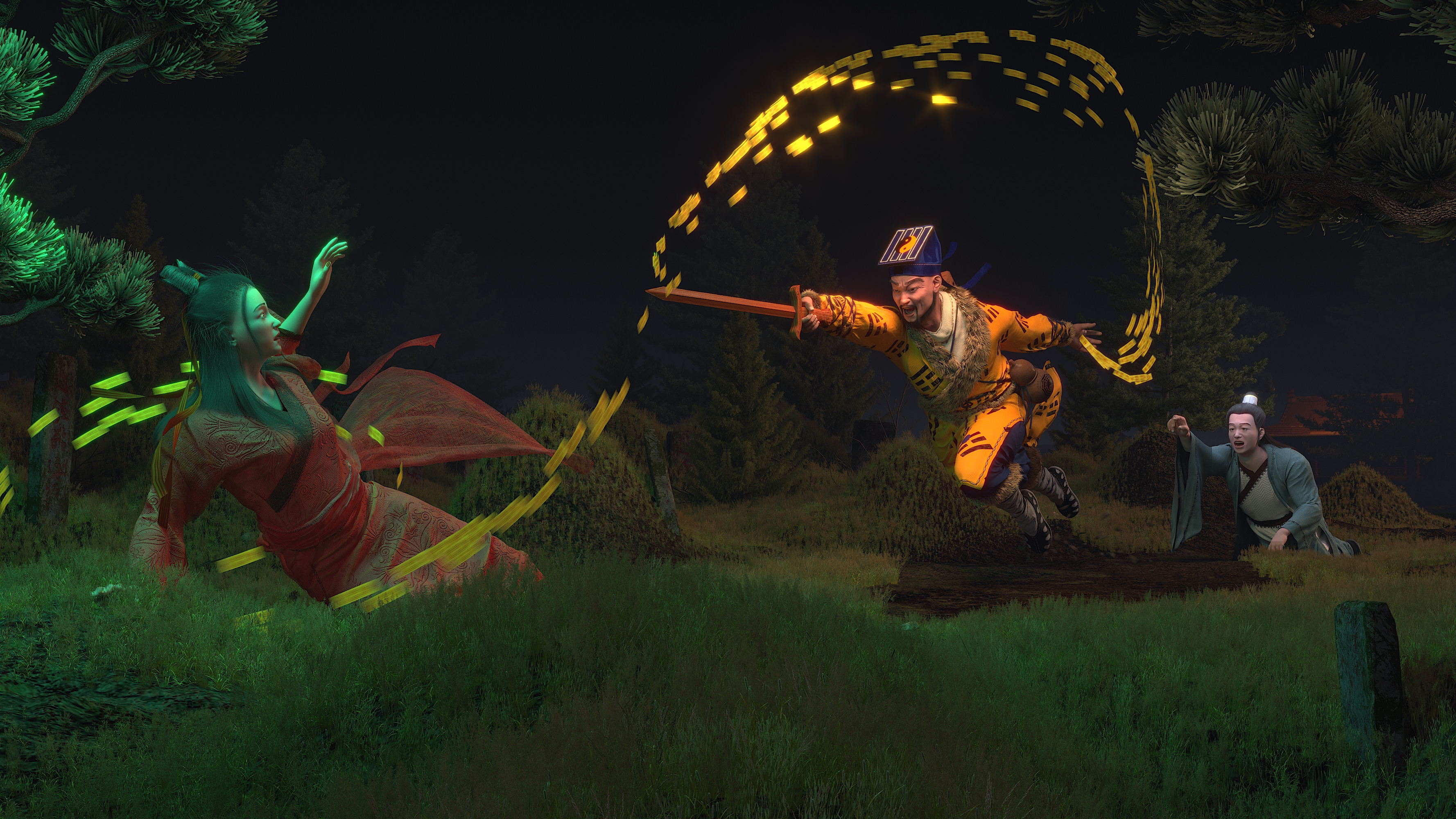 小倩帮姥姥害人,燕赤霞追杀聂小倩,宁采臣苦苦阻拦,得一性命。后一同帮小倩魂归故里。
