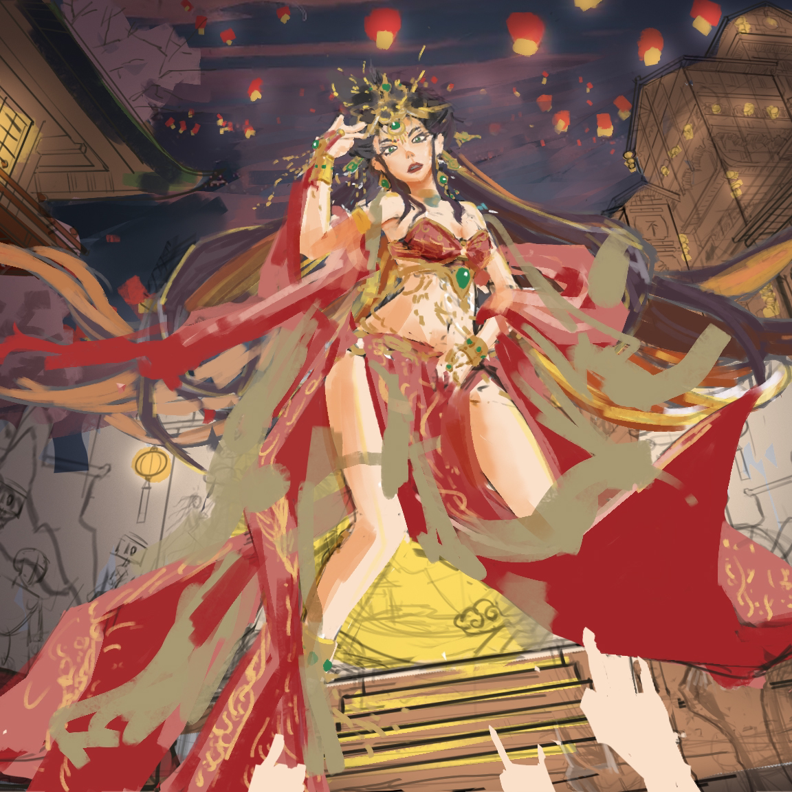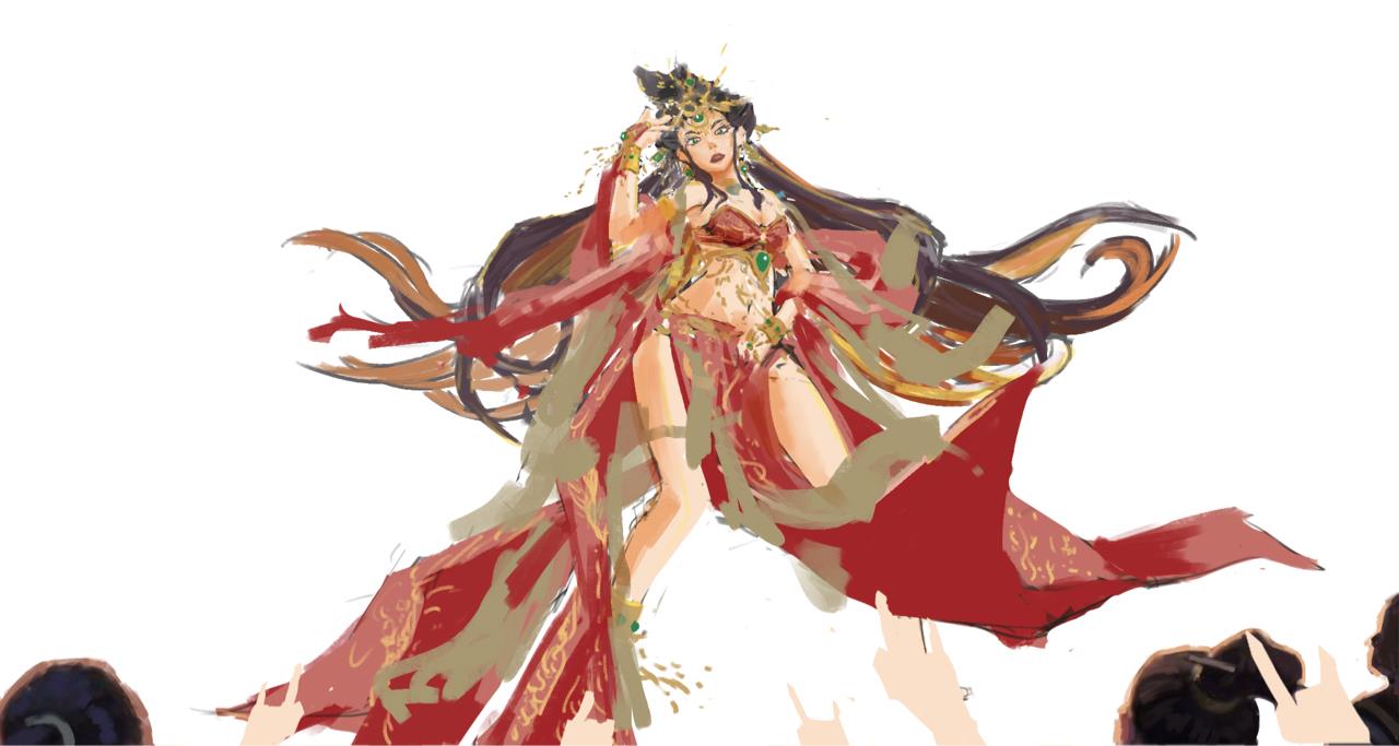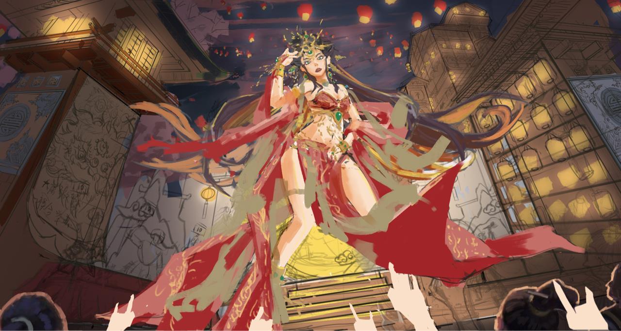 作品灵感来自《鸡儿你太美》,唐玄宗在位,开元盛世期间,唐朝国力达到鼎盛,社会、经济、文化、科技得到全面发展,空前繁荣。也是中国古代文化和经济发展的巅峰之一,而我带着现代歌艺文化,回到唐朝,通过商业和文化的繁荣发展,参加了两年半练习生《姬你太美》海选节目,那种感觉仿佛是一种穿越千年的文化交流。