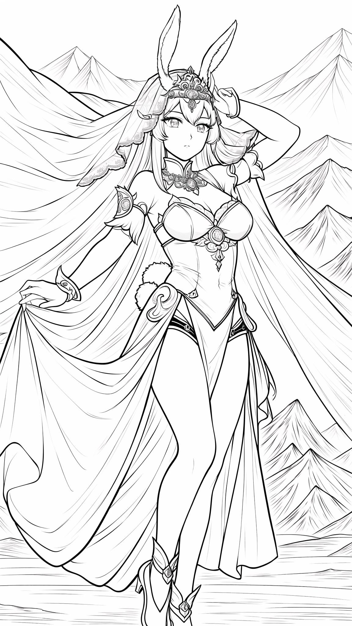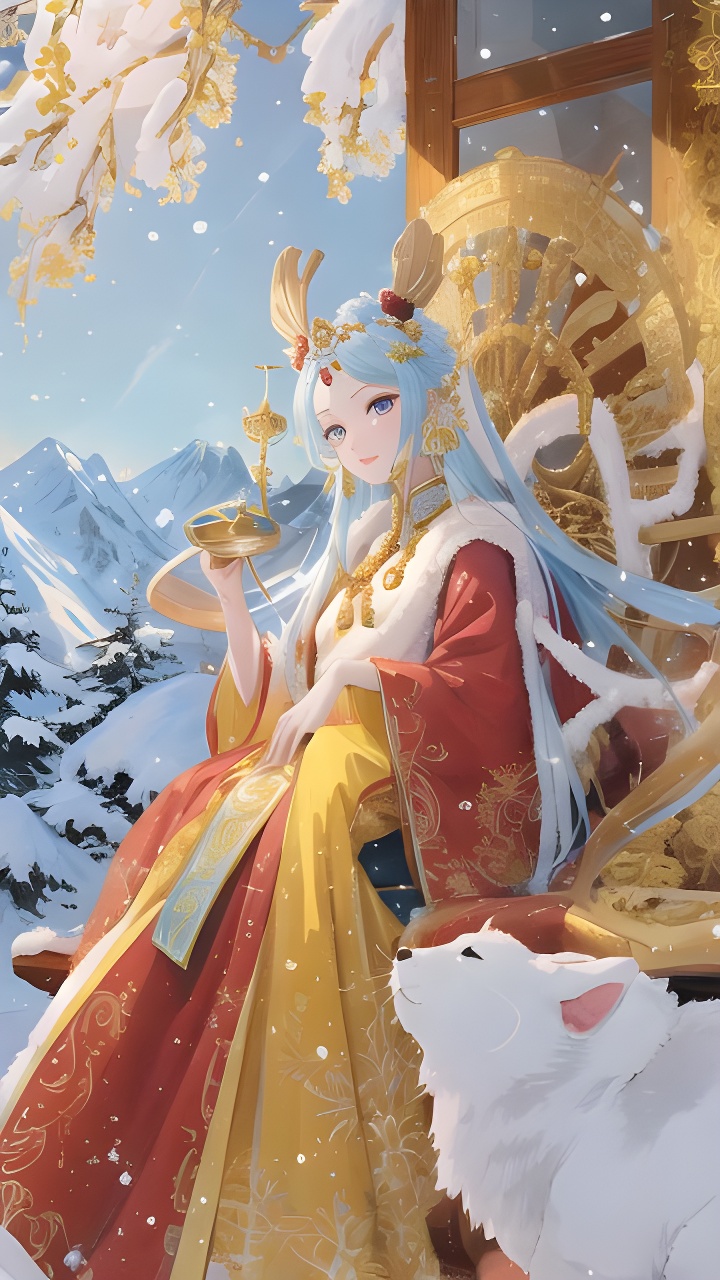 开始我想的是王者的玉兔公主,打了一个草稿,然后觉得擦不太好,就修改一下,想到主题是长安,画了复杂的头饰,最后还是很喜欢雪山