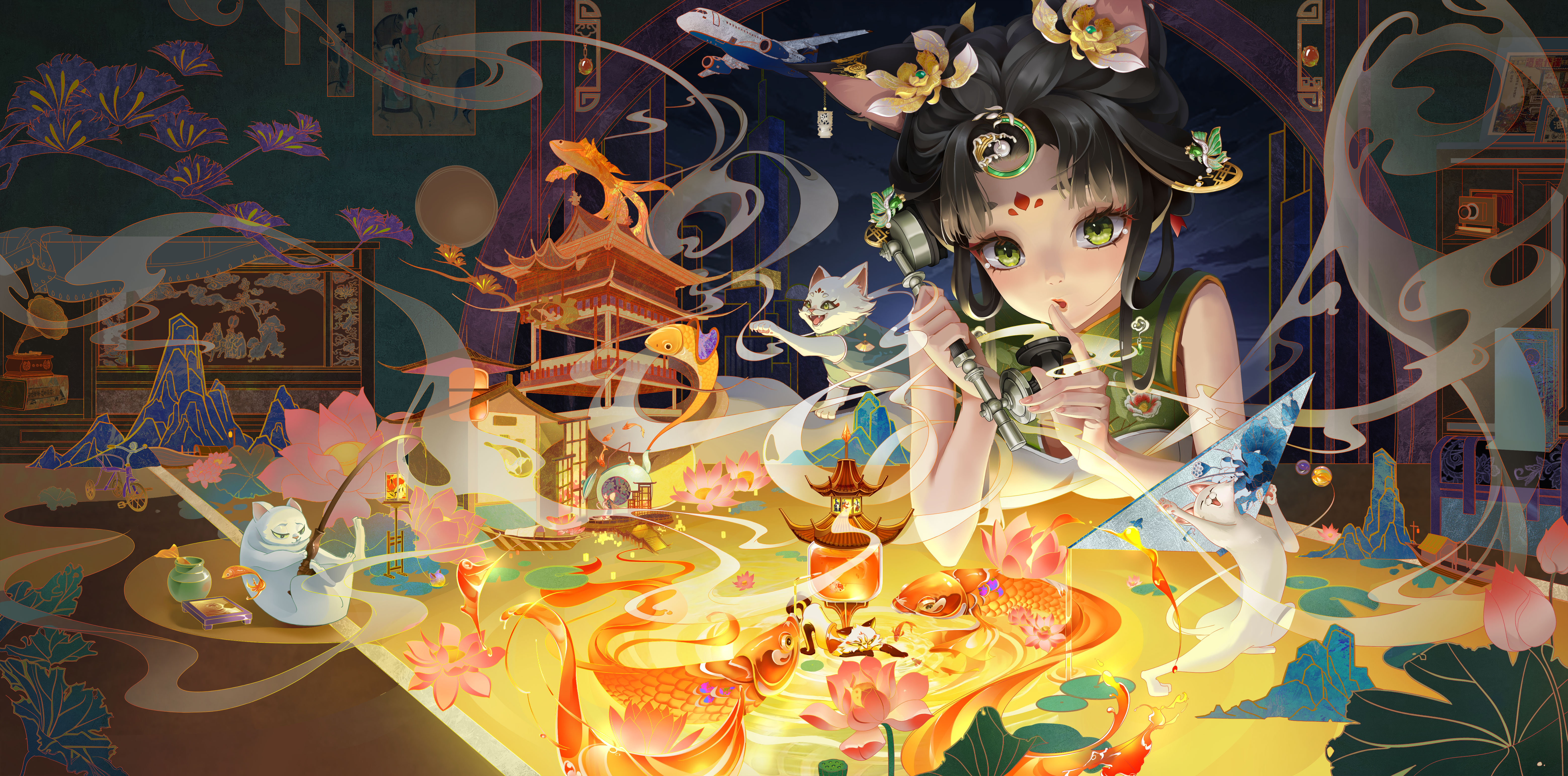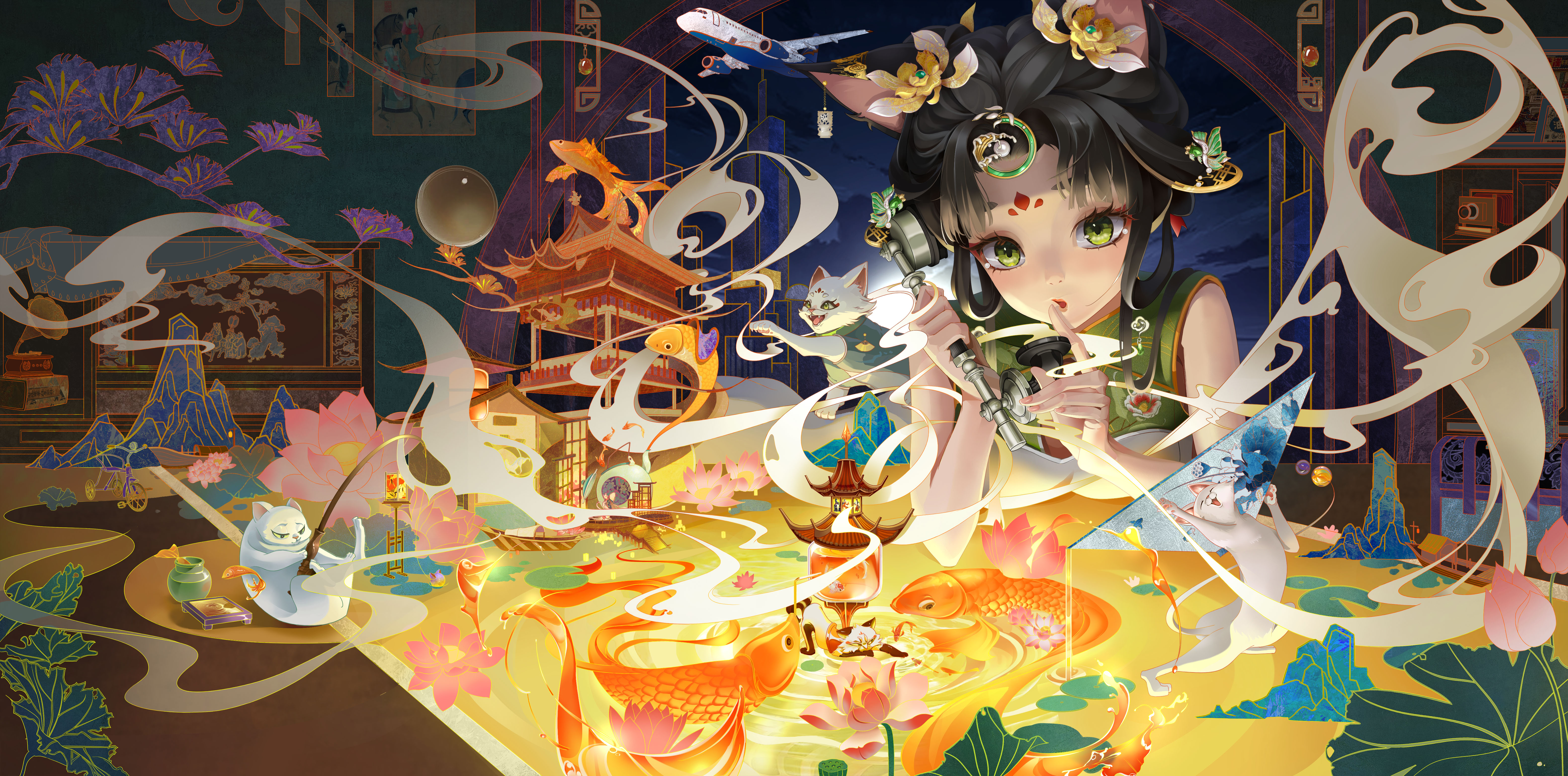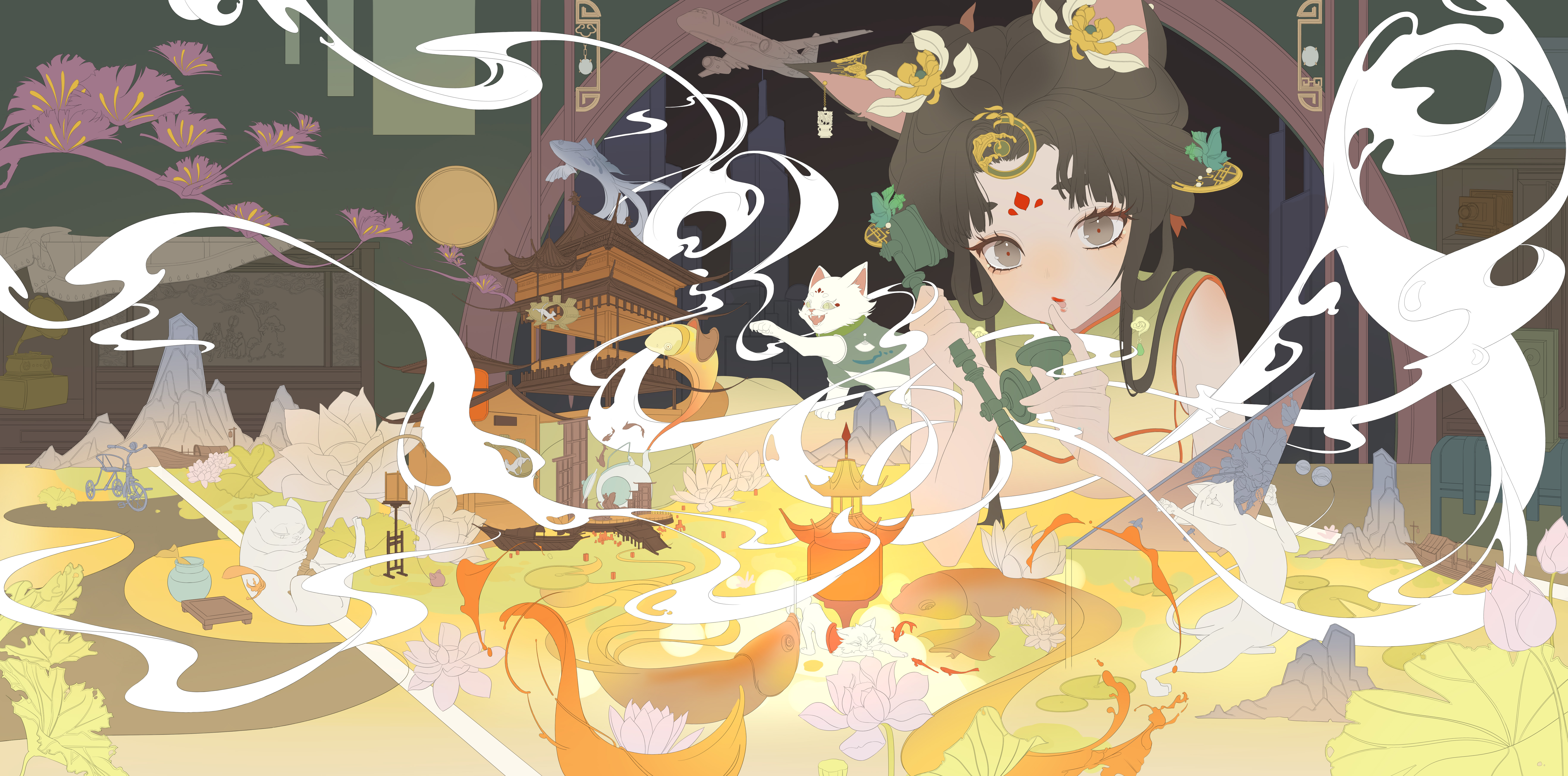 某天一只白猫窜进吕家,跃起打翻了壁橱上的锦盒,霎时间,思思眼前的景象古今相通,纸面上浮现大唐盛世之景,室内旧物闪烁。