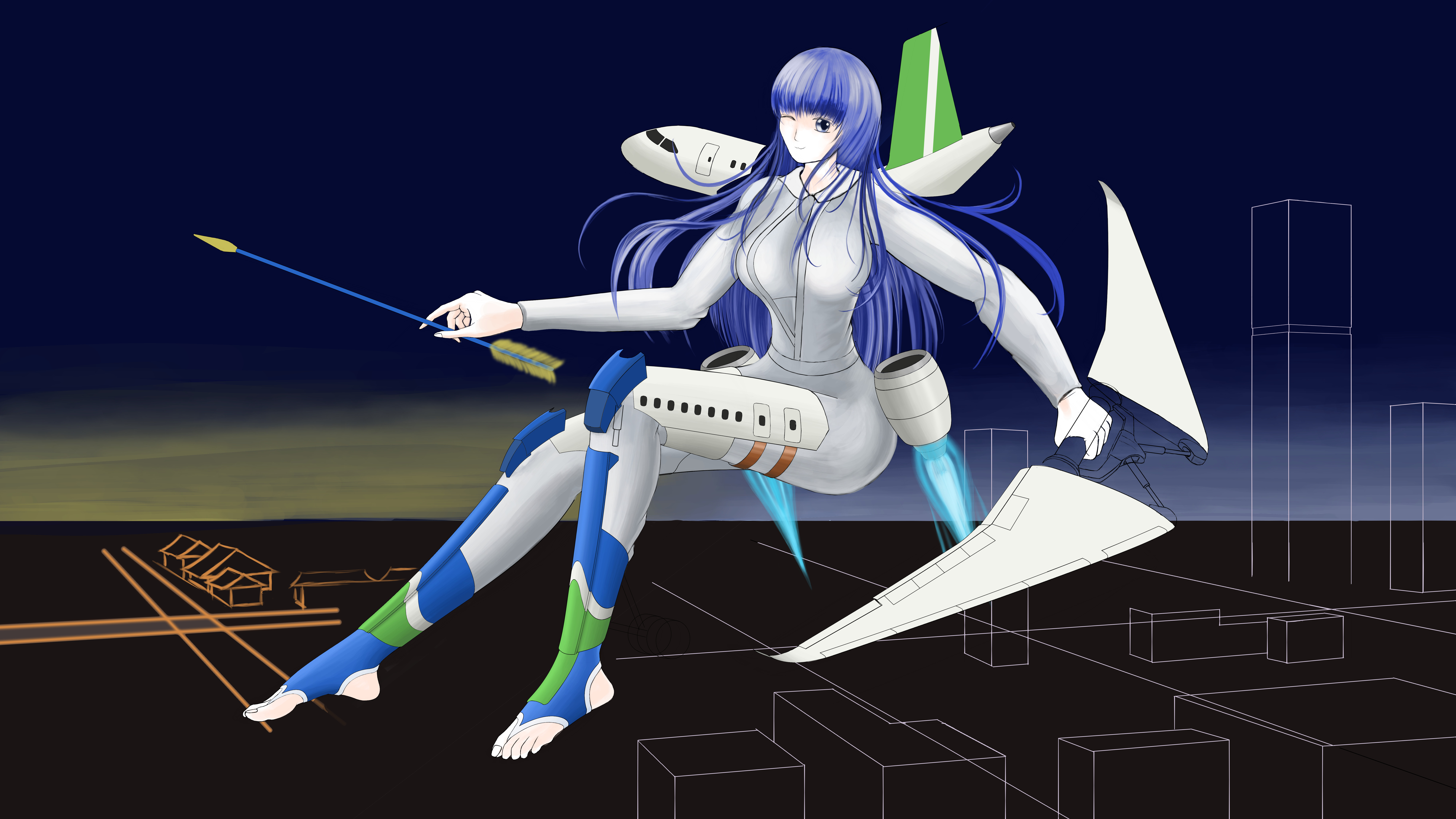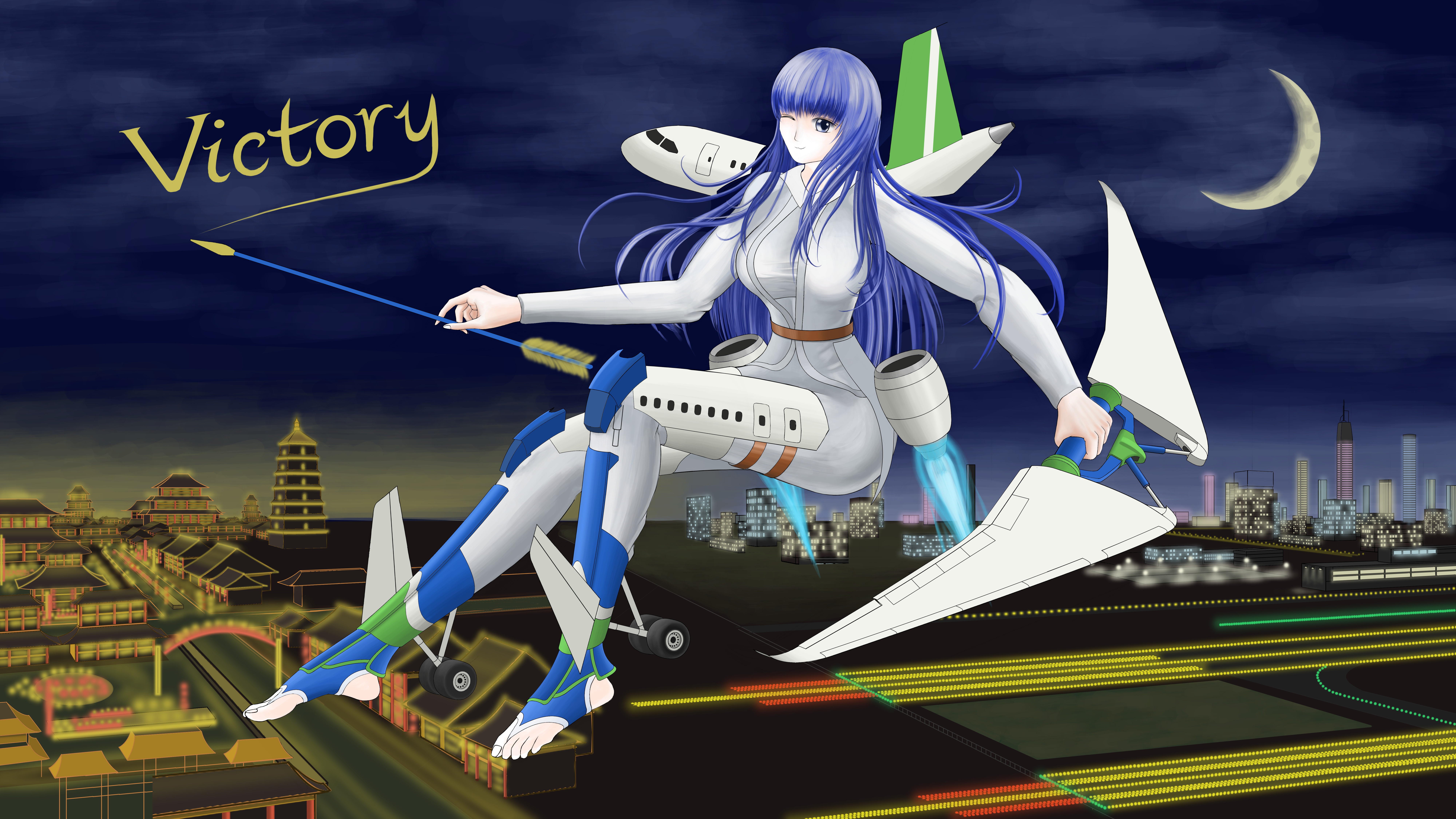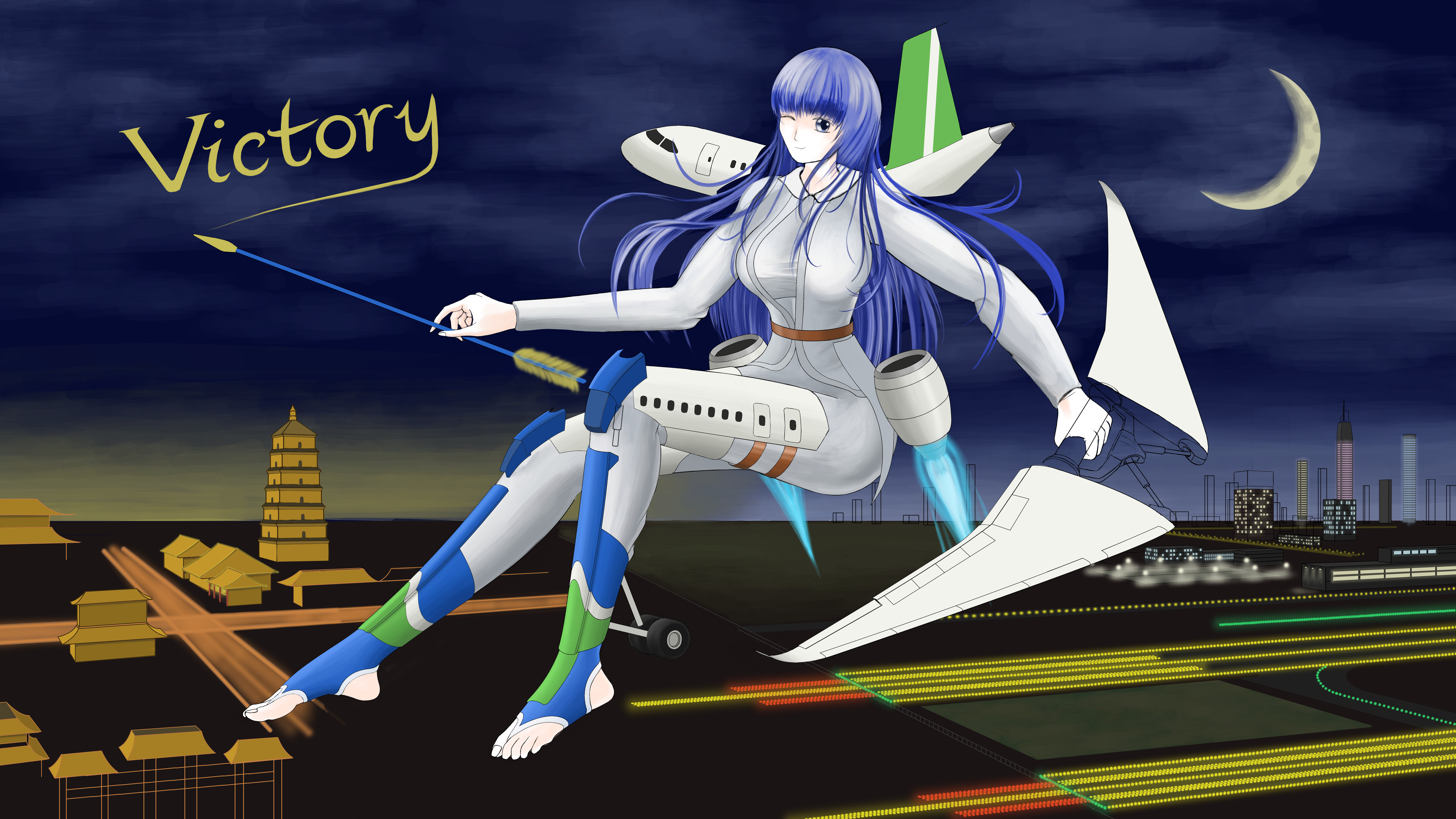 中国人自古以来就有飞天梦,尤其到了唐代,各种相关的图腾和传说更是数不胜数。本作品融合了弓箭这一传递媒介,将C-919拟人化,并化身一名使者穿越回最具代表性的盛唐时期。诉说着一代代科研人员的血泪史,将如今的好消息带给那个对蓝天满怀憧憬的时代。