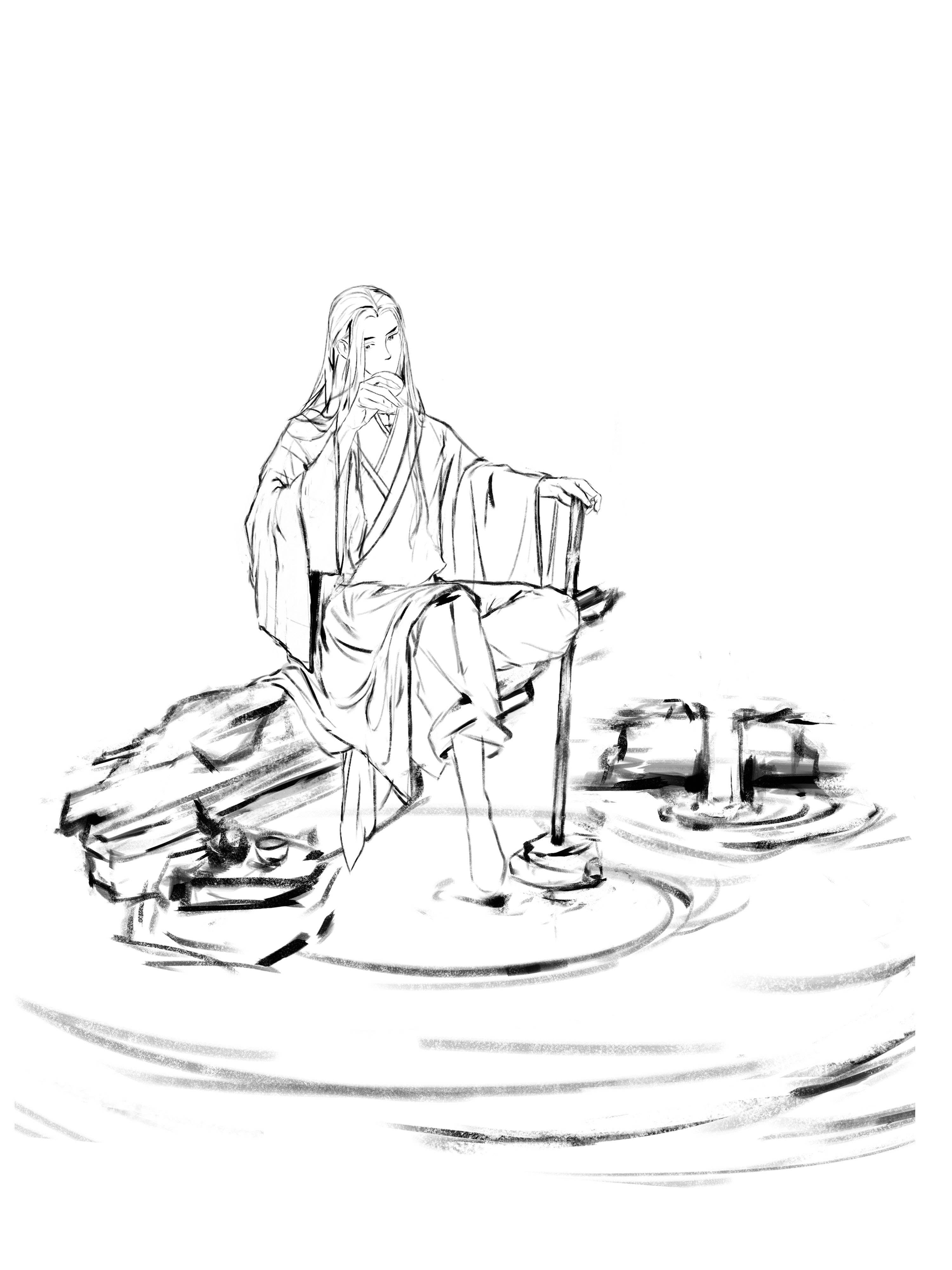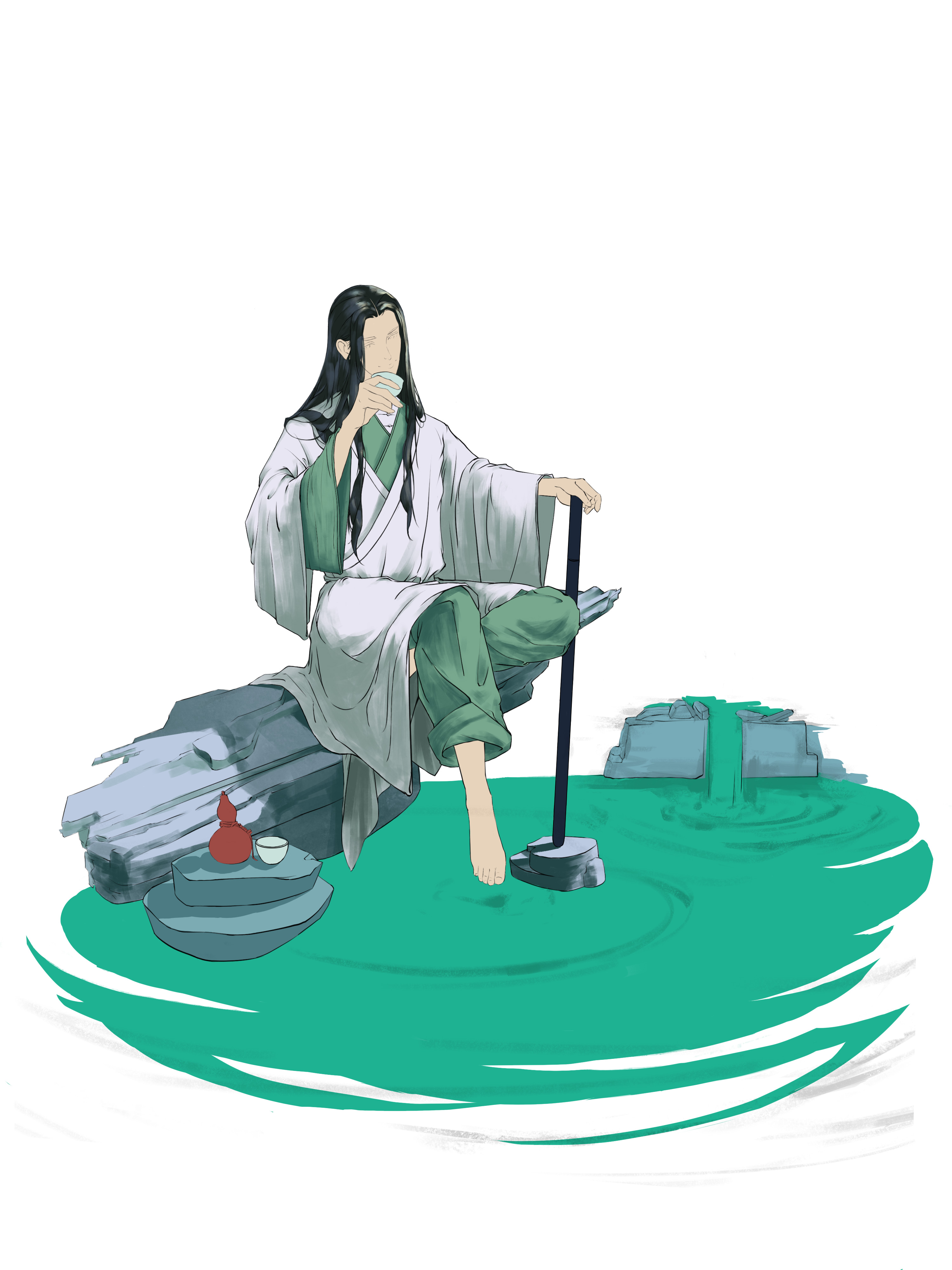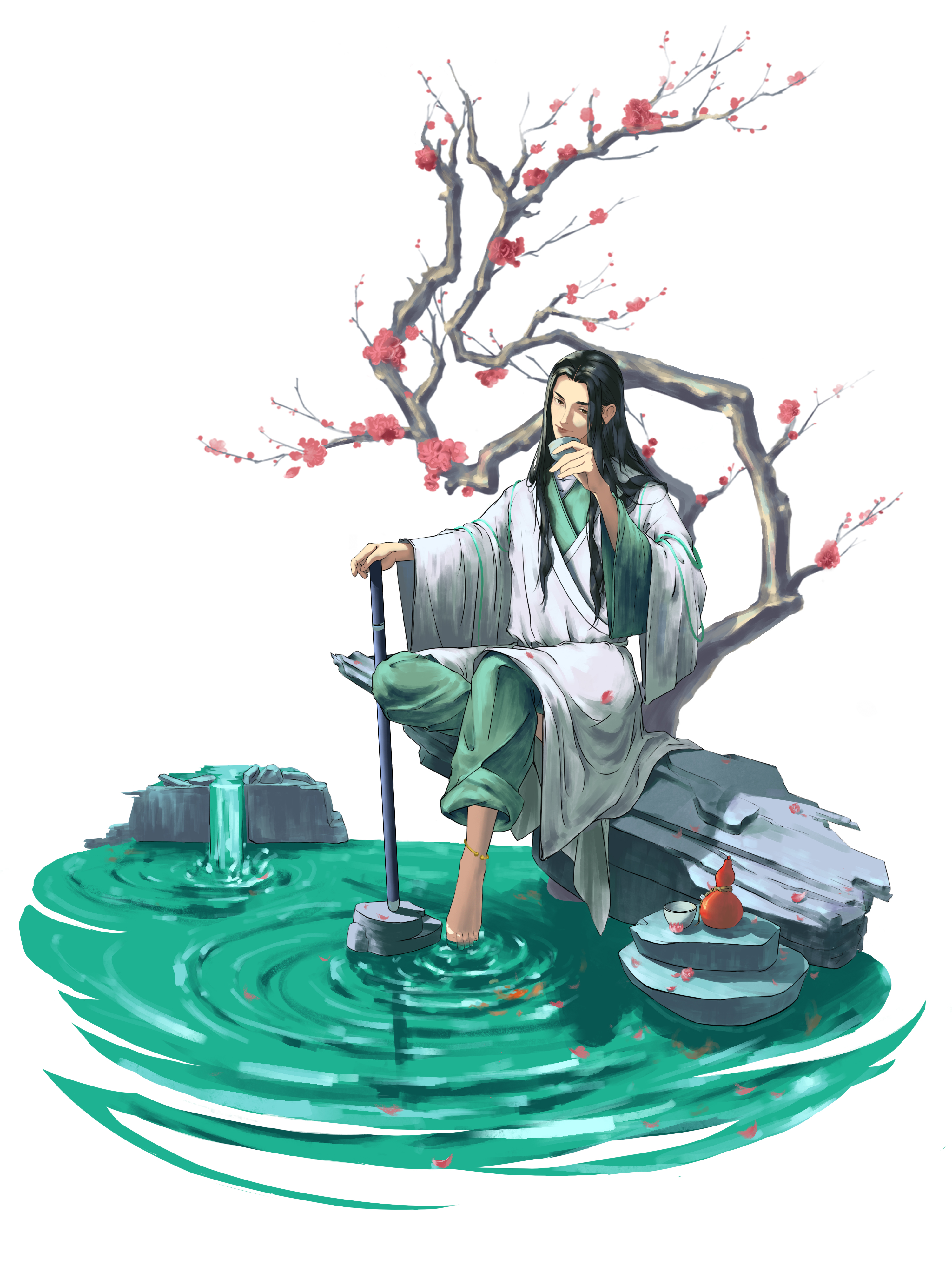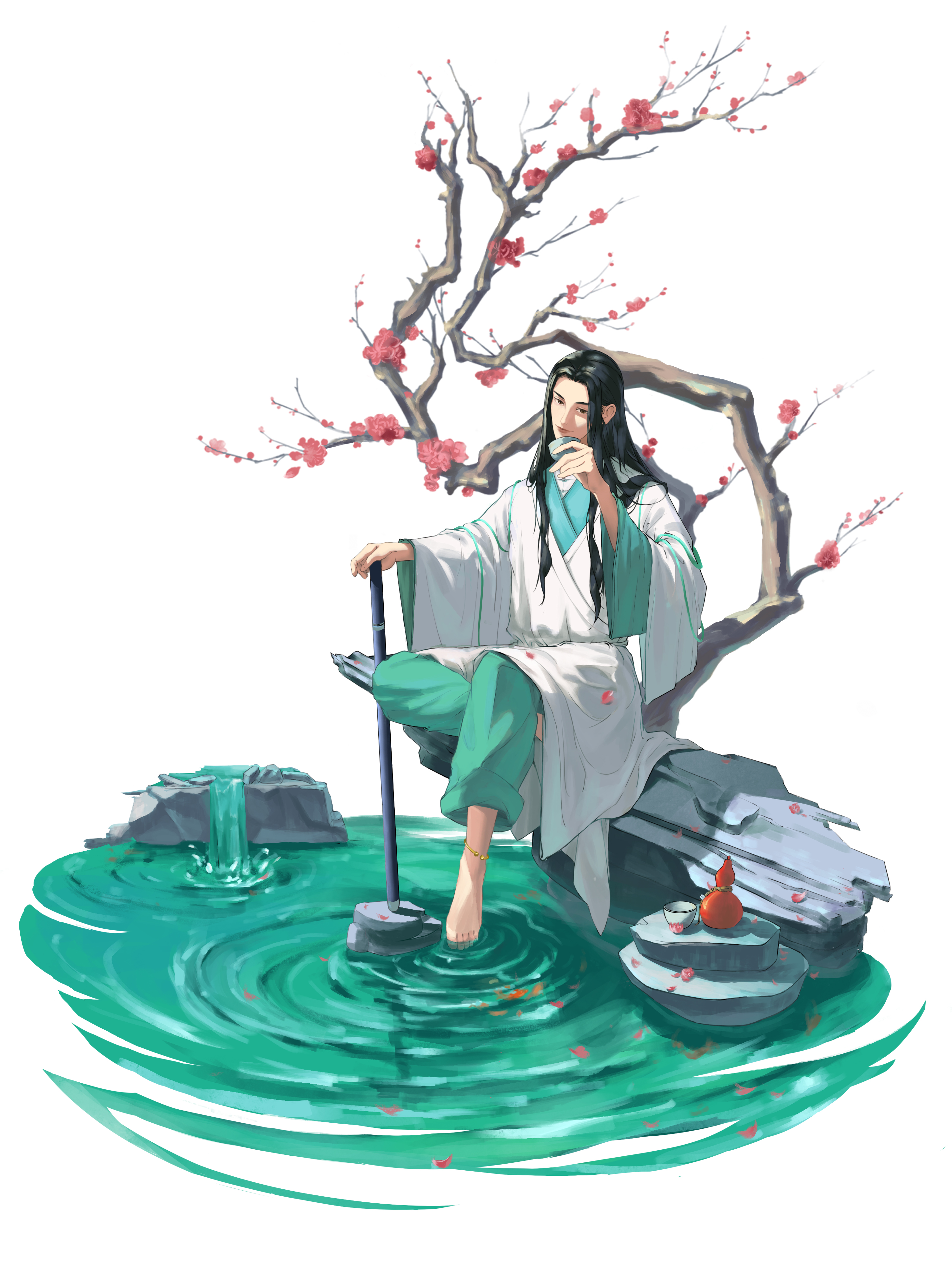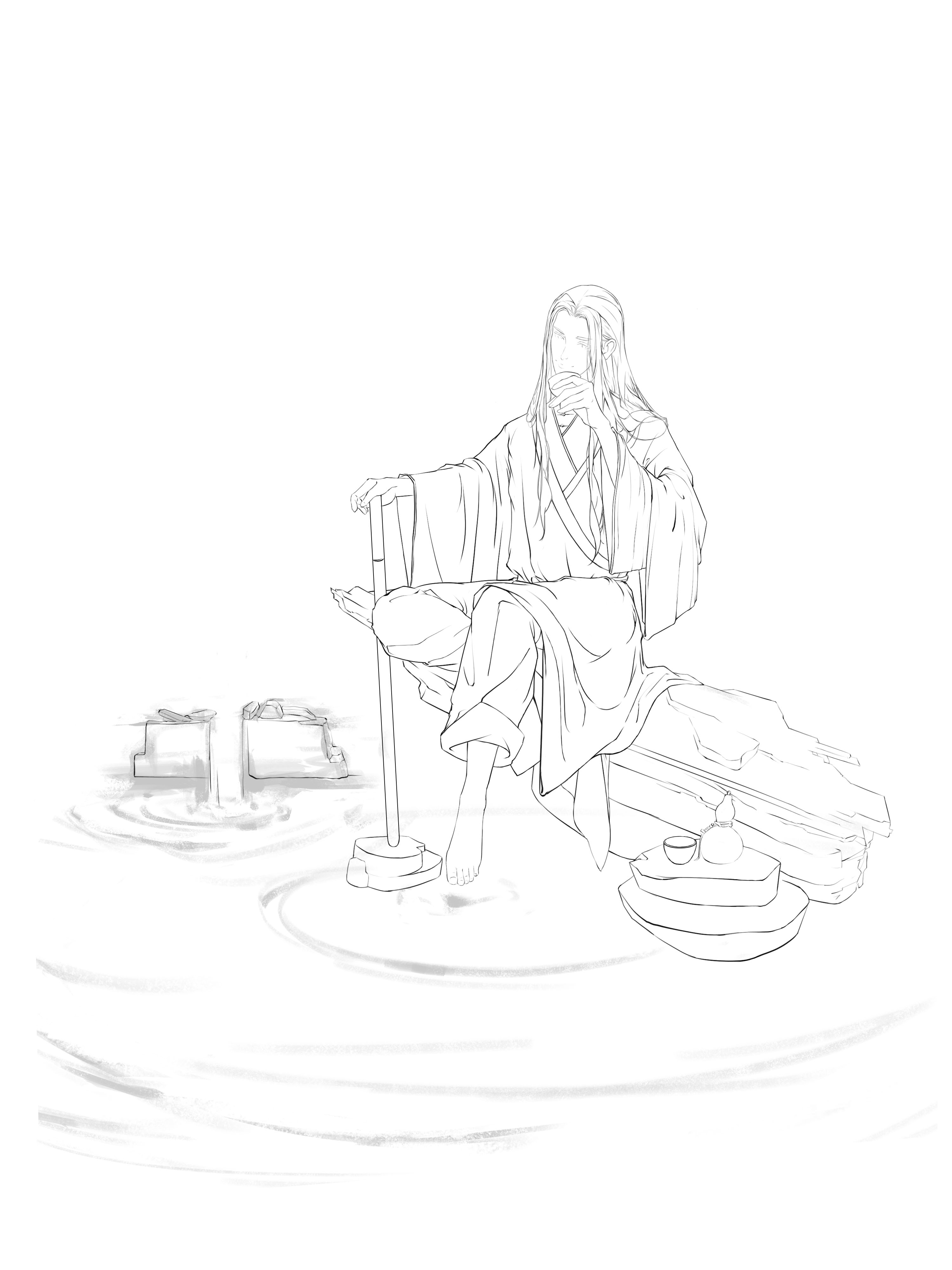 杜甫诗有云:稻米流脂粟米白,公私仓廪俱丰实。粮食充足使得唐朝的酒业繁荣,在盛唐年间,喝酒更是一种社会风气,饮酒赋诗成潮流。故创作这幅《杯中日月》。