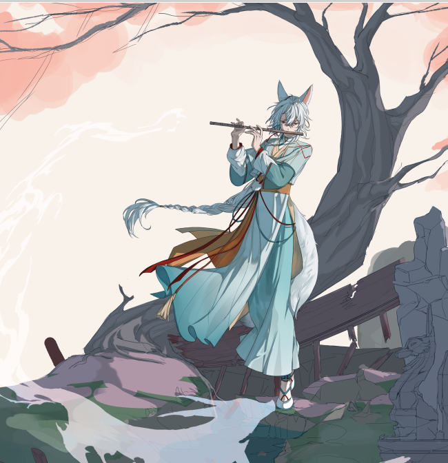 大唐盛世,就算是妖族也与人类的王朝交往活跃,这天,一只小狐妖正要下山,往盛世中去,途遇一处波光粼粼的湖面,见树叶漂旋流转于湖面上,不由得吹奏一曲,唤出狐灵一同嬉戏。