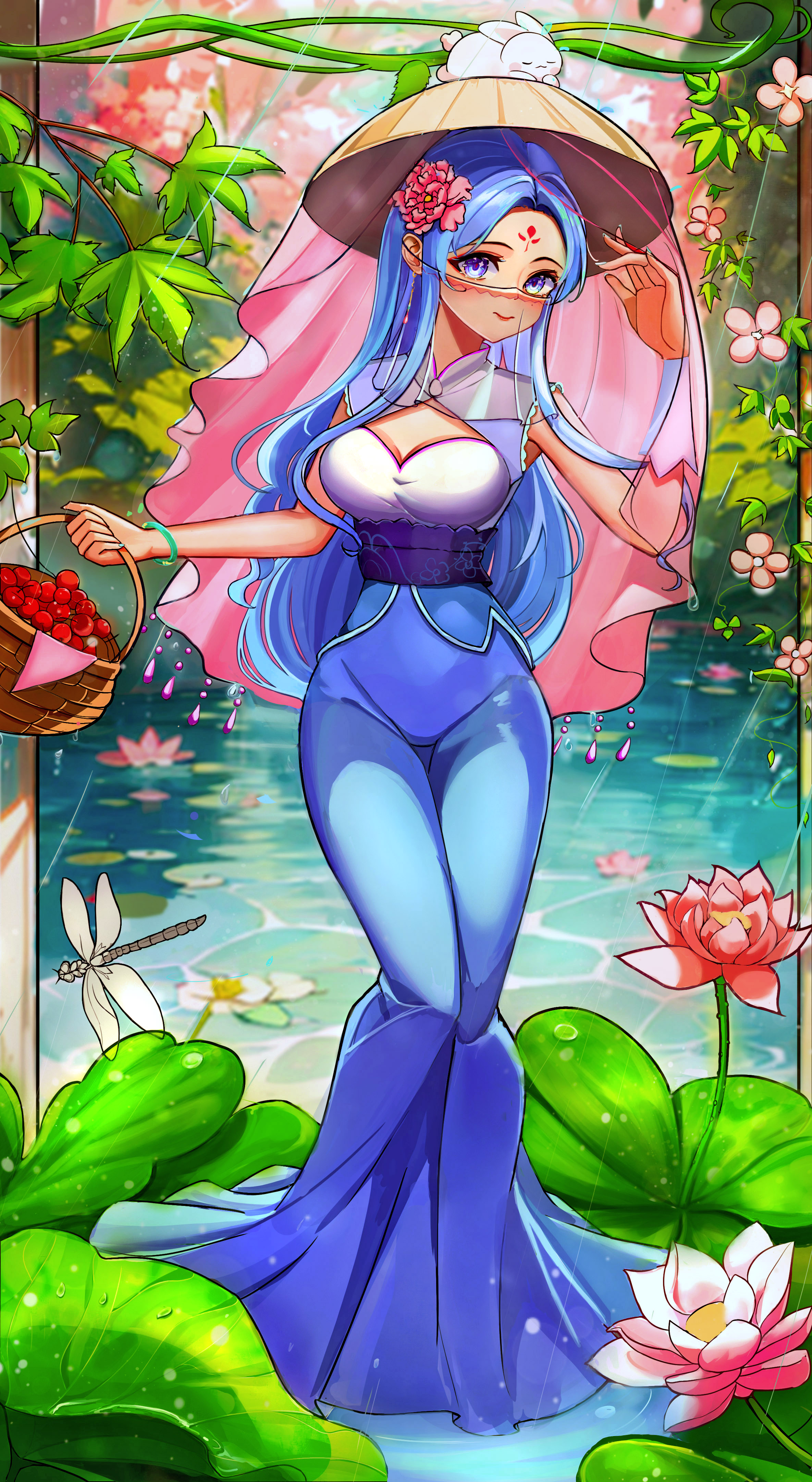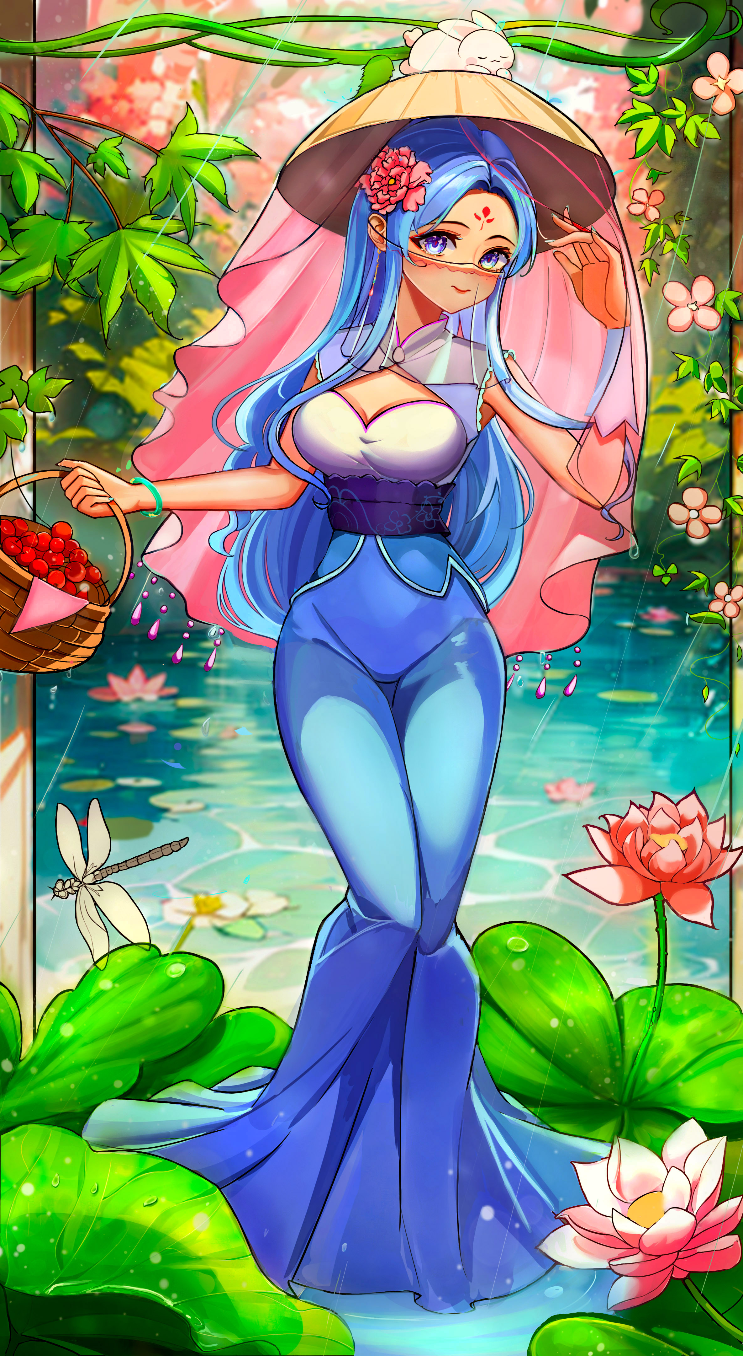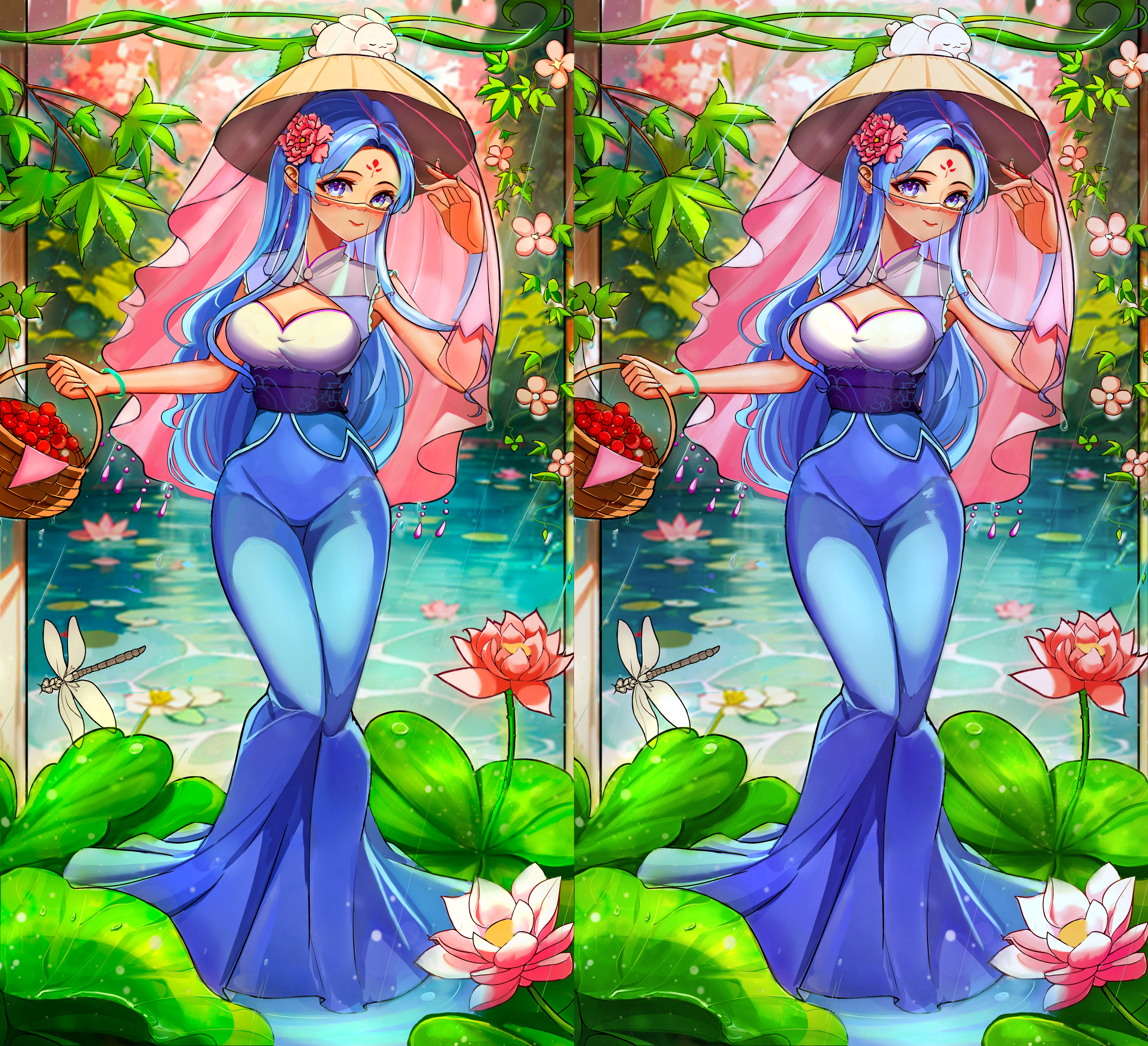 唐朝时期的风采 中华民族的神韵每一篇都是唯美的.也有许多大唐雄风的、威武壮观的画面、我的想法创作的话:先去了解唐朝的背景文化去感受其中的先辈们的智慧、唐装礼服是最有证明的 这些礼服上非常华丽,采用贵重的绸缎、锦缎等材质,还会有各种装饰品和配饰。这时期女子的服饰品类非常丰富多样,这也反映了唐朝文化的繁荣和多元性。 好啦下面就看图吧、一会在看后面的讲解 图中的女子的服装款式是参考唐朝图片去修改的下方围着女子的荷叶池衬托着女子清风的气势、手微微撩起帷帽边展示着自己的美貌、女子另一手拎的果篮里的樱桃代表着礼品寄托感情的美好意象、头上的小兔子象征着今年的生肖 好啦、最后祝大家都能兔飞猛进、前兔无量!!!感谢大家观看、完毕!