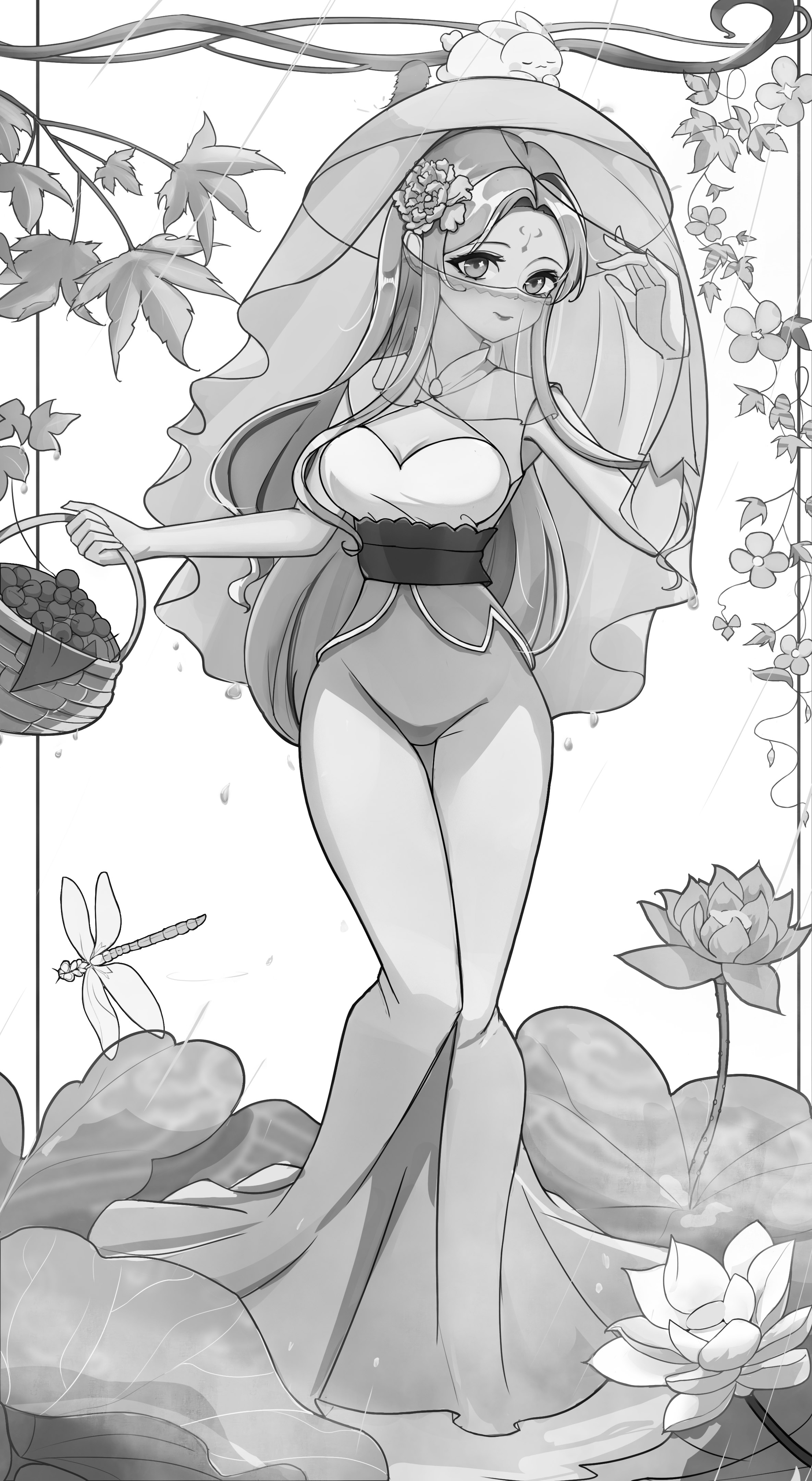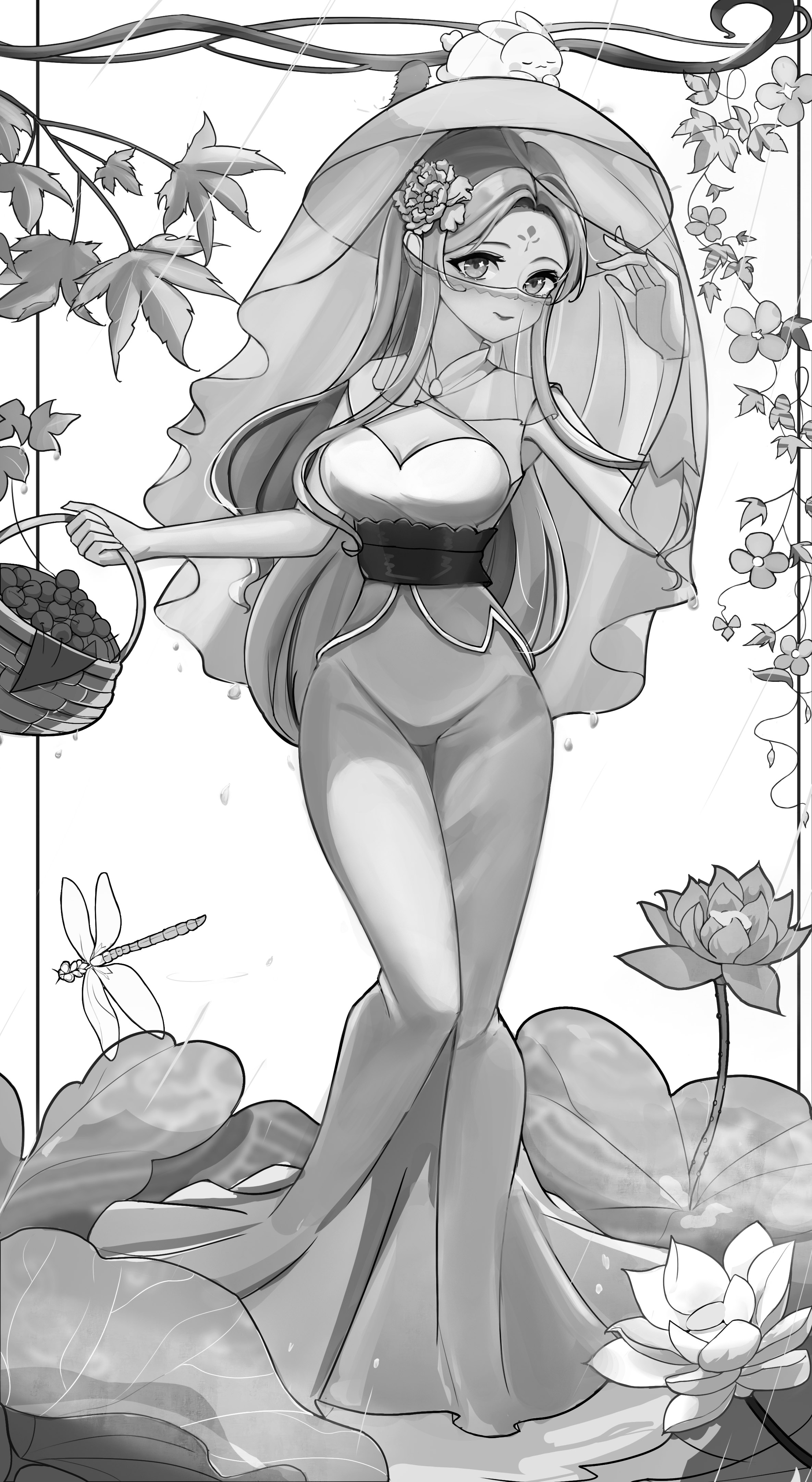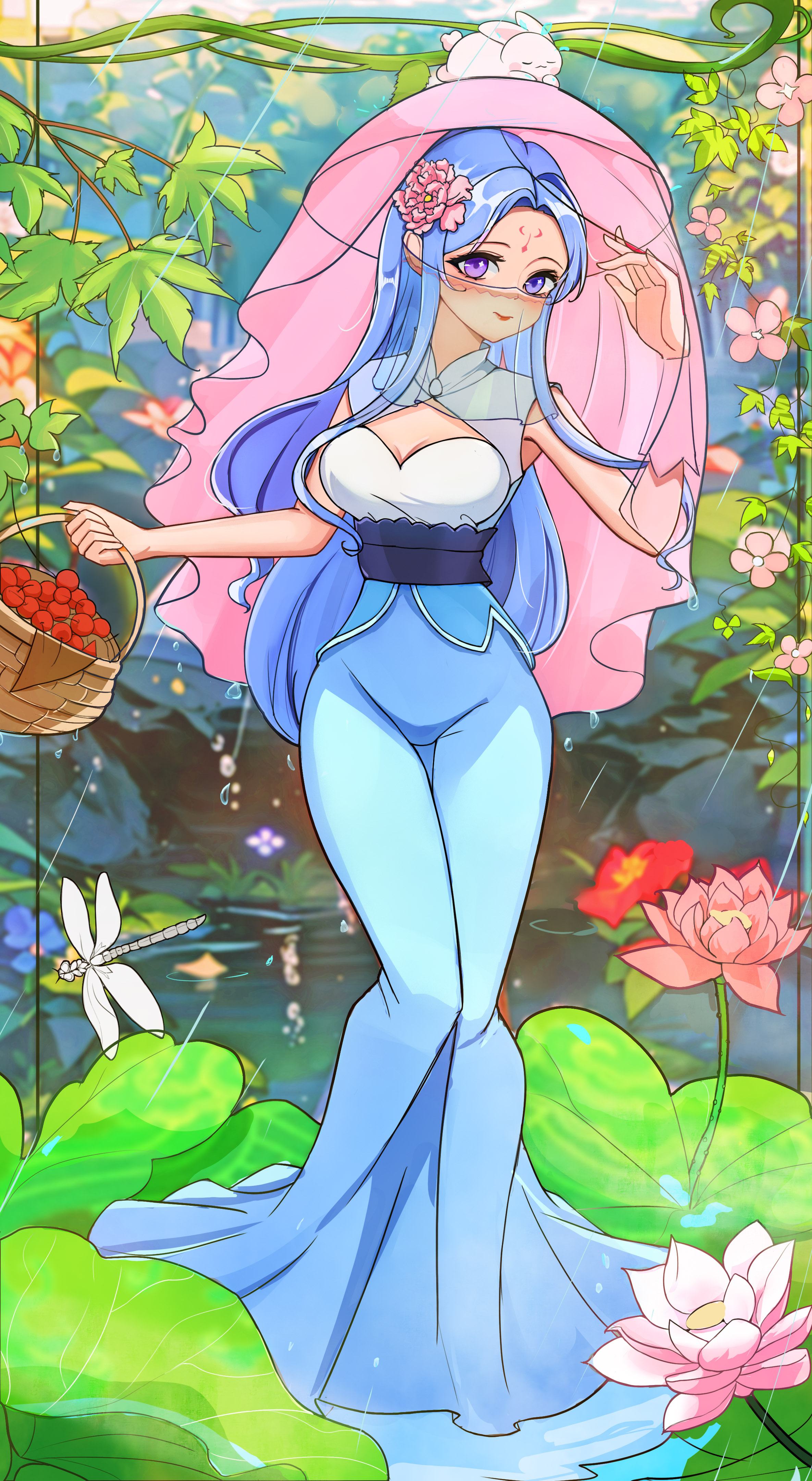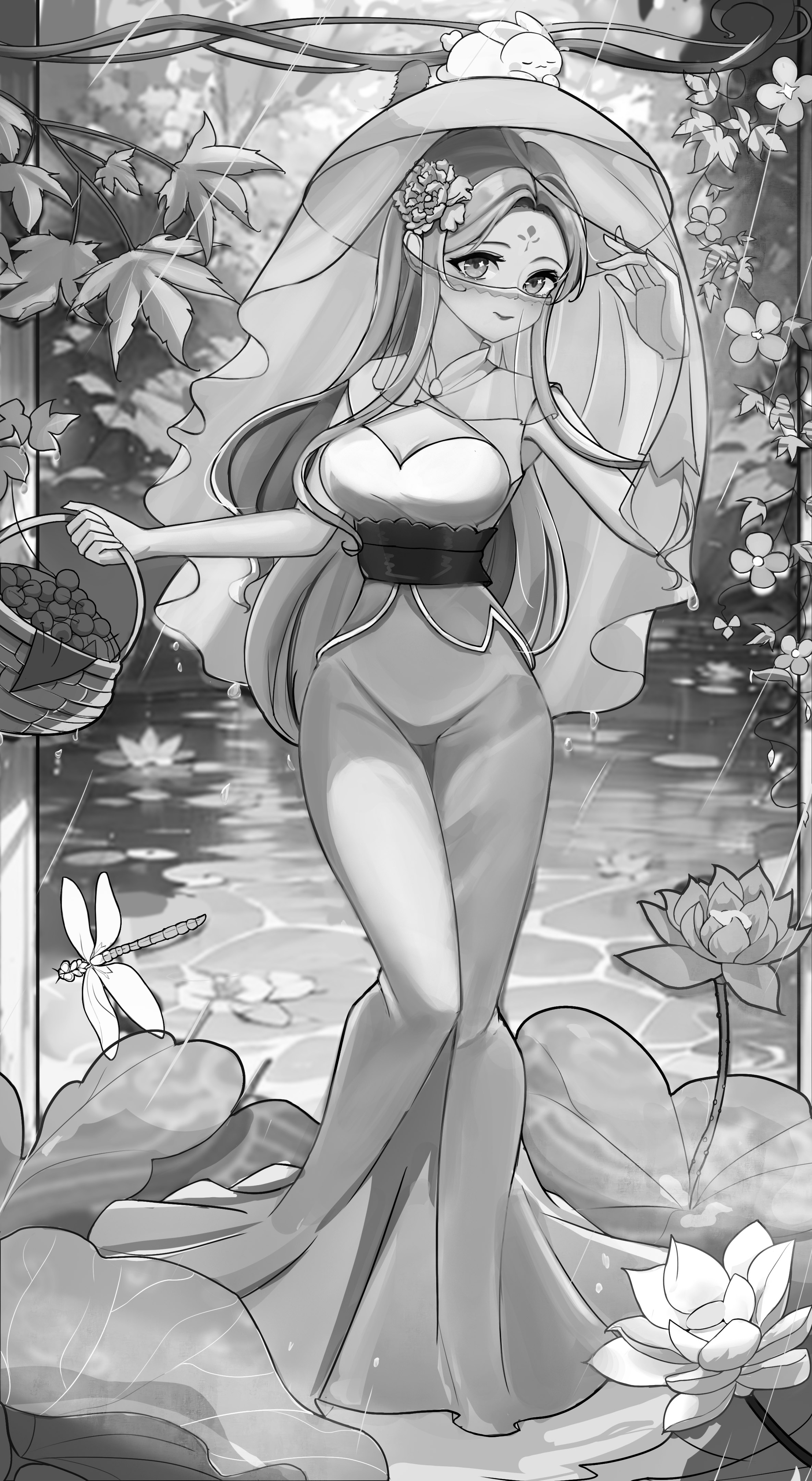 唐朝时期的风采 中华民族的神韵每一篇都是唯美的.也有许多大唐雄风的、威武壮观的画面、我的想法创作的话:先去了解唐朝的背景文化去感受其中的先辈们的智慧、唐装礼服是最有证明的 这些礼服上非常华丽,采用贵重的绸缎、锦缎等材质,还会有各种装饰品和配饰。这时期女子的服饰品类非常丰富多样,这也反映了唐朝文化的繁荣和多元性。 好啦下面就看图吧、一会在看后面的讲解 图中的女子的服装款式是参考唐朝图片去修改的下方围着女子的荷叶池衬托着女子清风的气势、手微微撩起帷帽边展示着自己的美貌、女子另一手拎的果篮里的樱桃代表着礼品寄托感情的美好意象、头上的小兔子象征着今年的生肖 好啦、最后祝大家都能兔飞猛进、前兔无量!!!感谢大家观看、完毕!