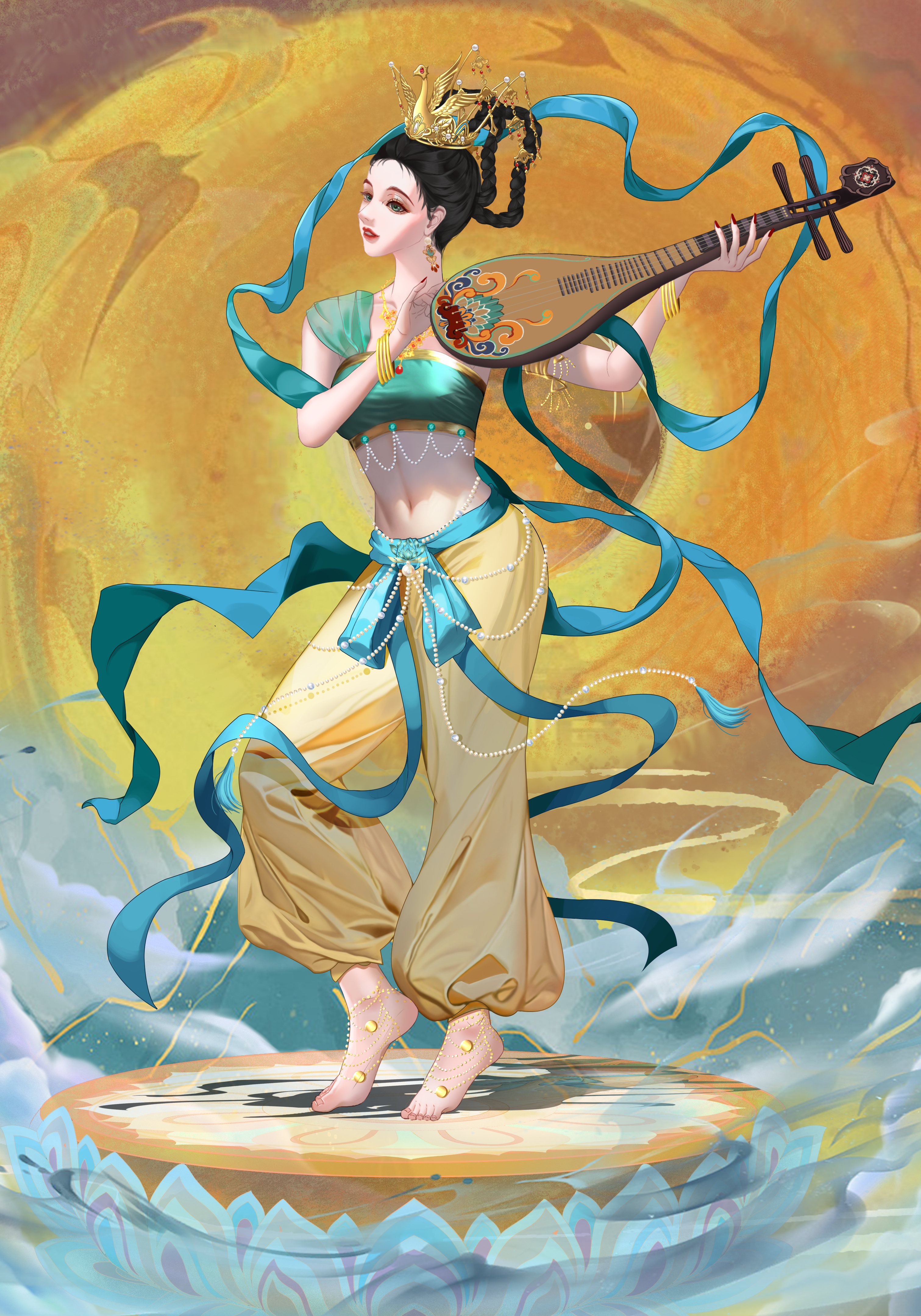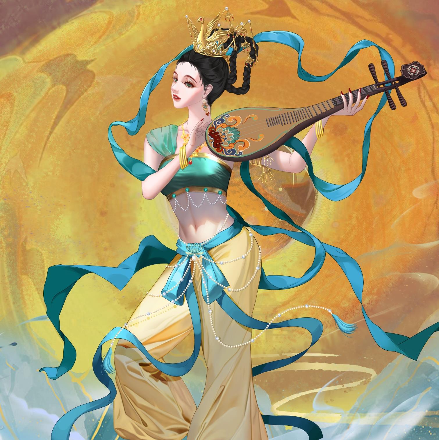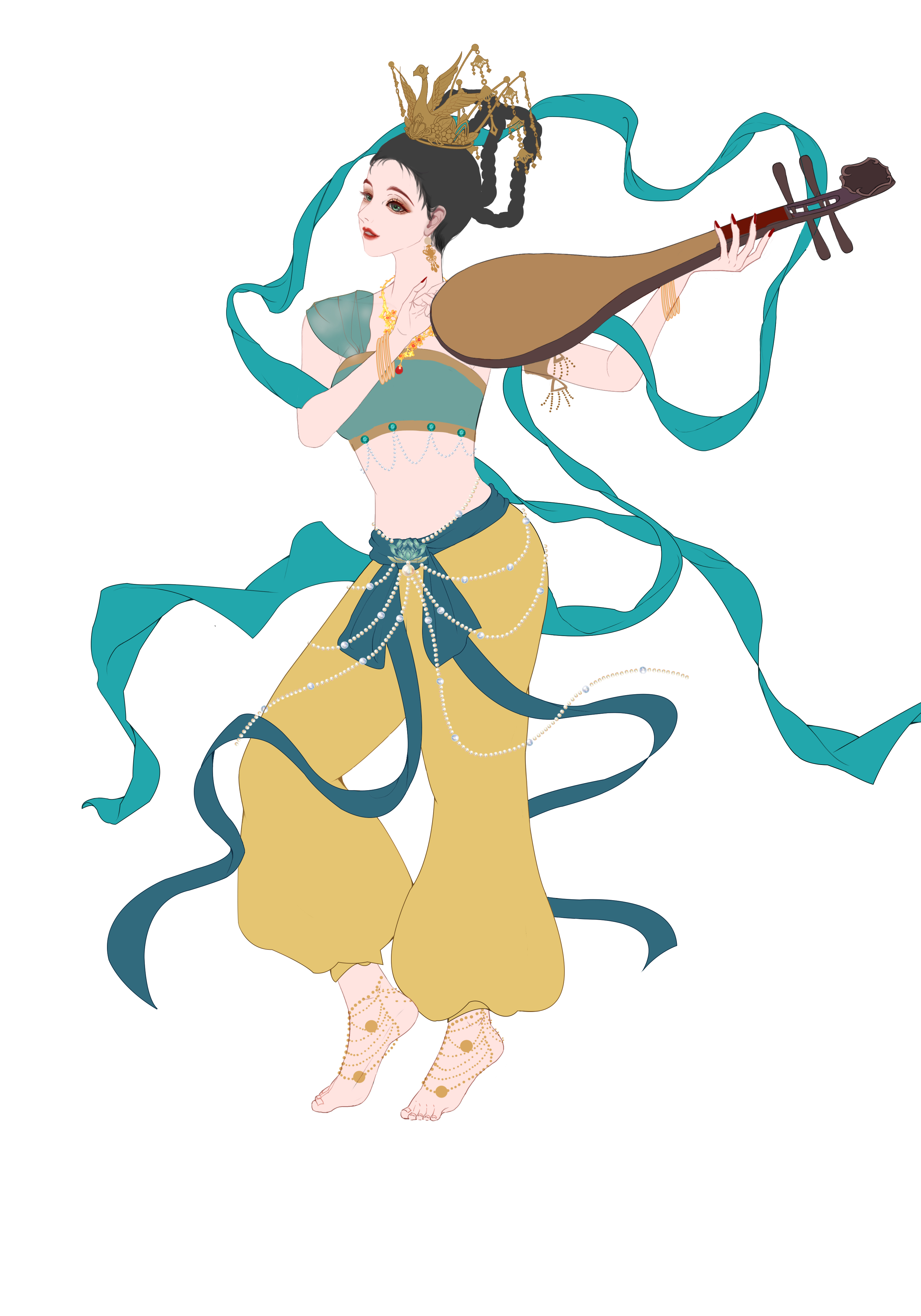 敦煌壁画作为唐代文化的载体,是唐朝留给后人的宝贵财富,本作品是以敦煌为灵感展现出古人对天上仙女的幻想与憧憬。