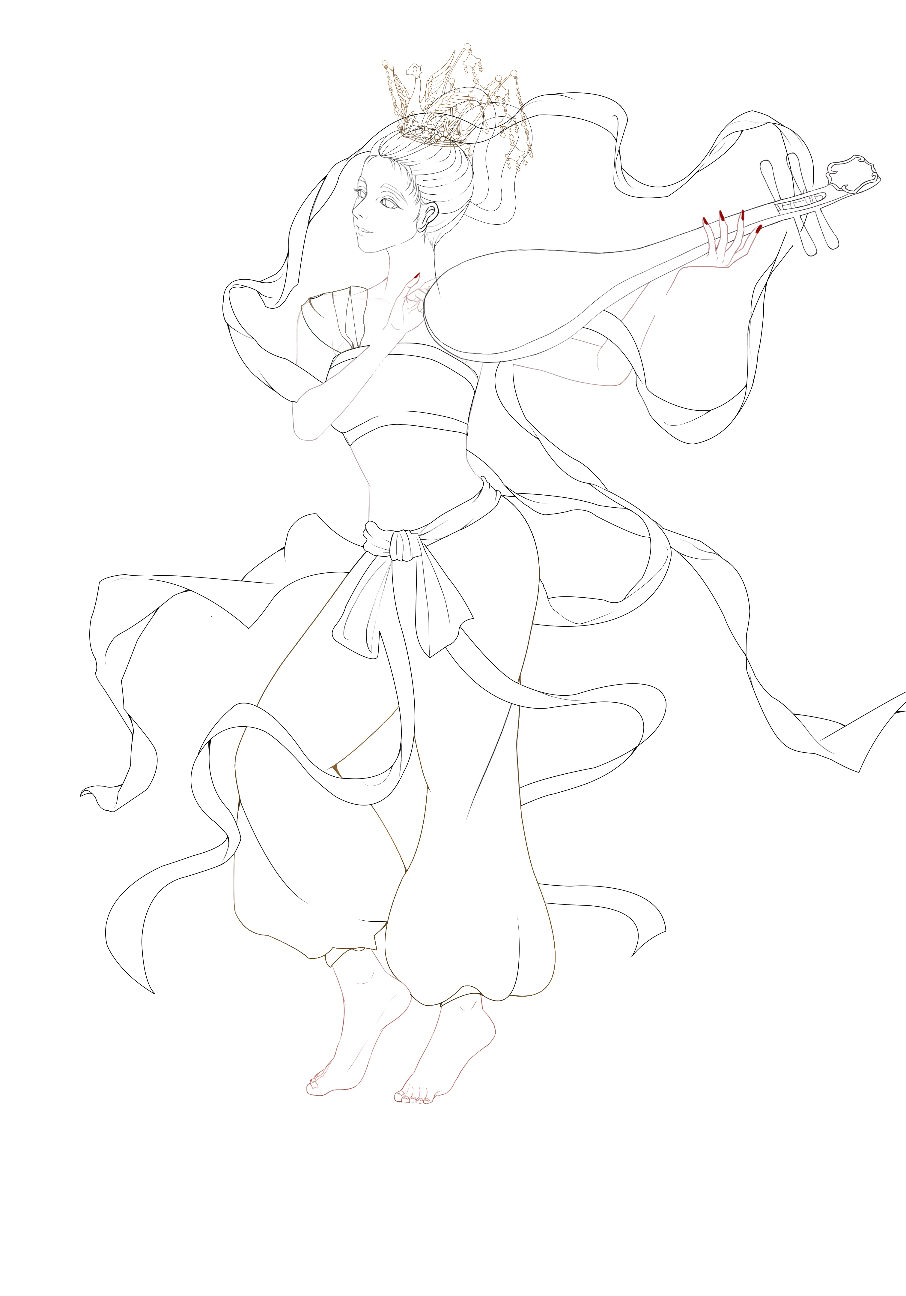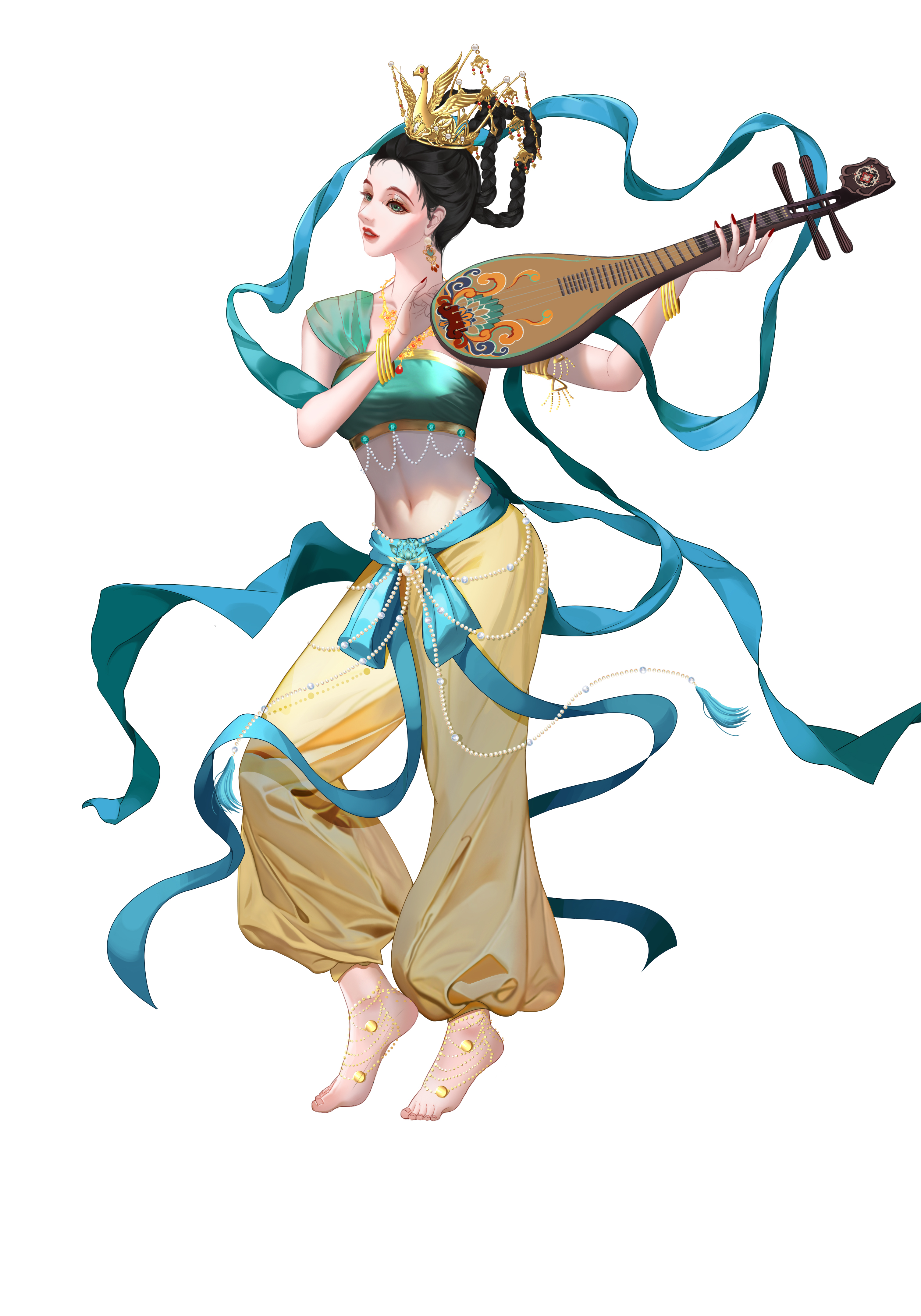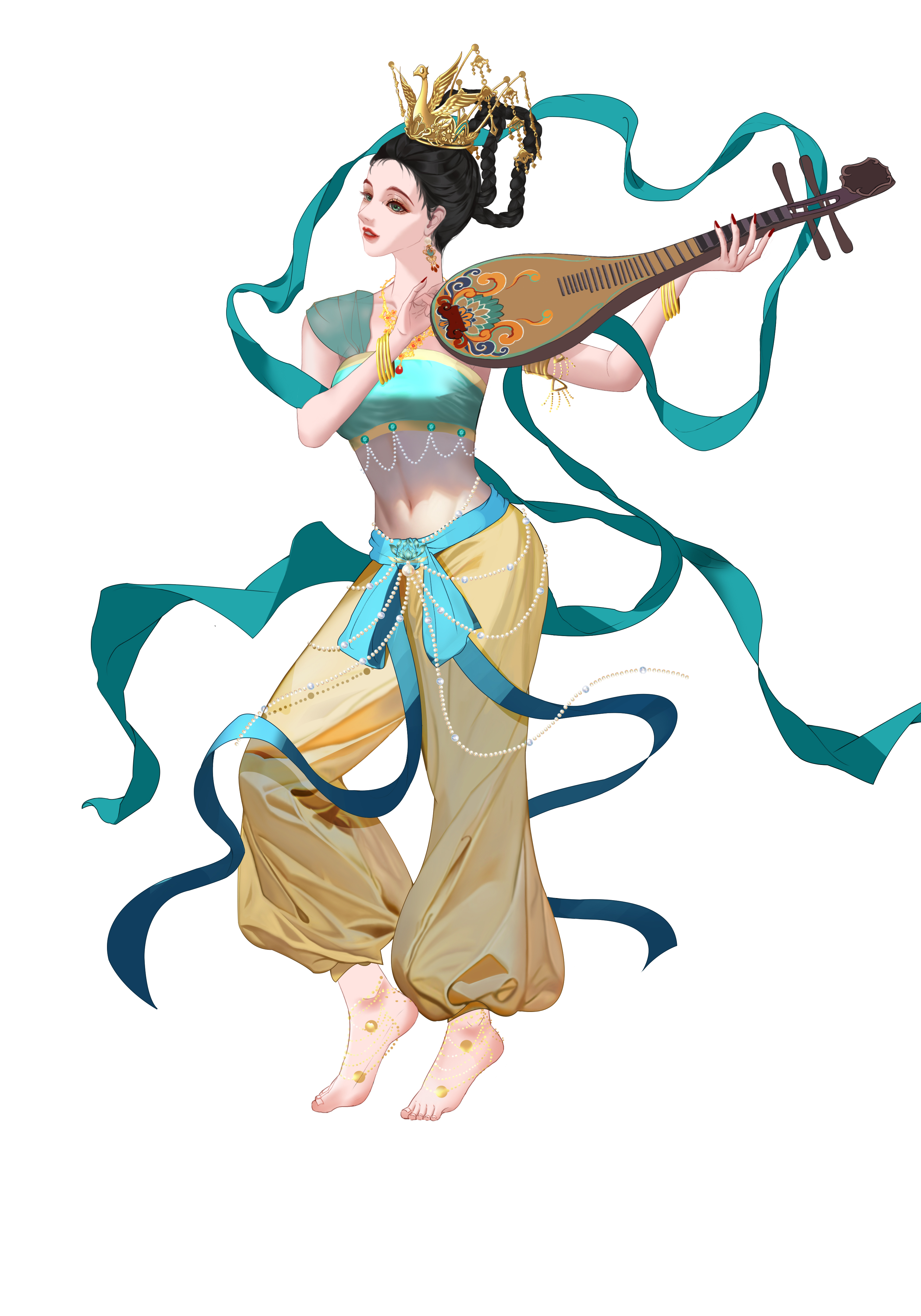 敦煌壁画作为唐代文化的载体,是唐朝留给后人的宝贵财富,本作品是以敦煌为灵感展现出古人对天上仙女的幻想与憧憬。