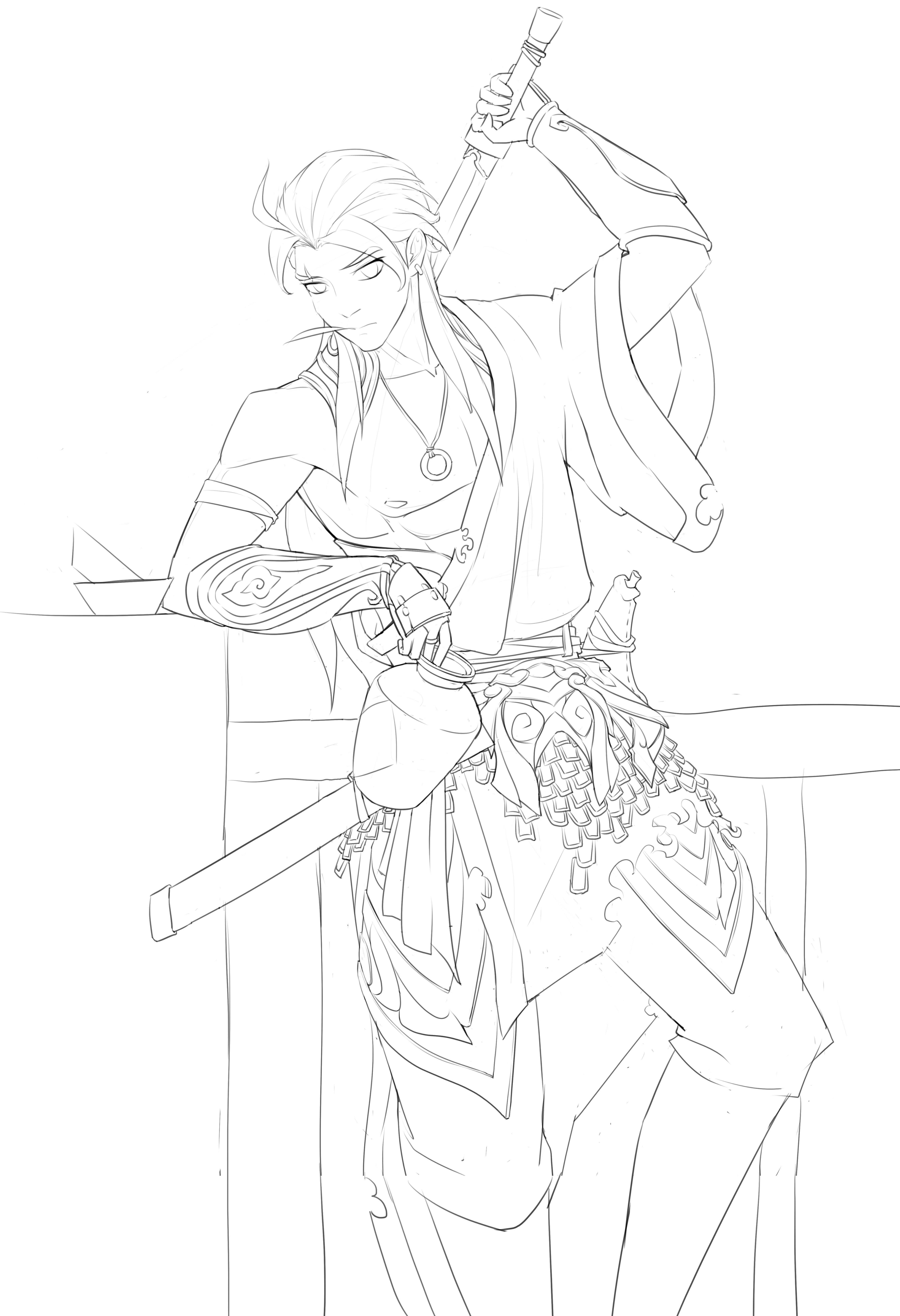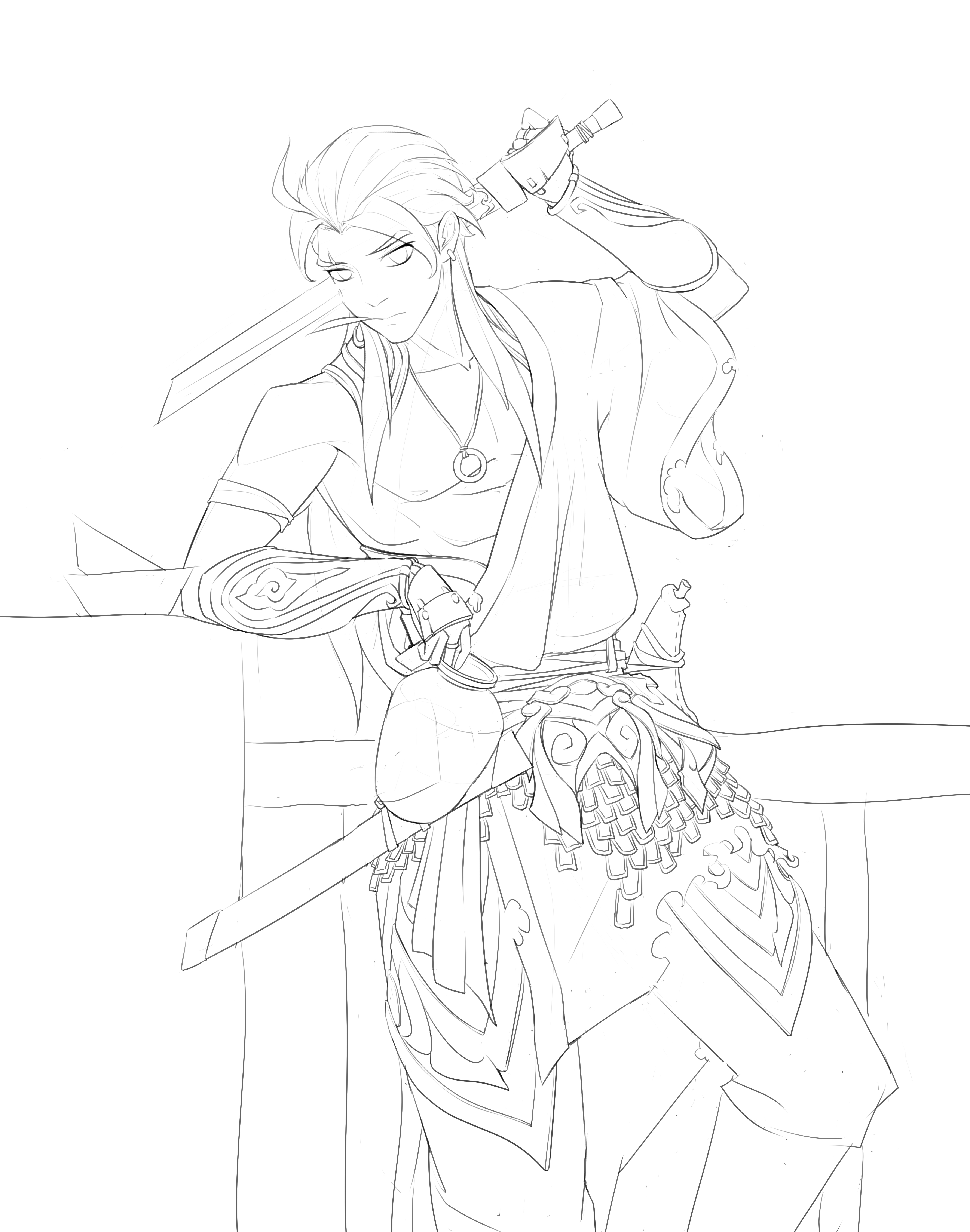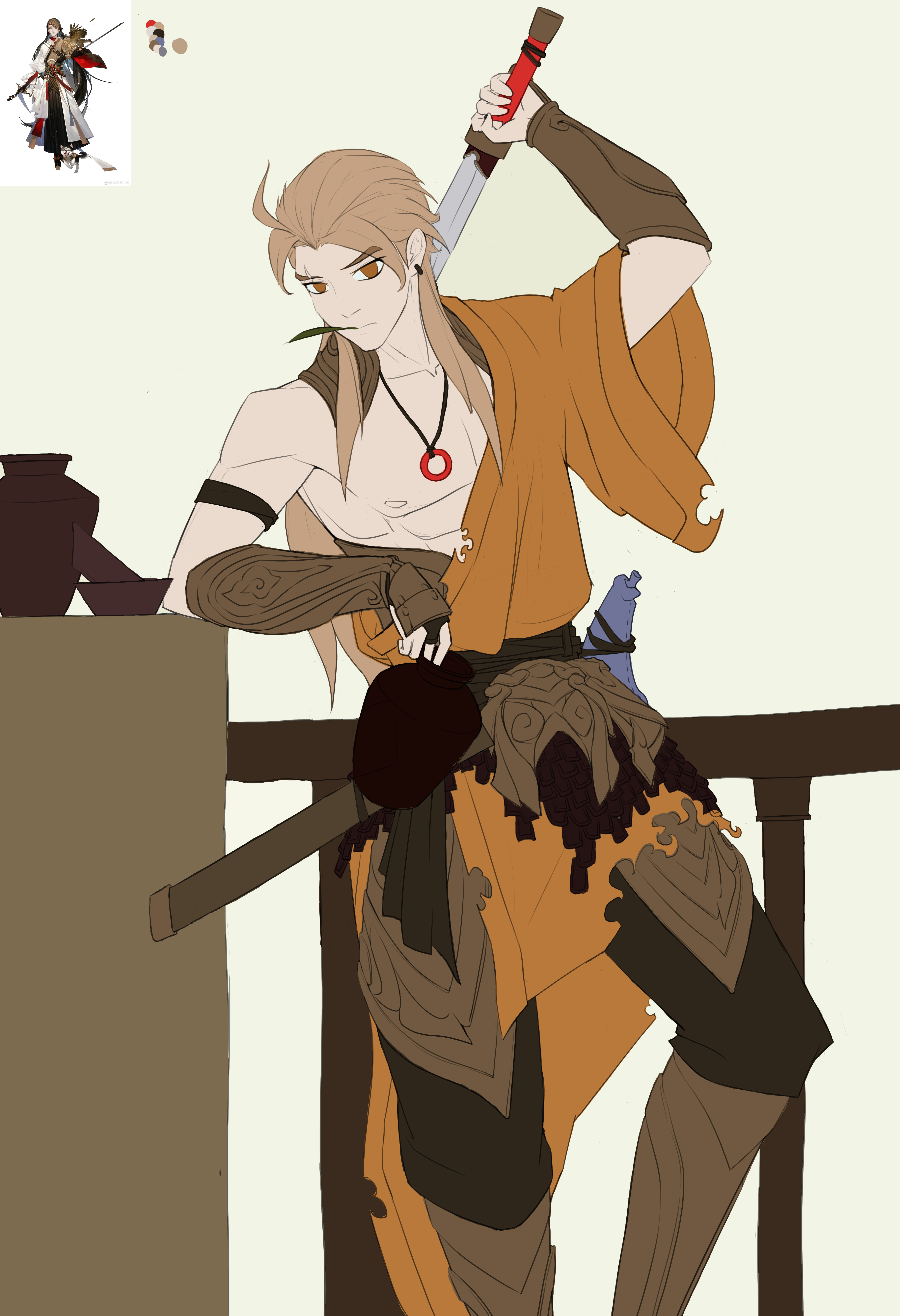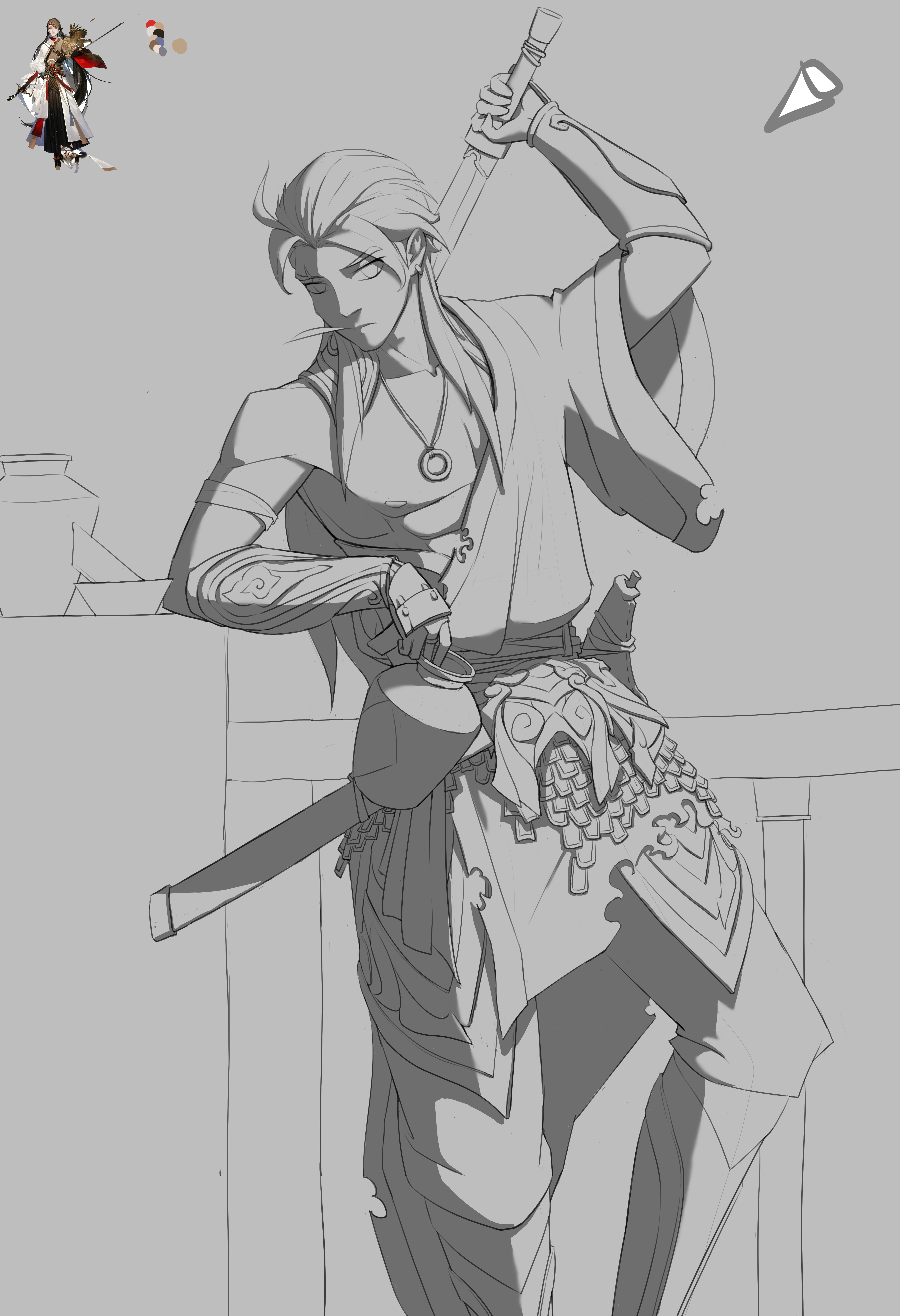 受电影唐朝侠客影响,设计了一个性格风流的剑客形象