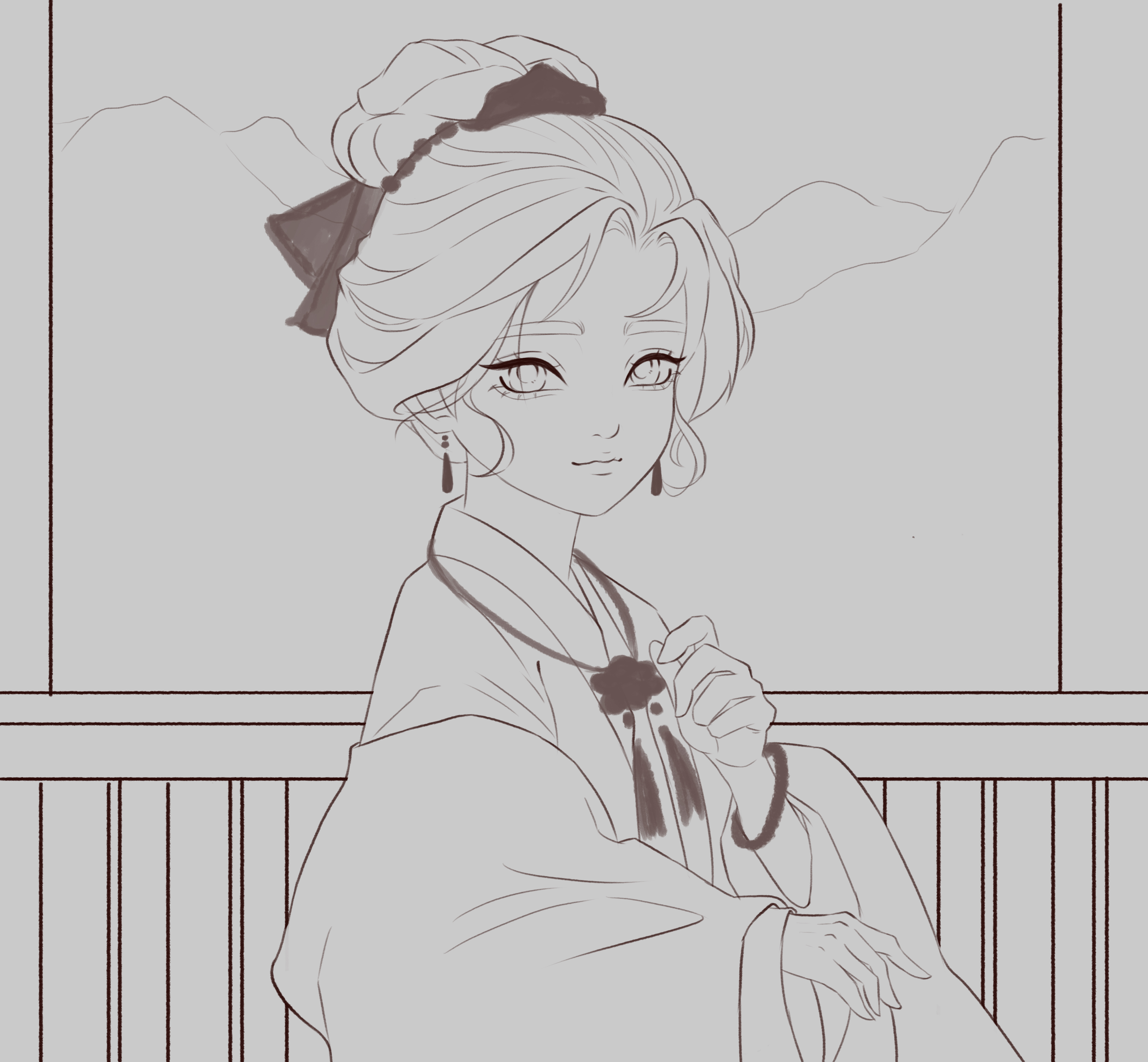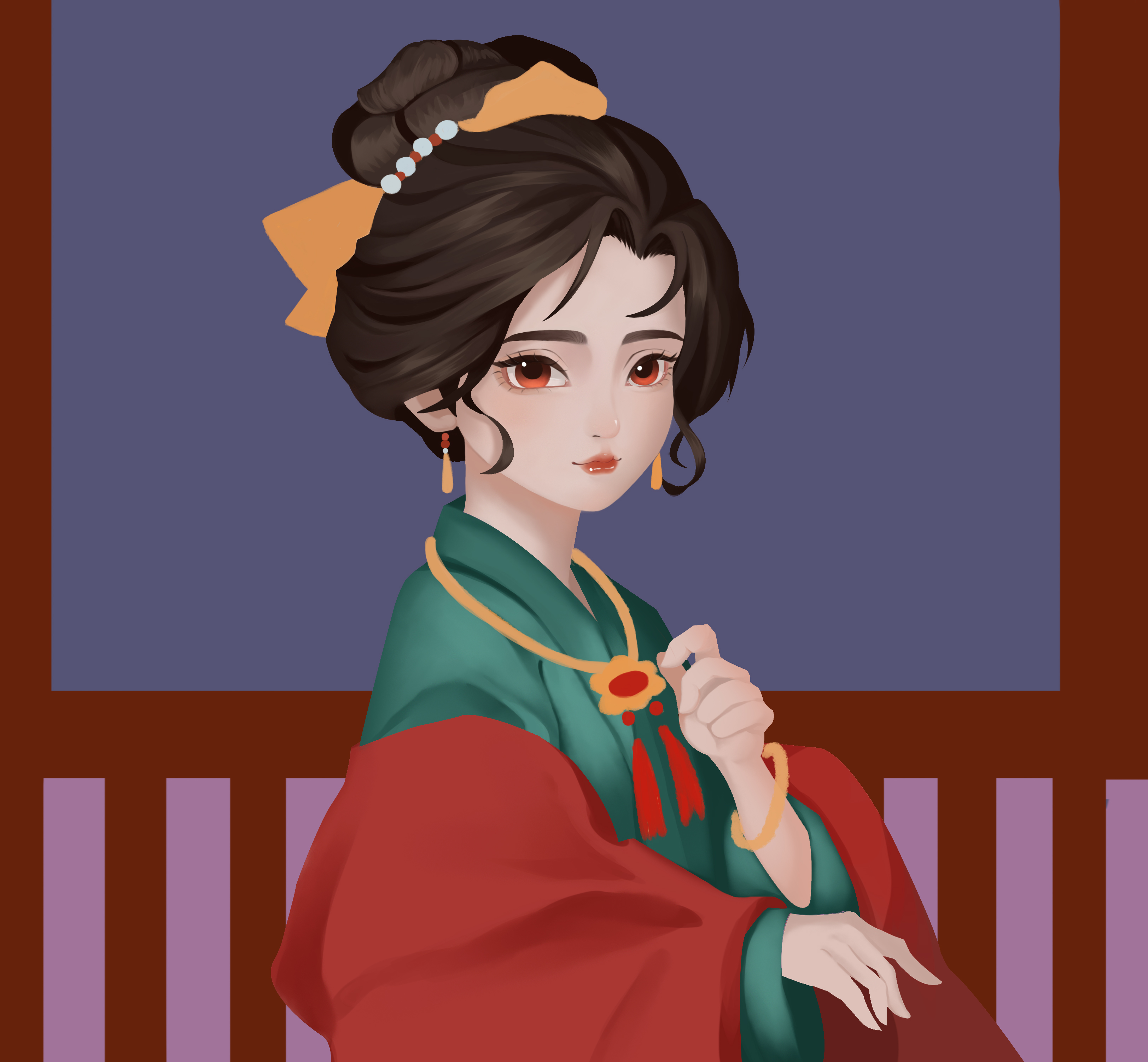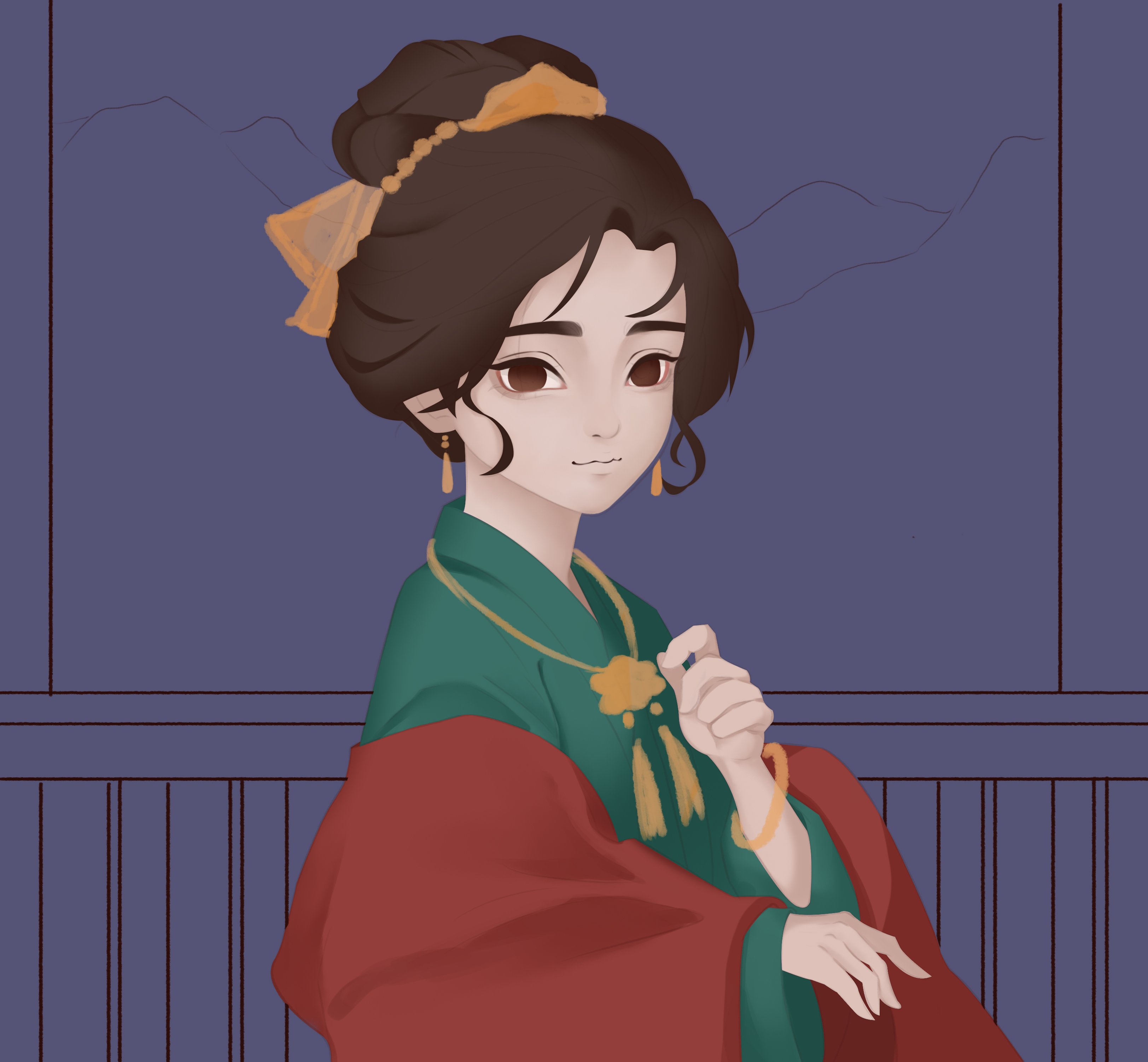 富家小姐在高楼上,欣赏灯会美景