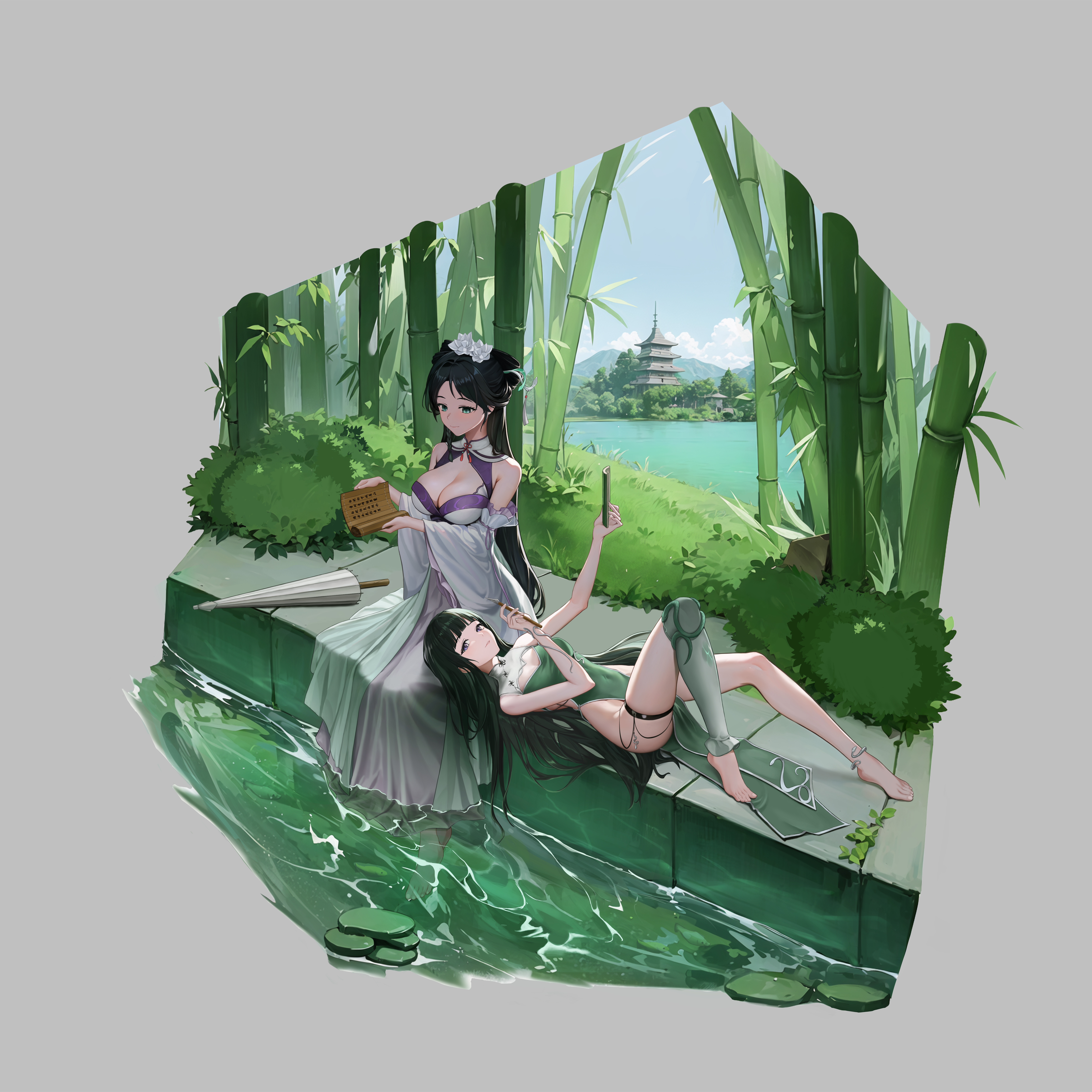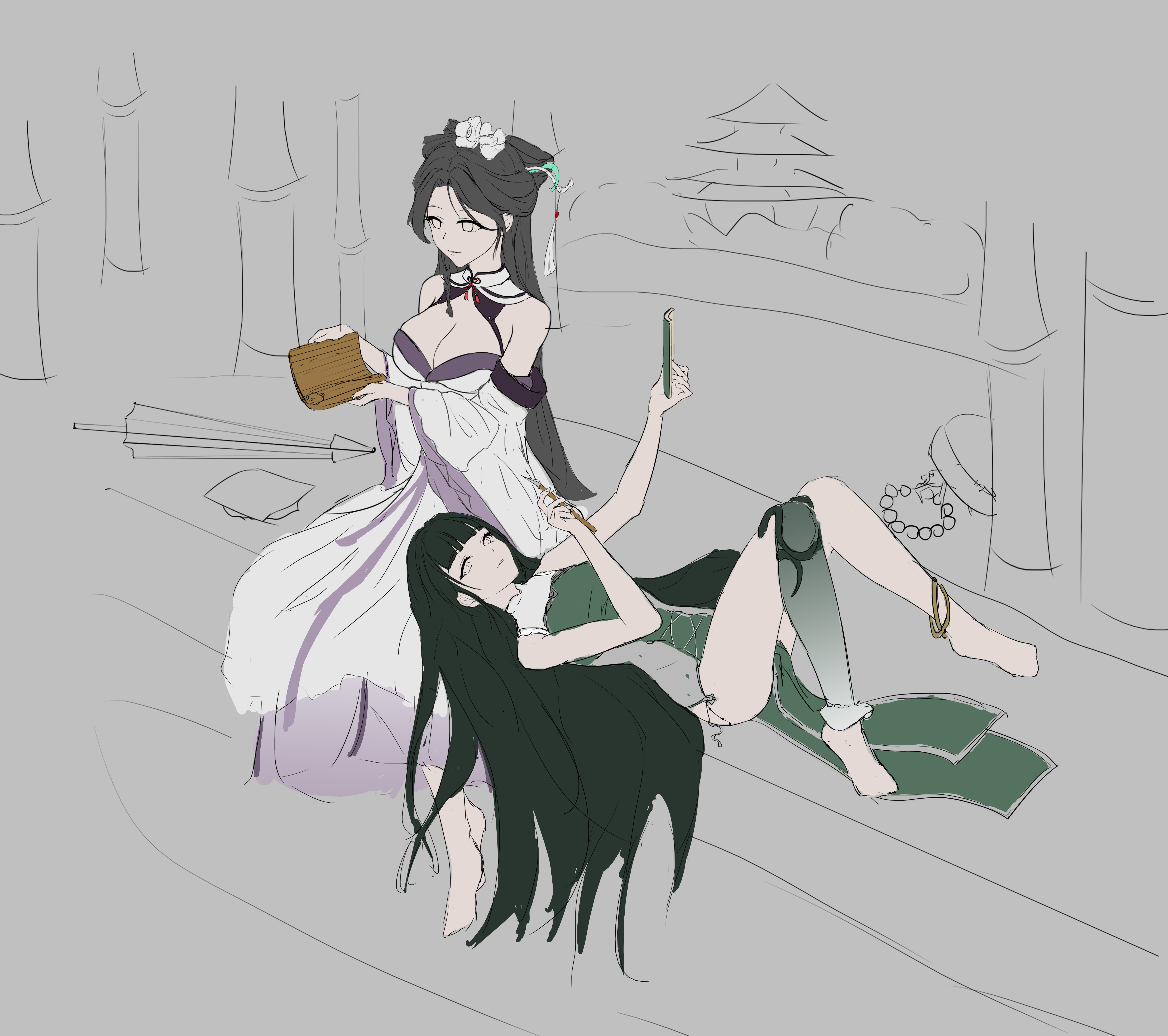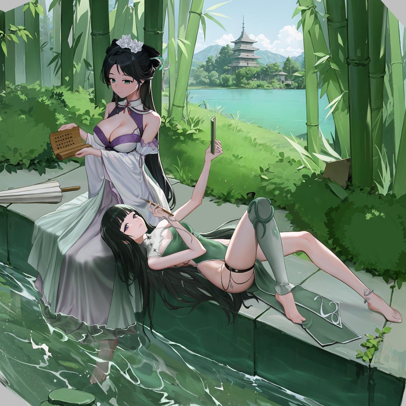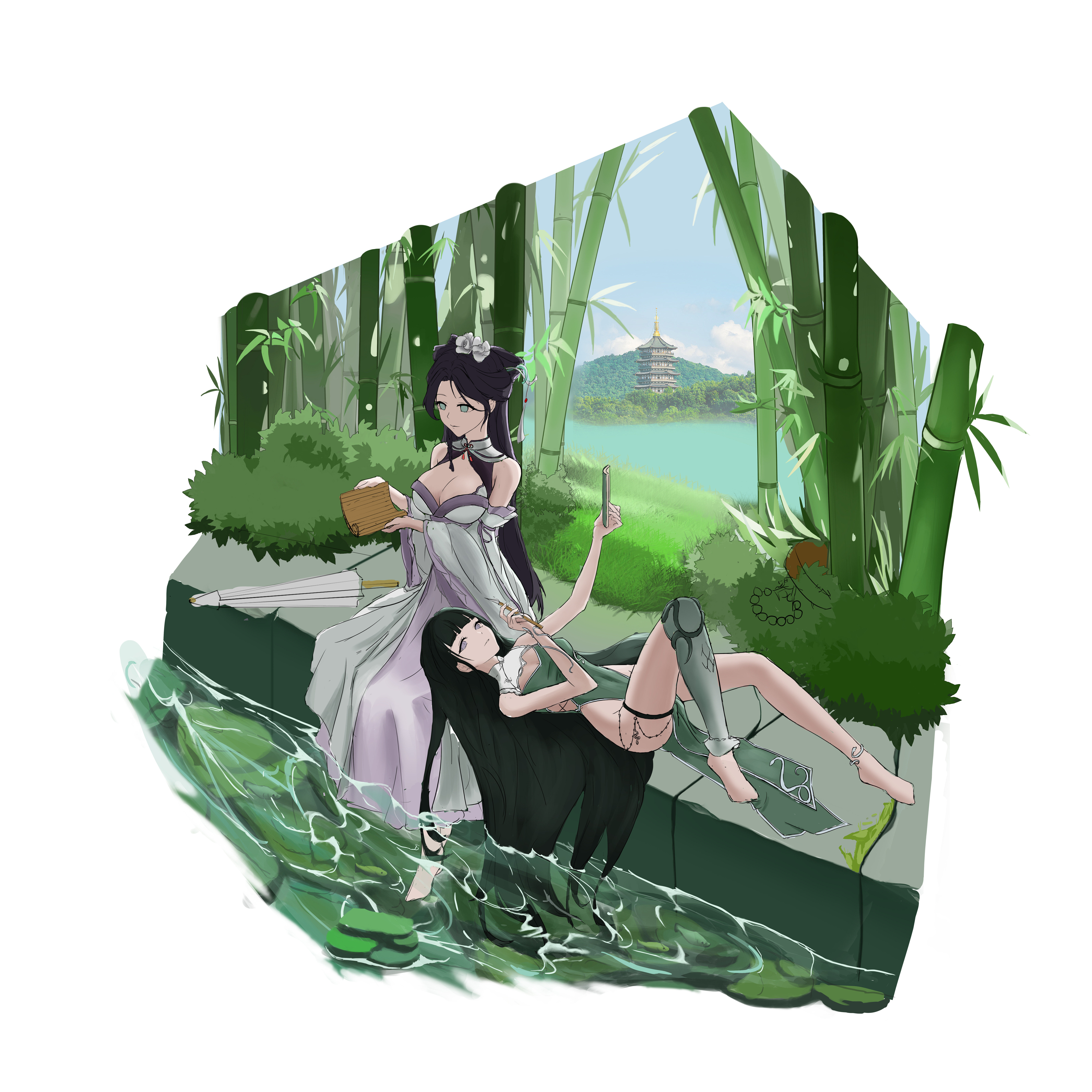 不同年代风格的青白蛇。时隔多年离开雷峰塔的白娘子与青蛇重逢。