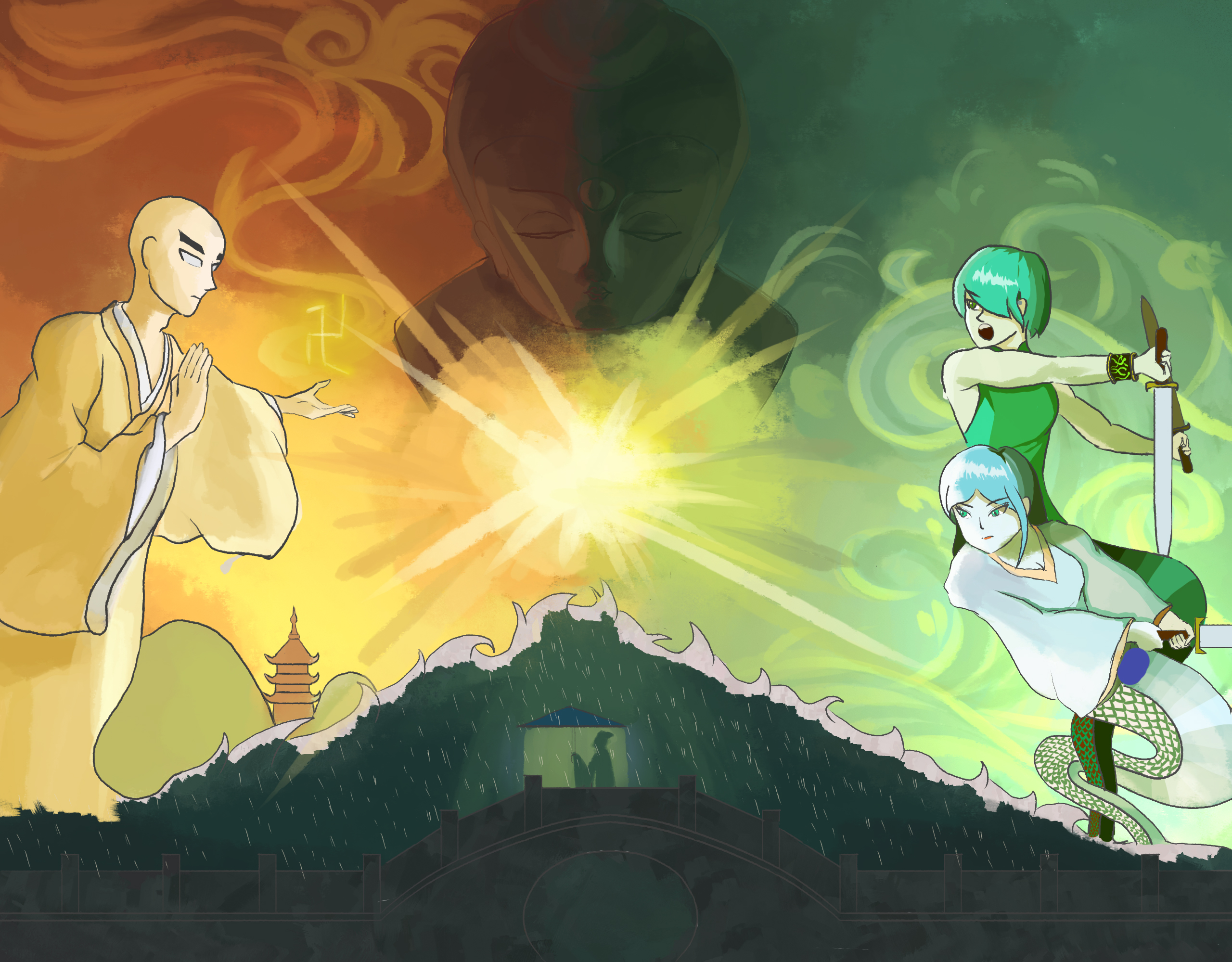 我认为,双蛇与法海才是白蛇传的主角,这是一个积极进取,想要融入人类社会的妖精对抗不思进取的老顽固和尚的故事。