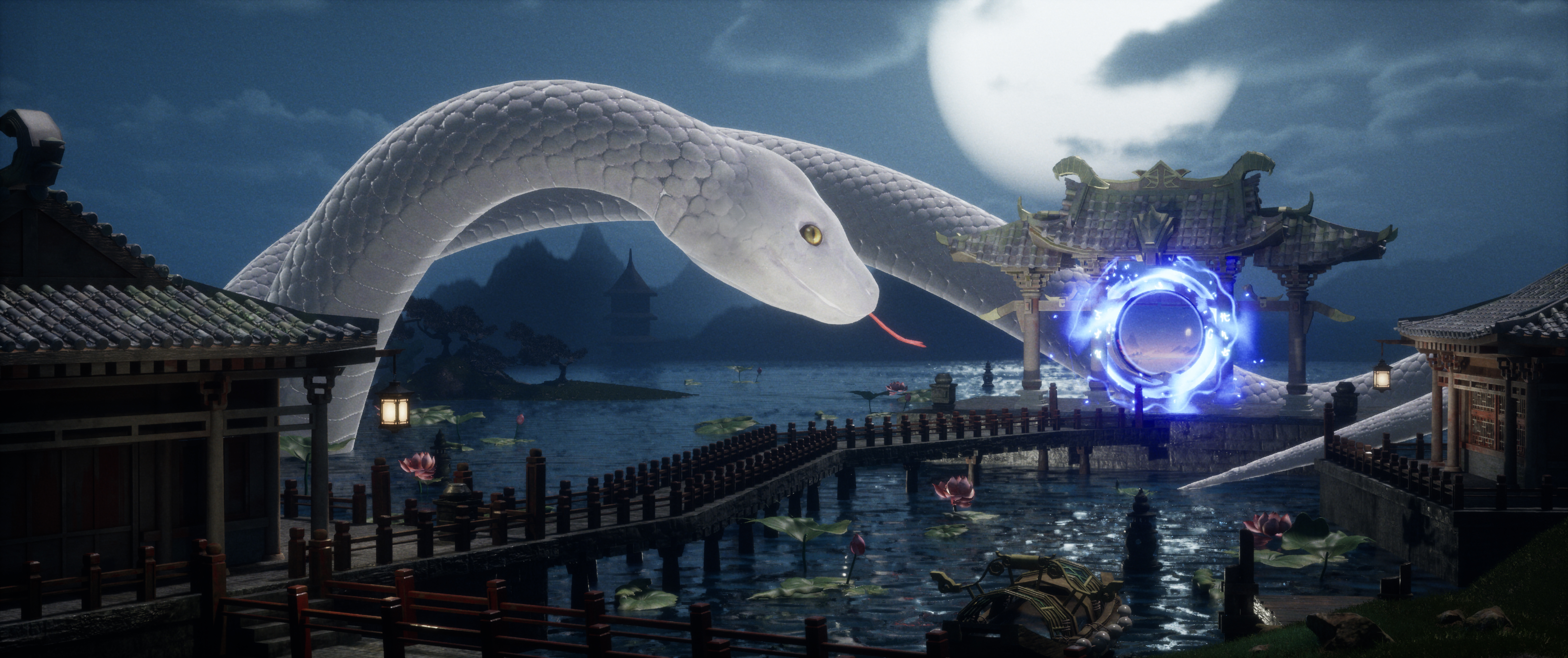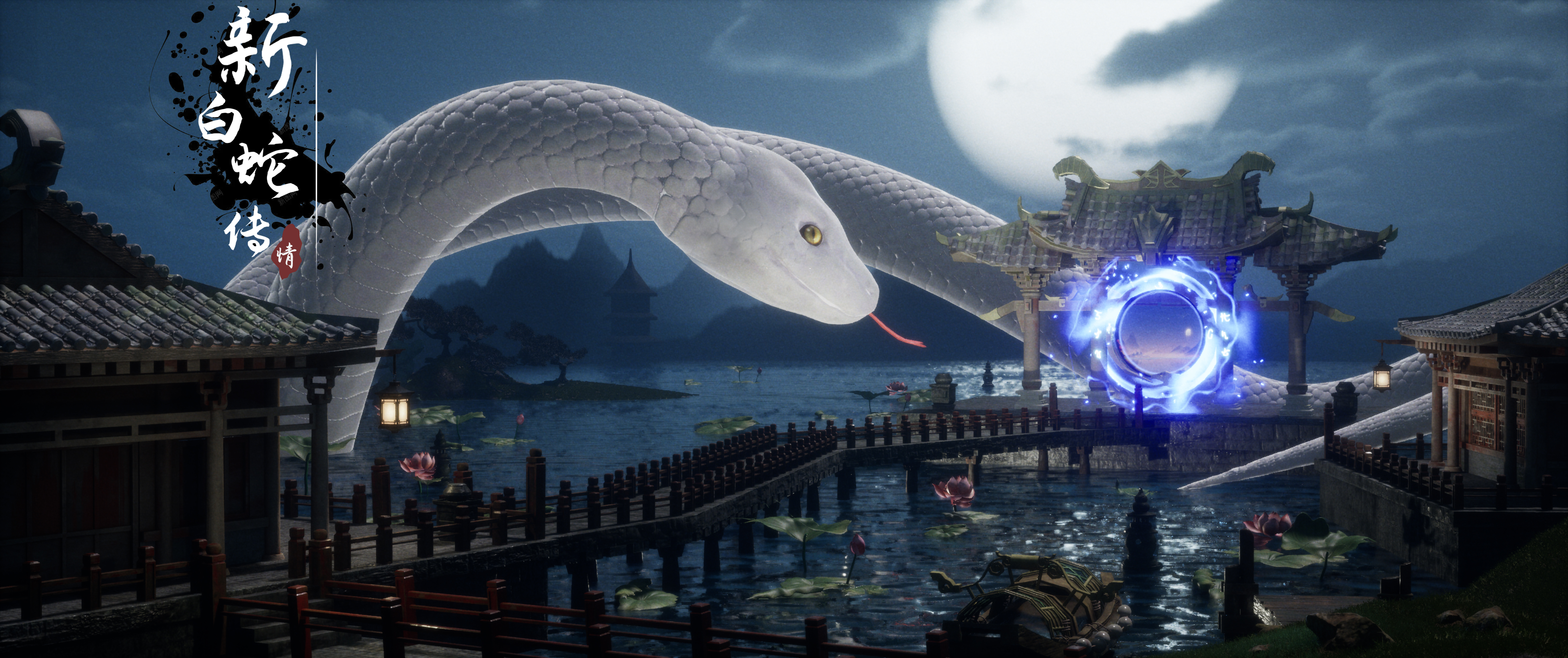 白蛇盘处碧波间,千年修炼一身闲。 因缘际遇缘份美,情愿蛇身与你缠