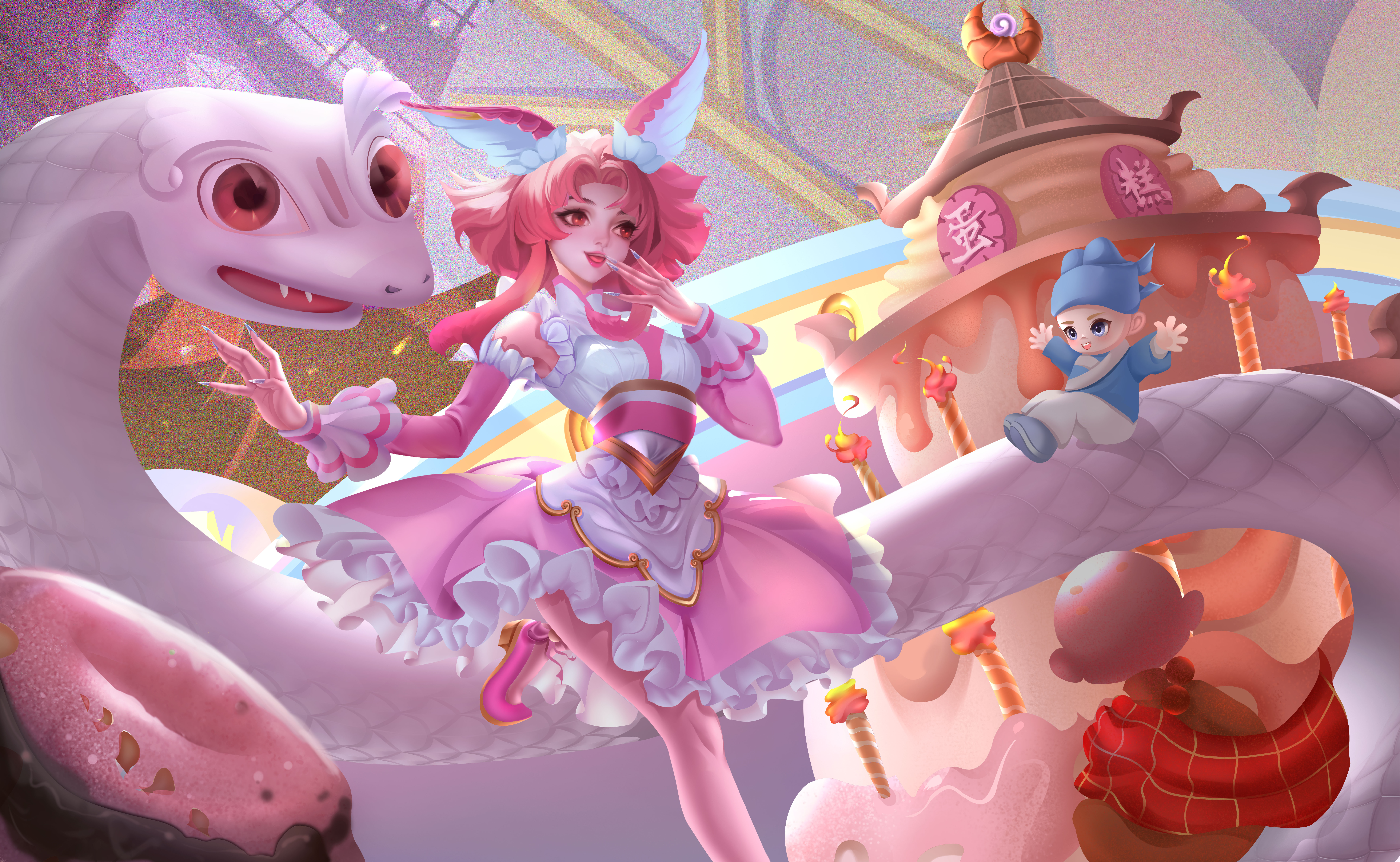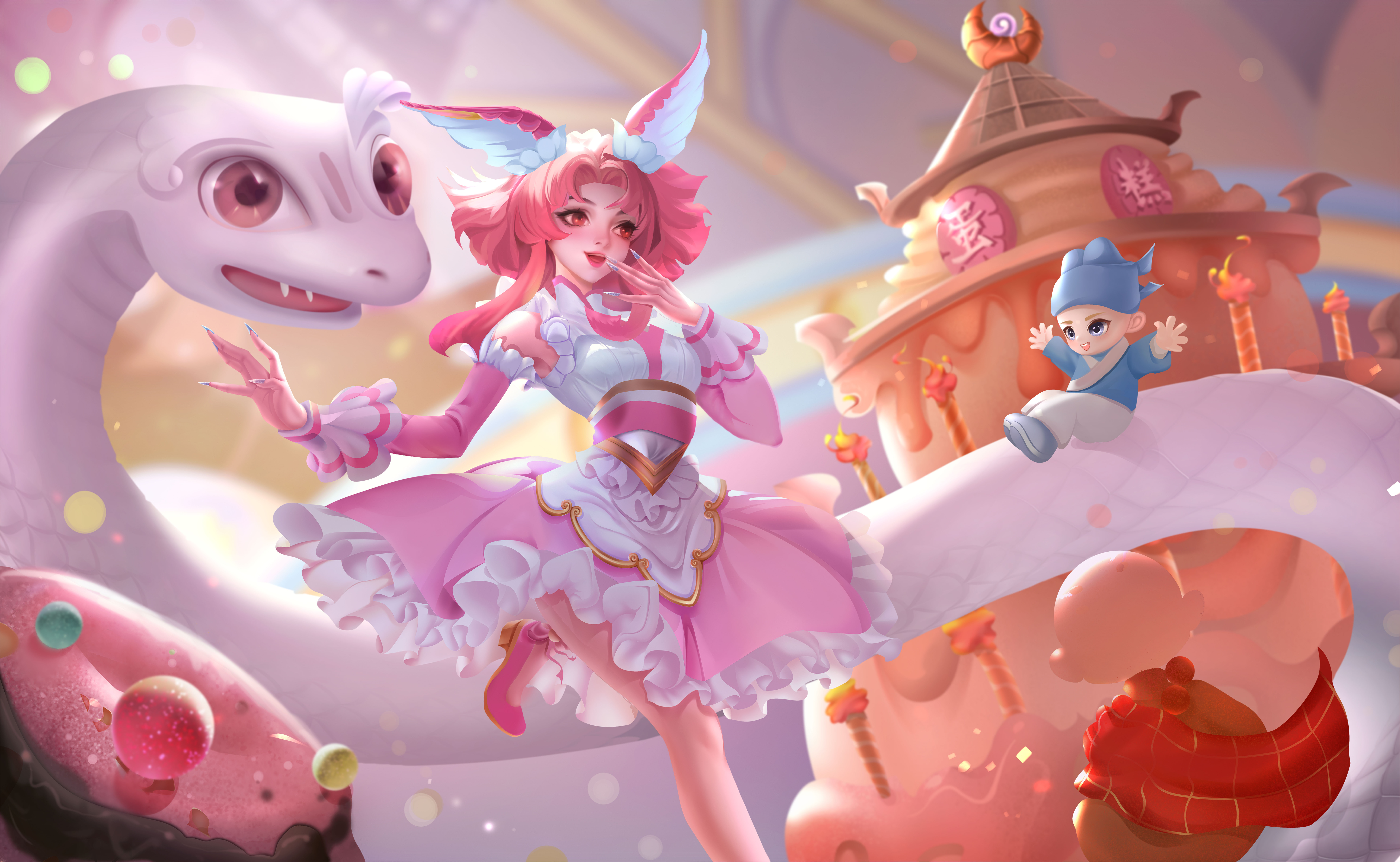 白蛇传一系列的作品结局太难过了,所以添加糖果元素让画面更加