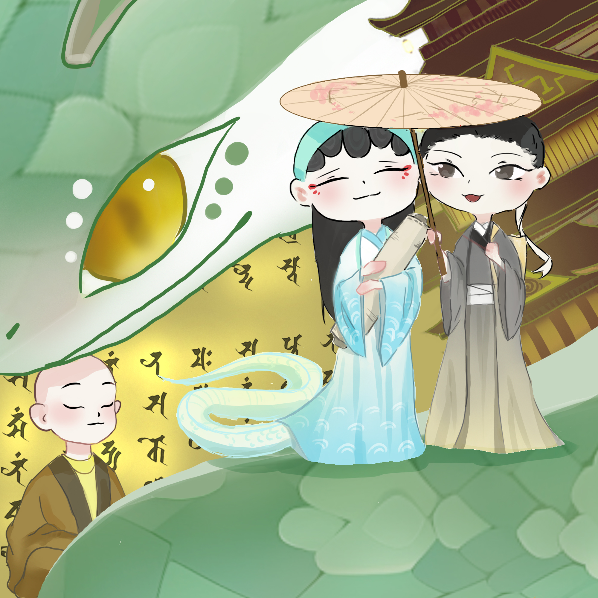 描述的是白蛇为报答许家的救命之恩,嫁给了许家后人牧童许仙。出于人妖不能结合的偏见,金山寺长老法海和尚决心收服白娘子的故事。