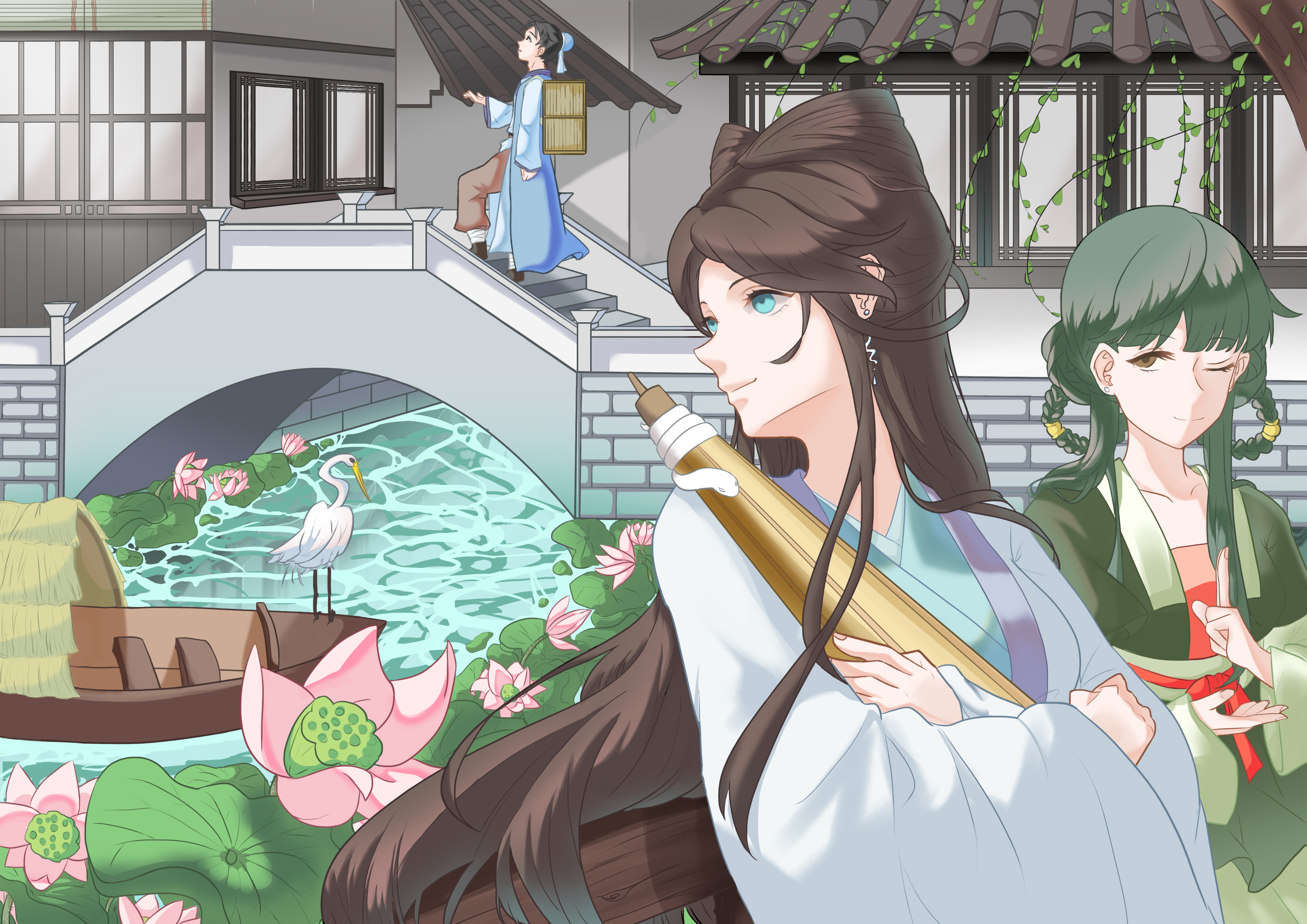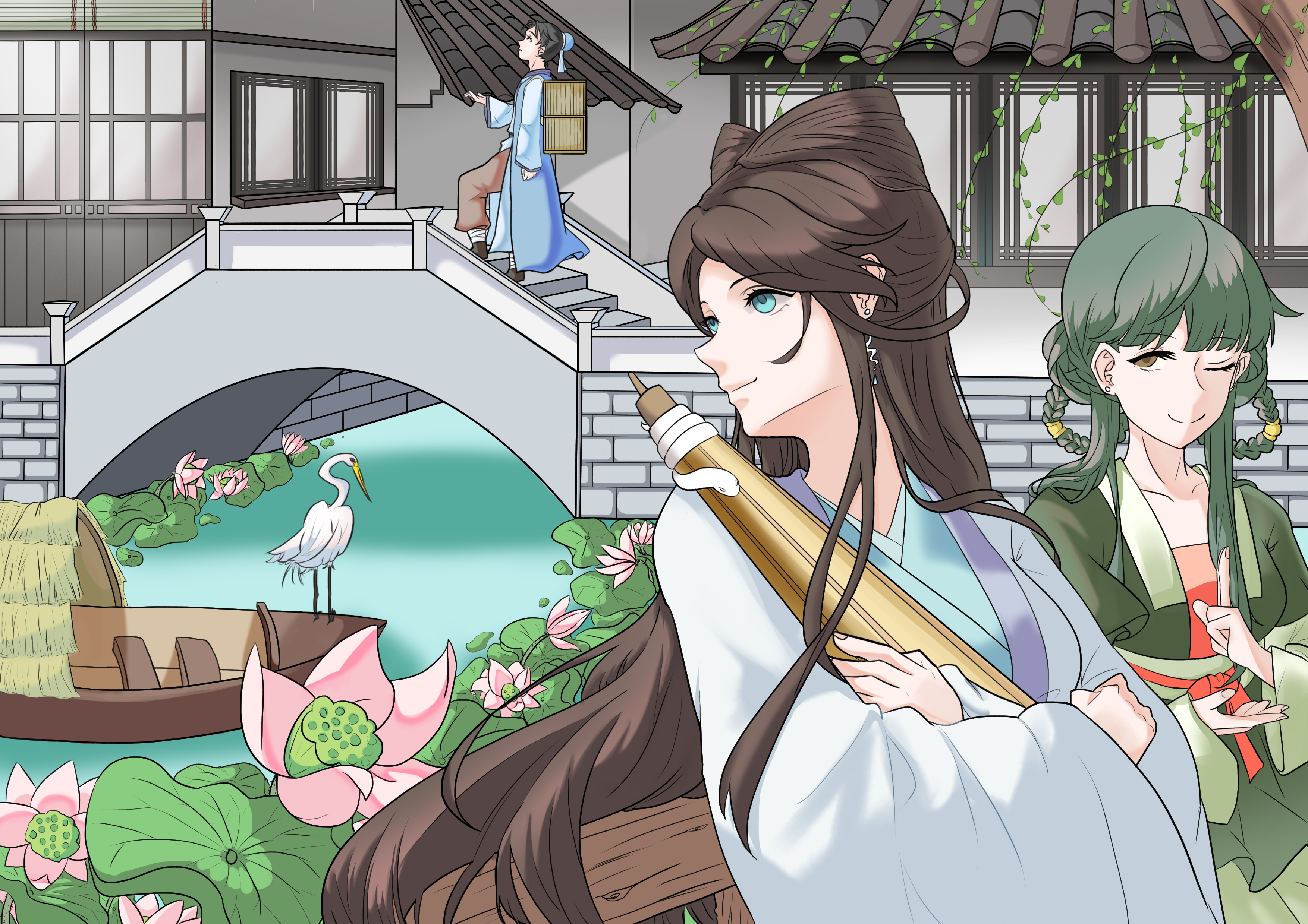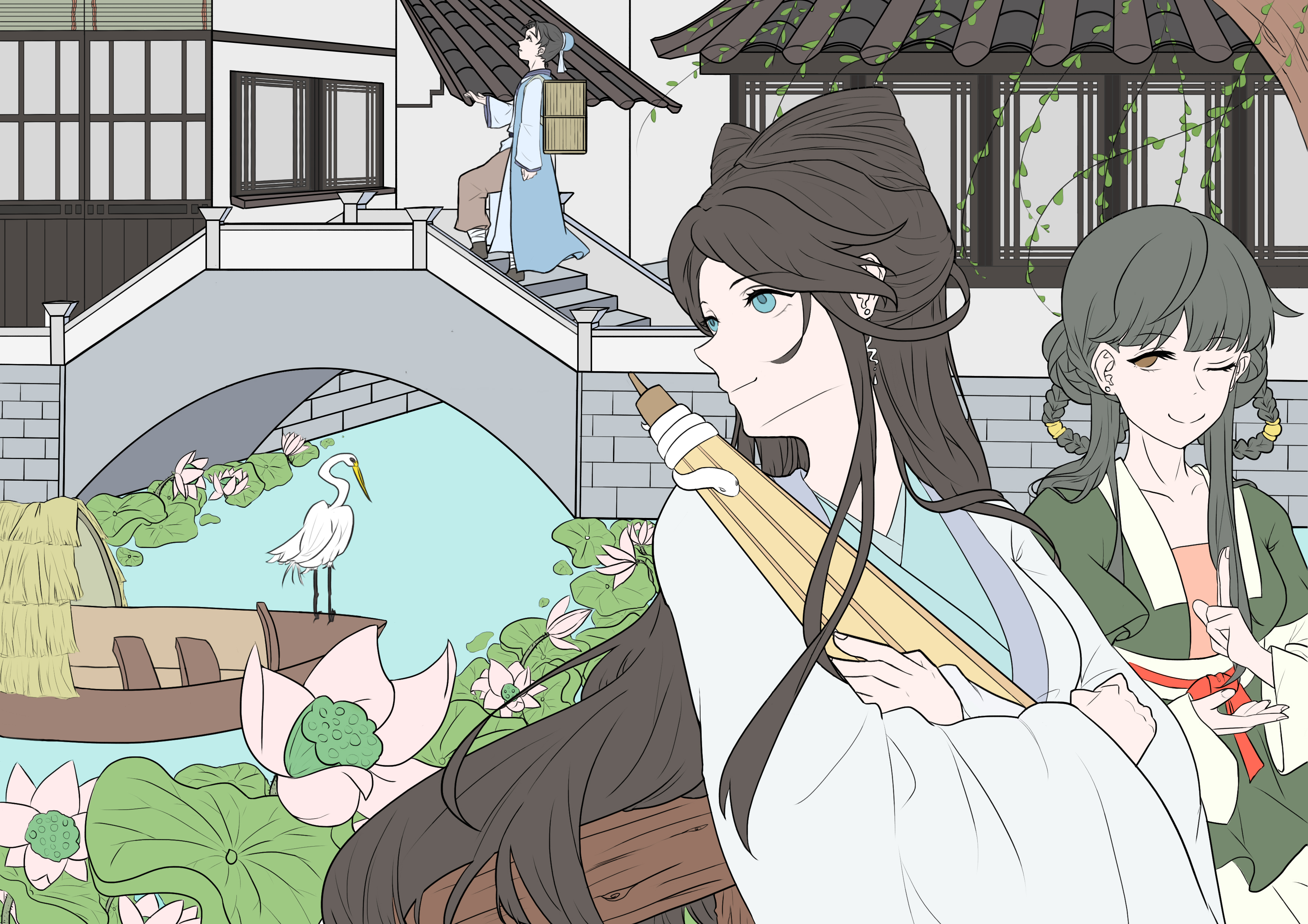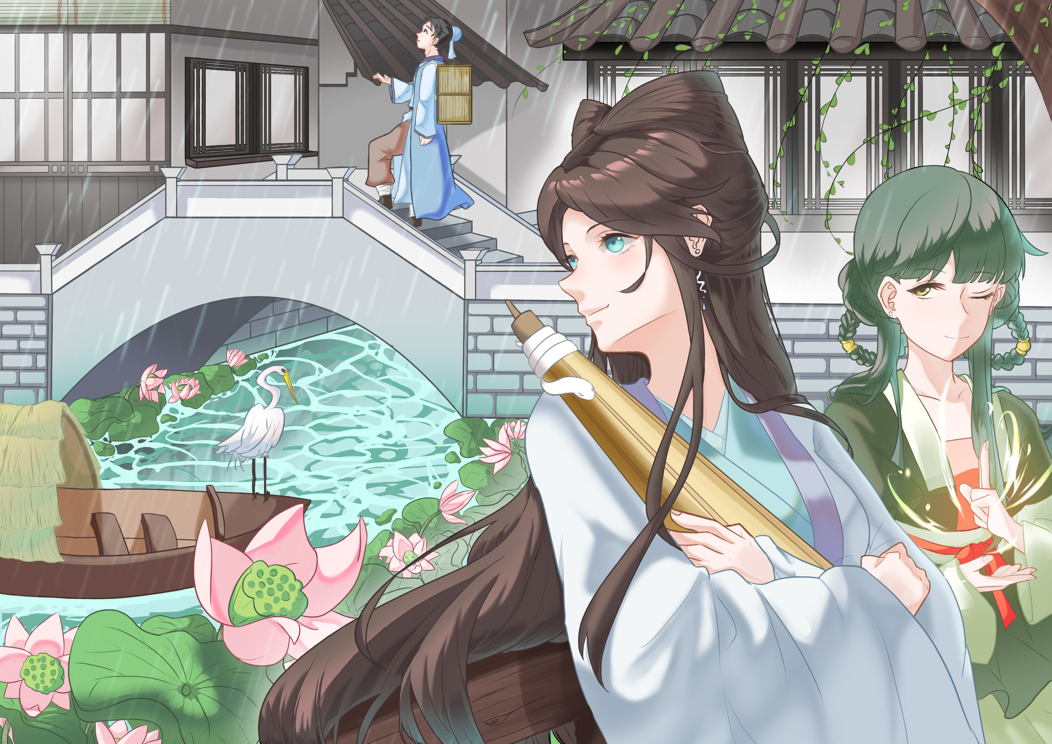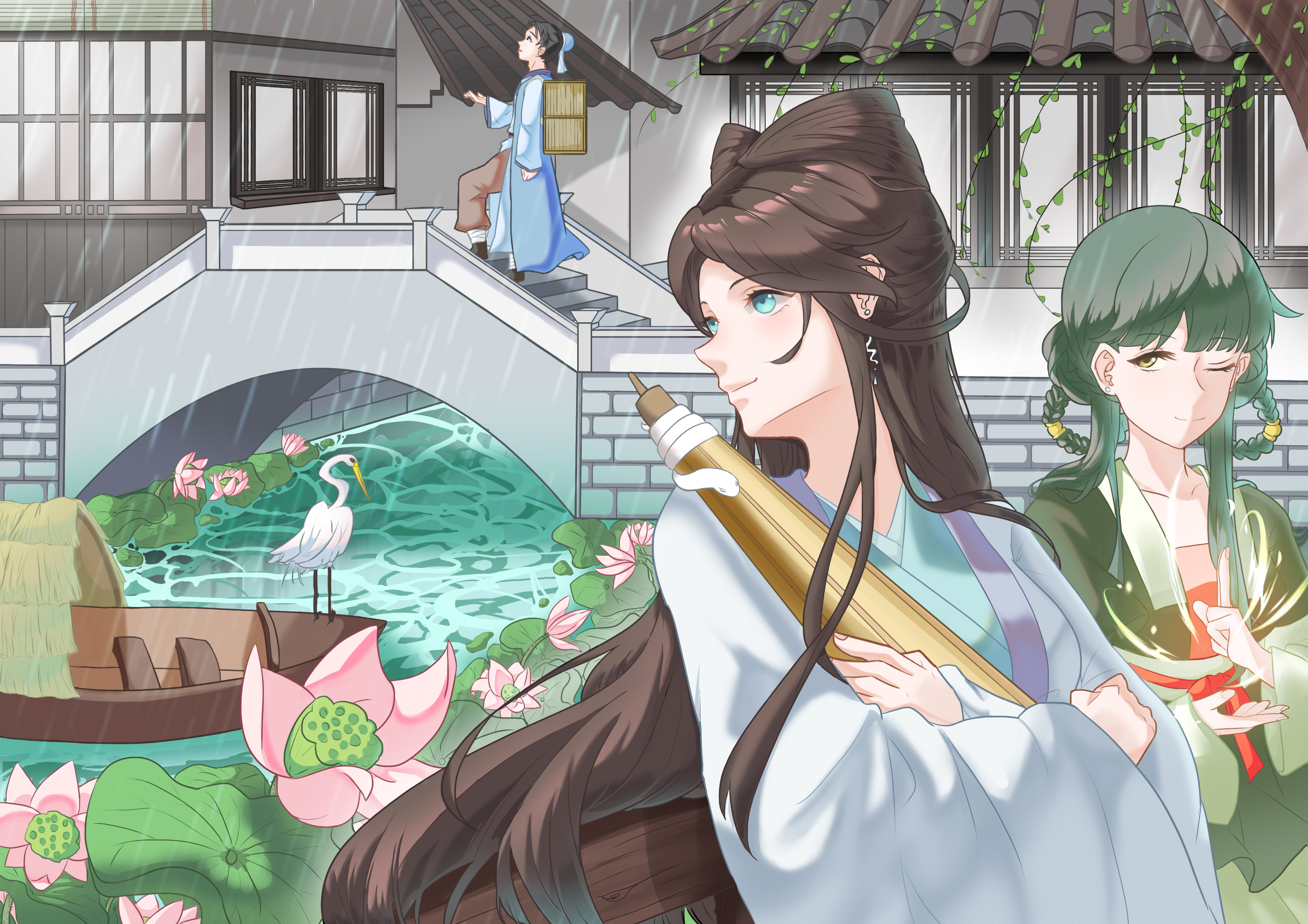 作品讲的是白素贞和许仙相遇之前,小青施法让天下雨,引出之后许仙和白素贞借伞相识。