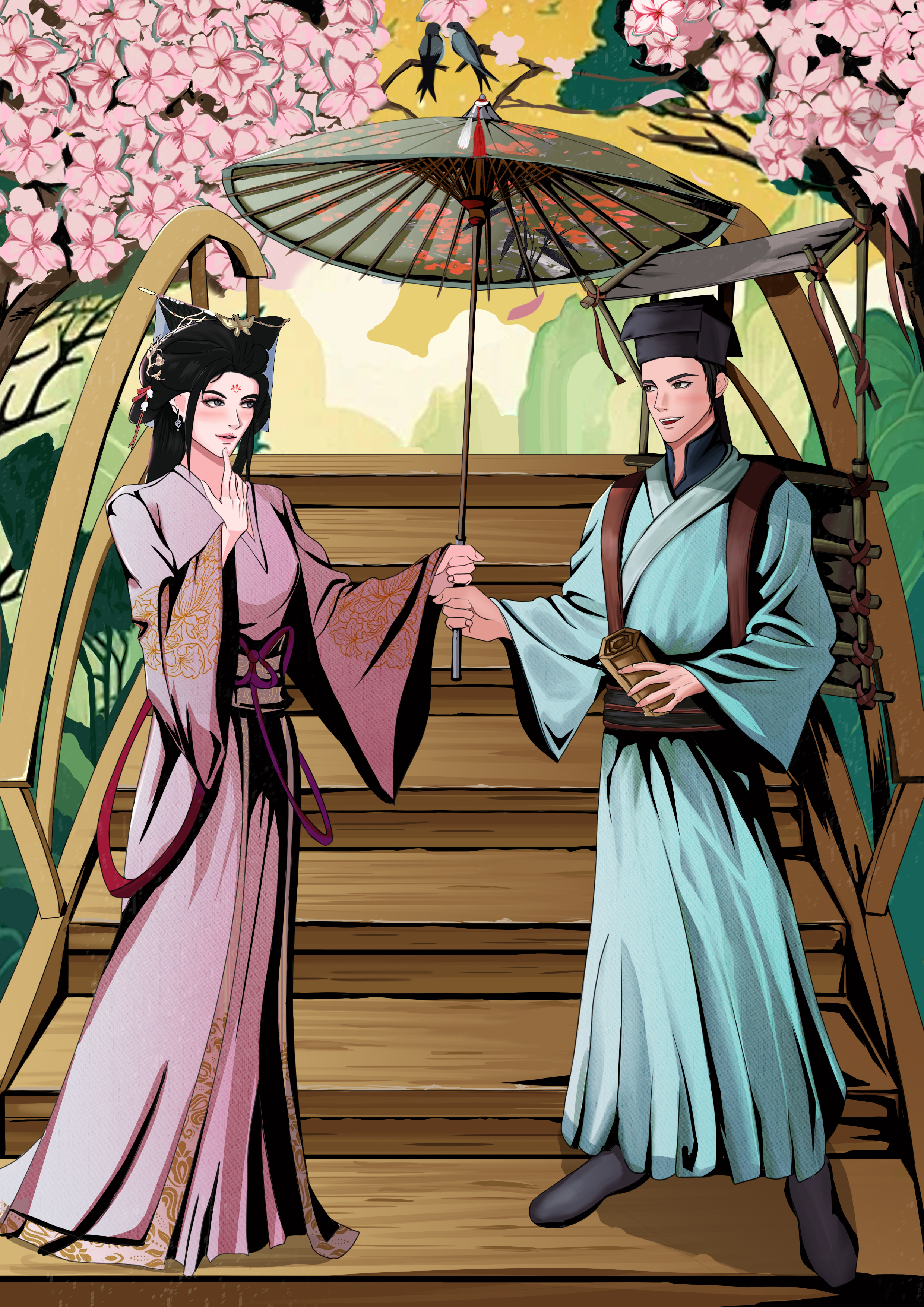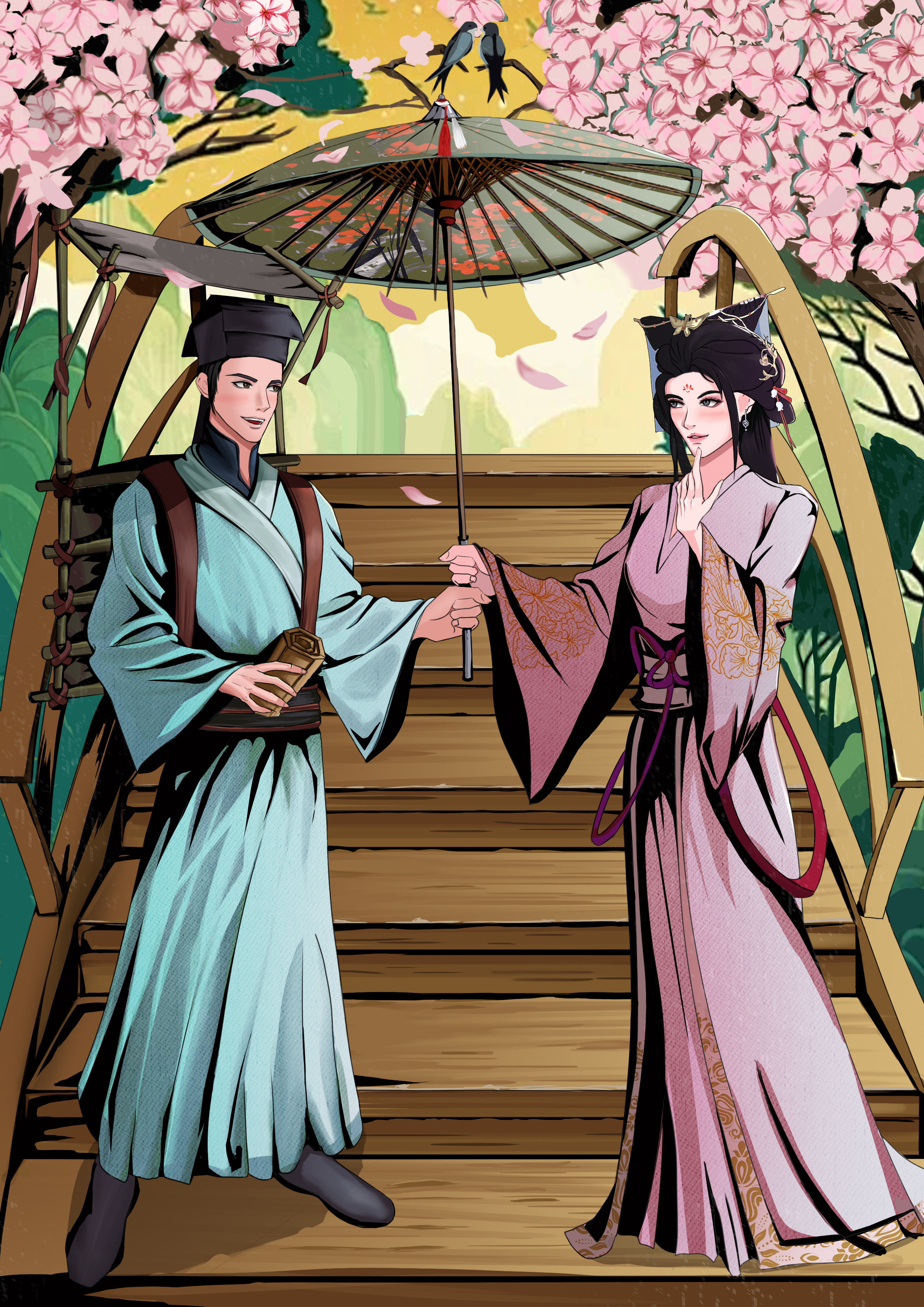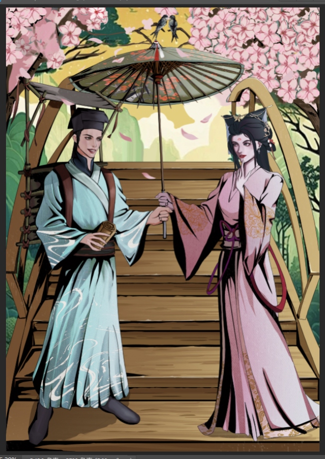 因善而结缘的白娘子和许仙,程启上天的安排于西湖断桥美丽相遇,白娘子善解人意端庄贤惠,许仙温文尔雅悬壶济世,一把伞情定一生,片片桃花下开启了一段感天动地的爱情佳话……