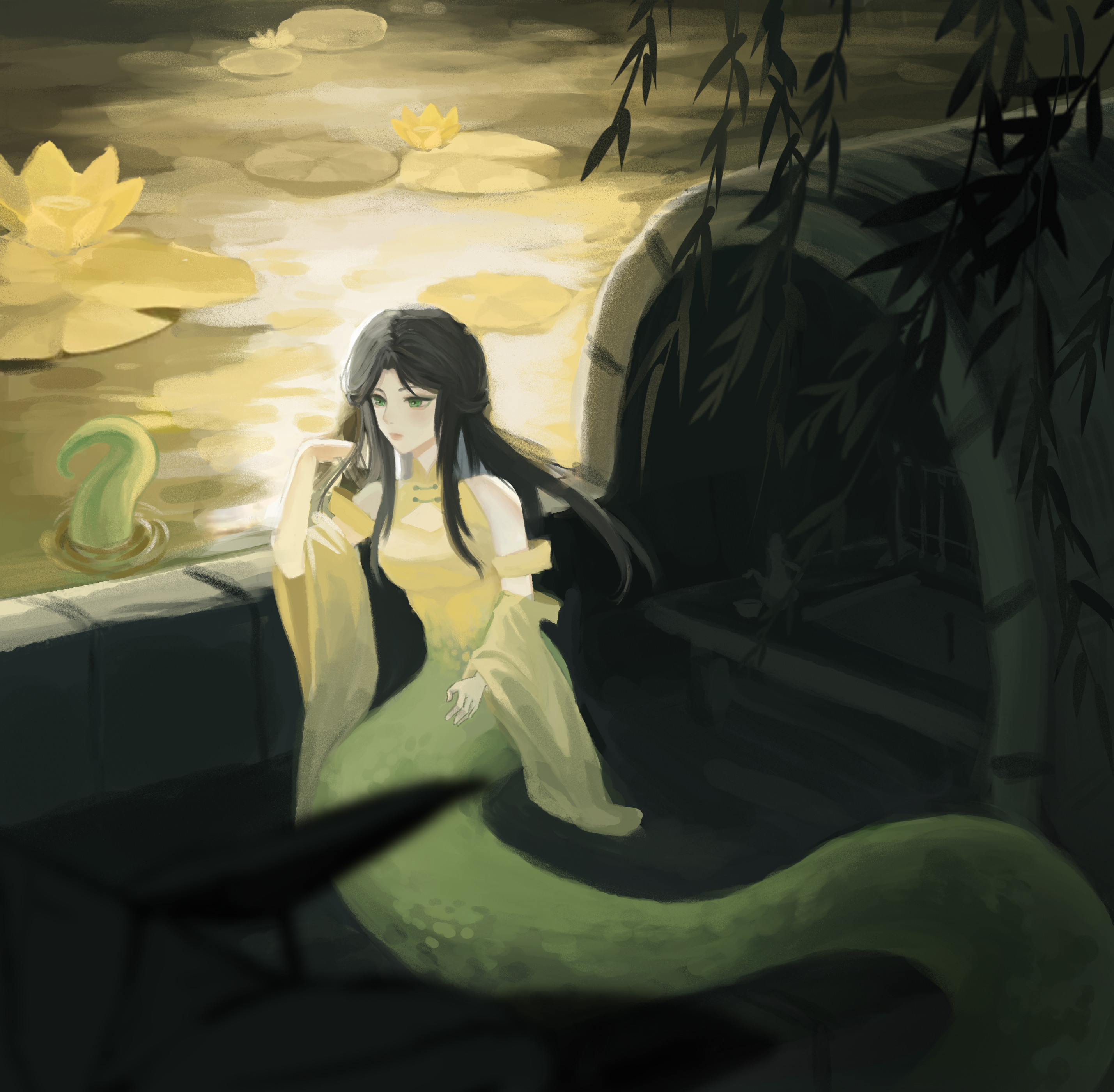 傍晚小青在船上想念姐姐白素贞