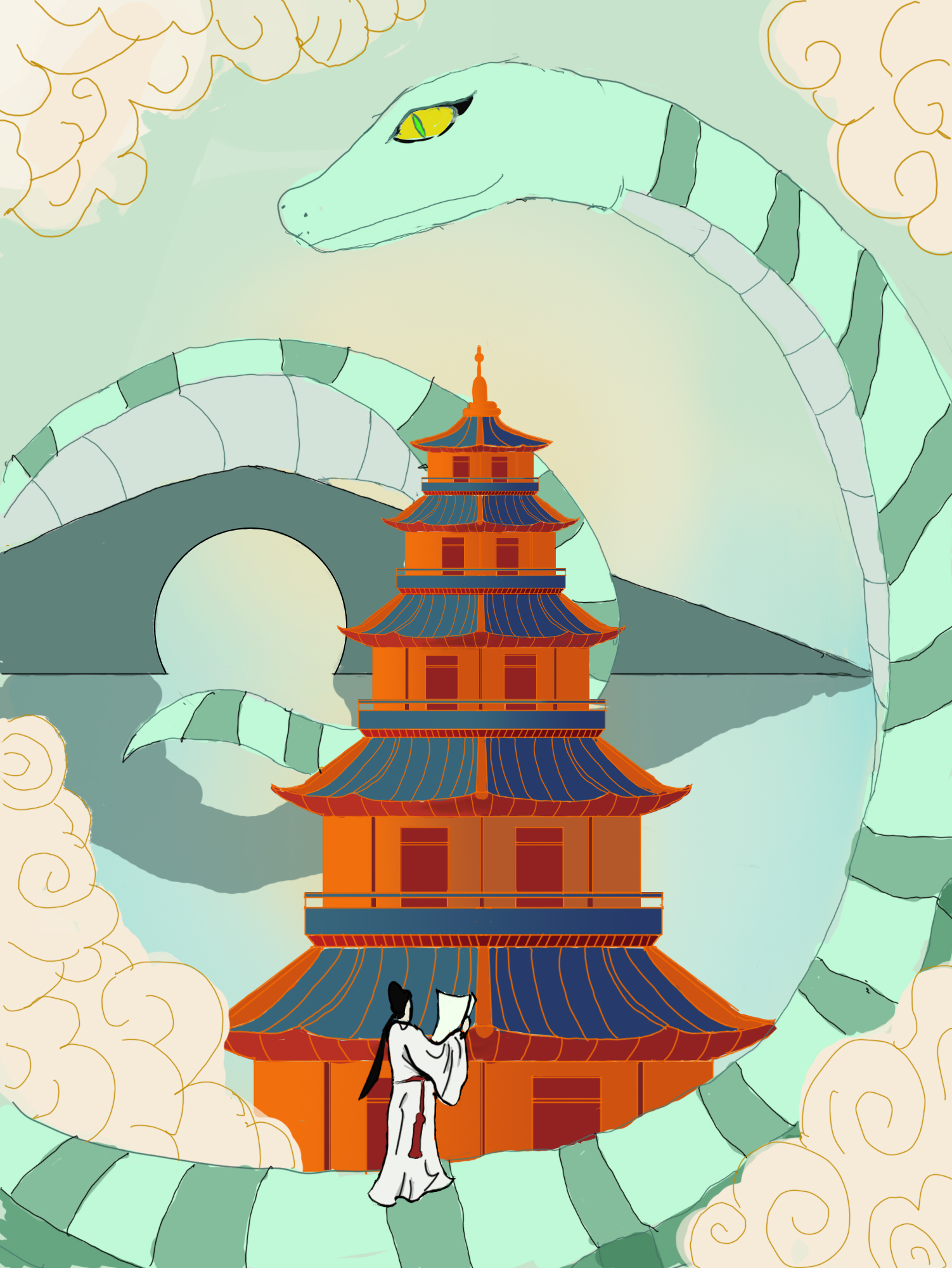 小青在雷峰塔外守护