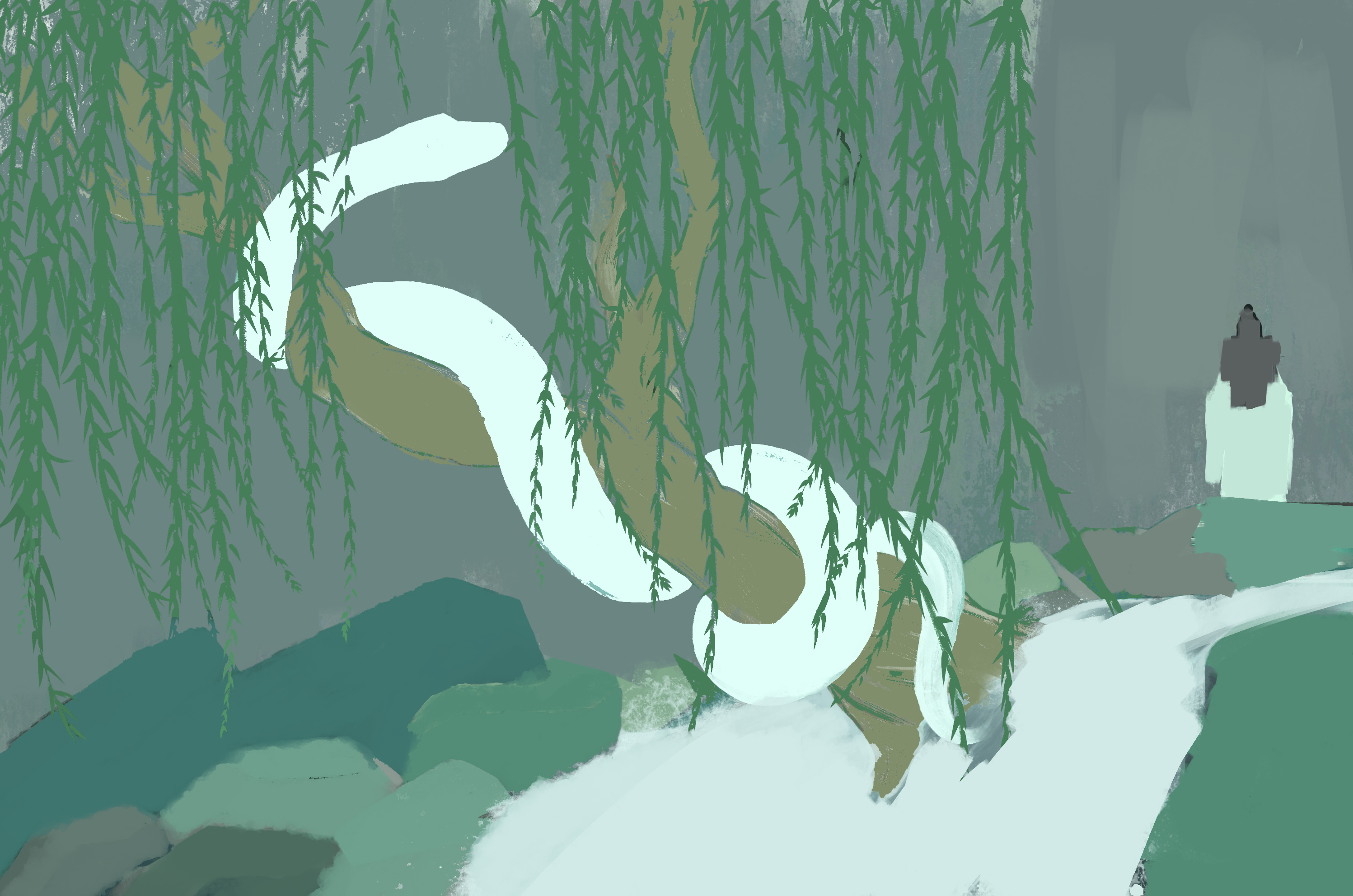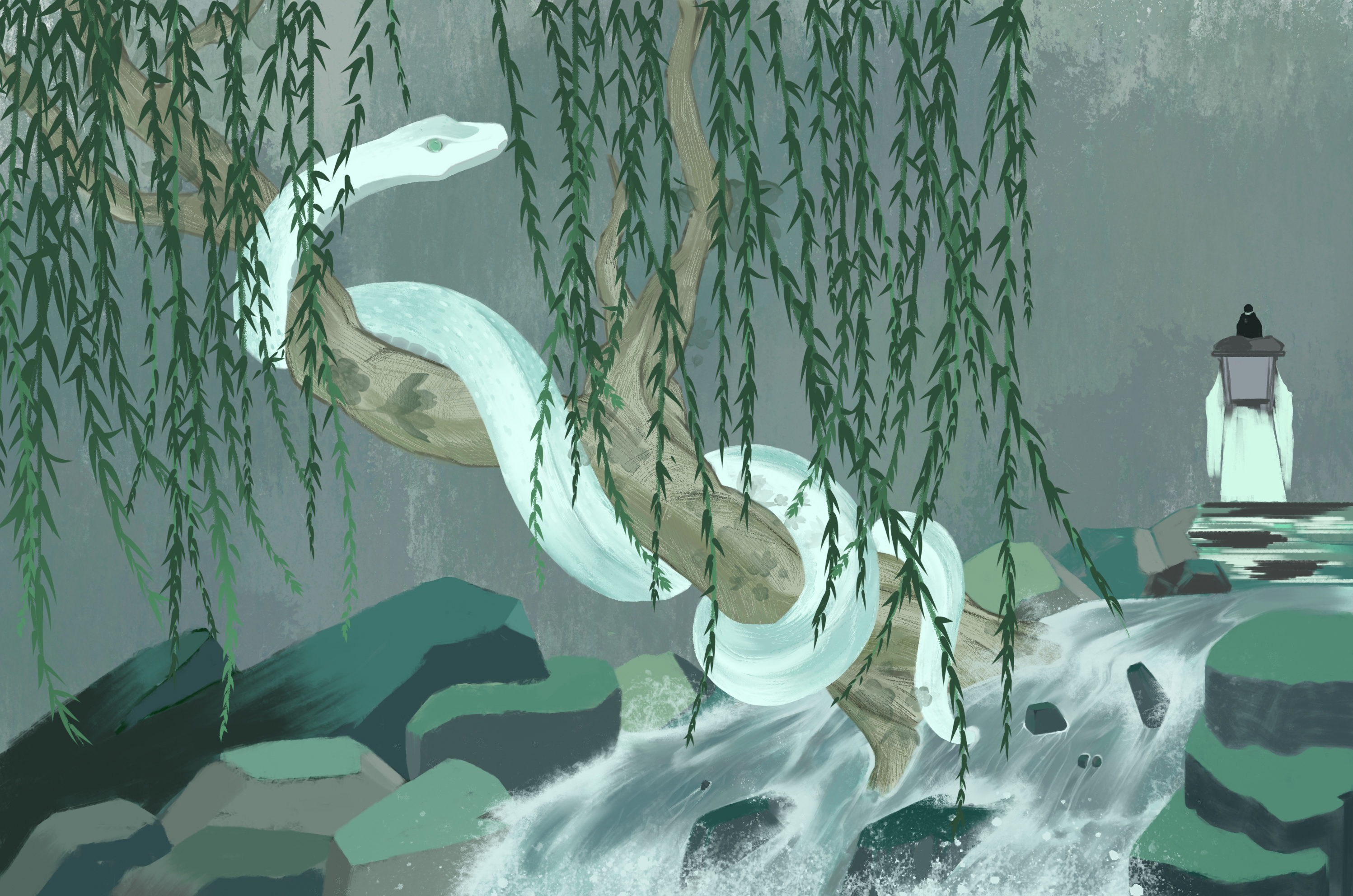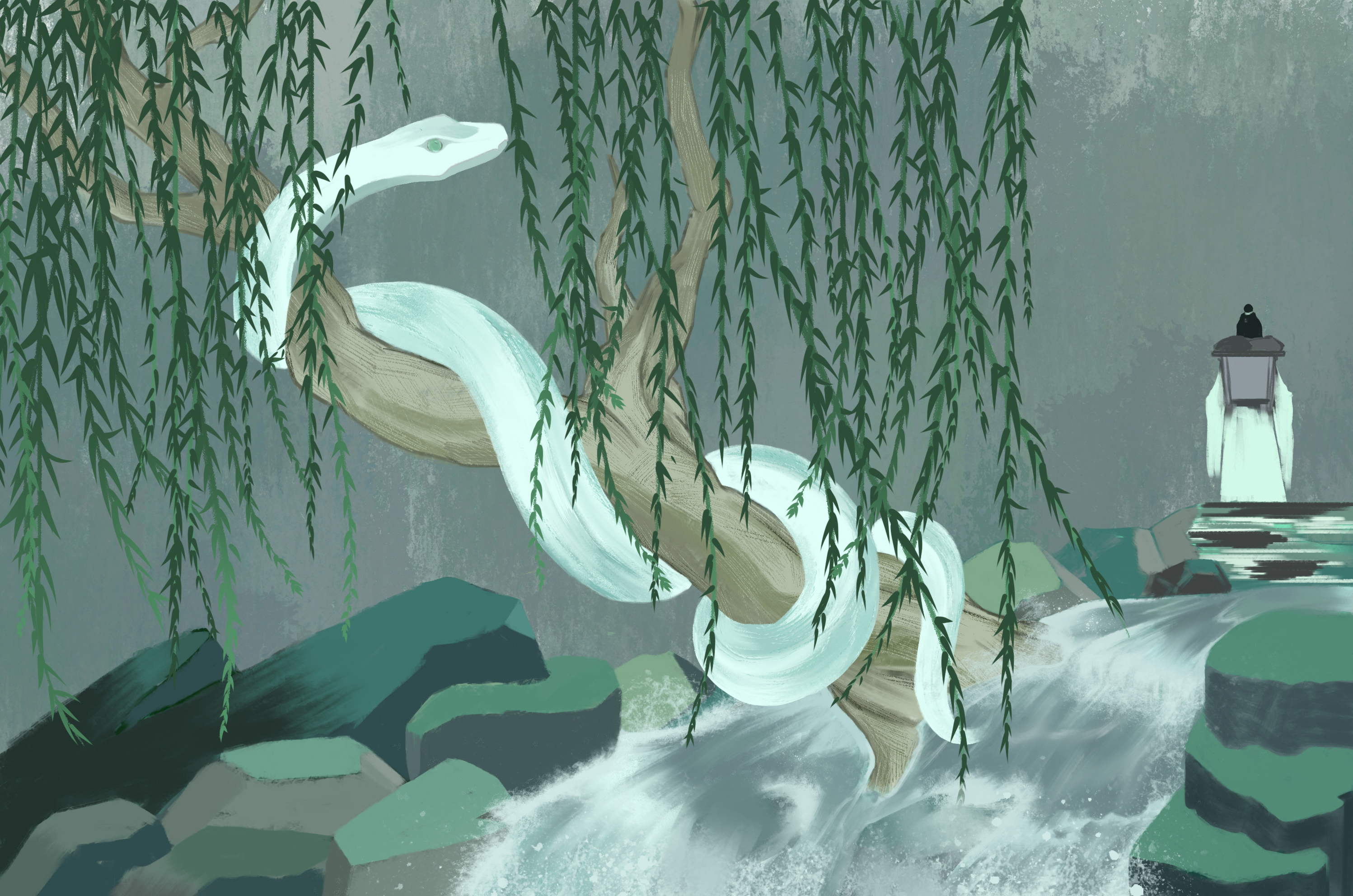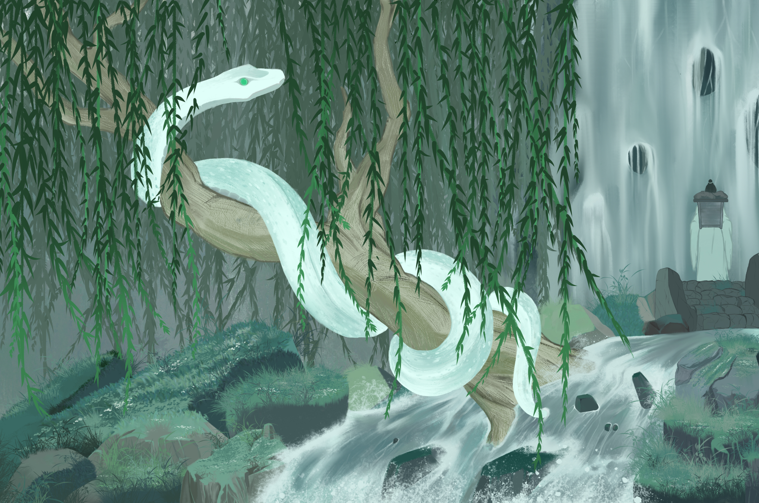 白素贞隐忍着塔里日复一日的煎熬,凭借强大的意志,终于挣脱了塔的束缚,但也使得她愈发虚弱,她想去寻找许仙,但每想到他的辜负又黯然流下眼泪,仿佛有个声音再告诉她“他不值得”。于是白素贞毅然决定归隐深山,不在掺合世间俗尘。再漫长的时间长河中,她看尽山川四季,云海飘渺,亦有胆大的妖怪向她告白,她一一果断拒绝,白素贞并非没有继续一段感情的勇气,而是时间消磨了她过去波澜的感情,她时常会想,或许她会孤独一生直到消亡,思此,又茫然的望向远方。殊不知在一个阴翳的下午,似是有什么牵动了她的思绪,她抬起蛇首,在回头的瞬间瞳孔震颤,白素贞不得不承认,时间在不断消磨我的情感,使我忘却许多的事物,我也曾以此为依托或是借口,我任骗不了自己对你的感情。这一世的你,还会辜负我吗?