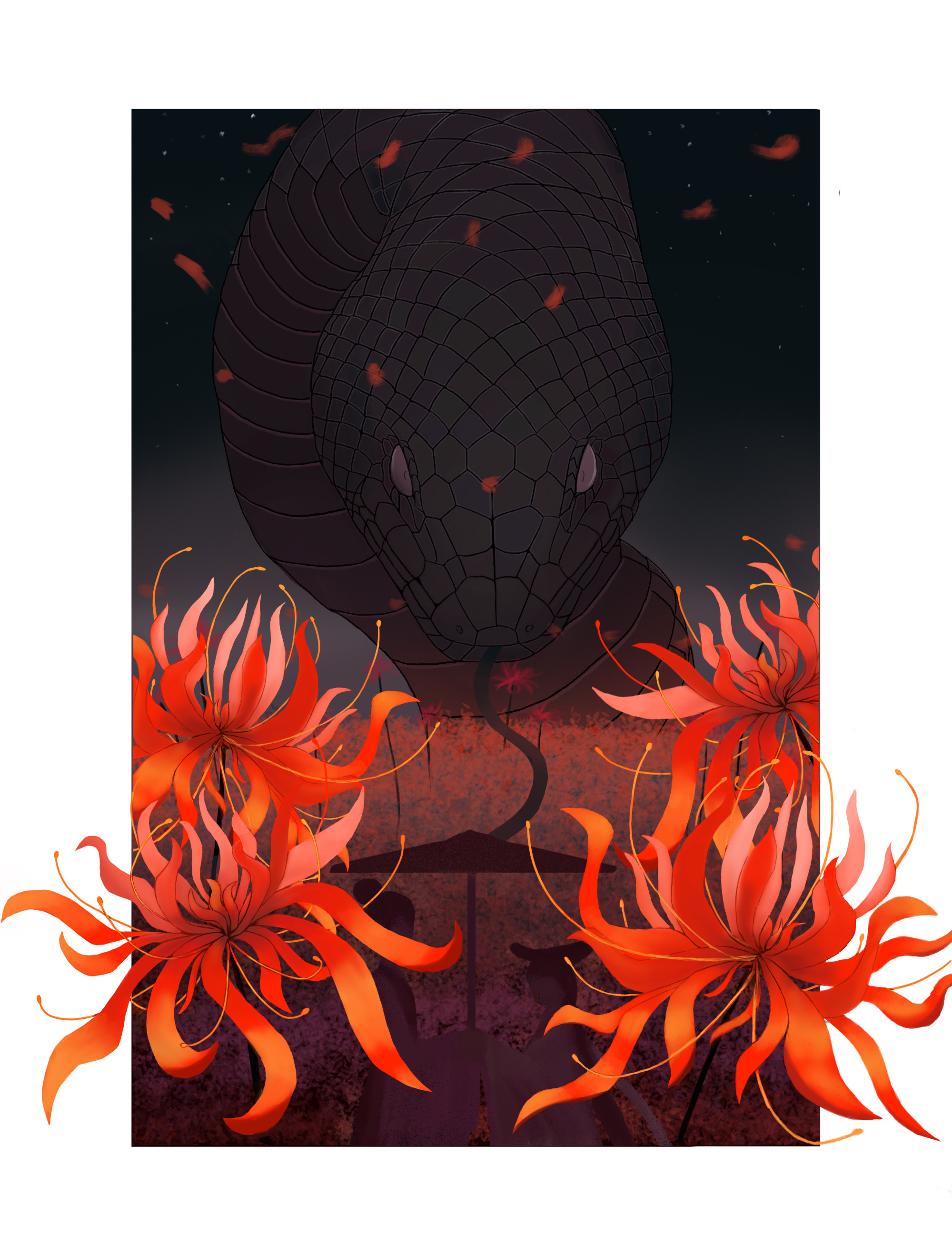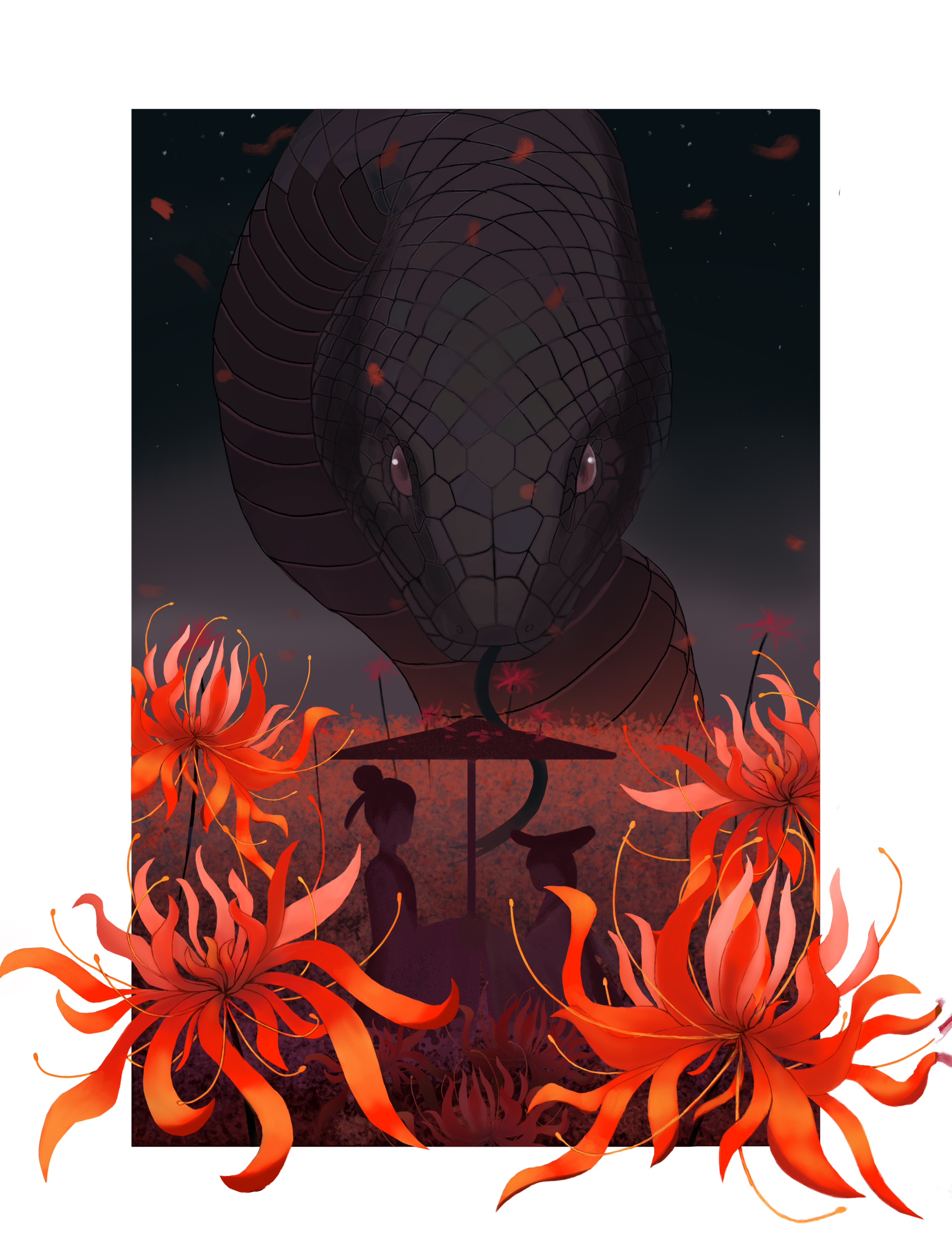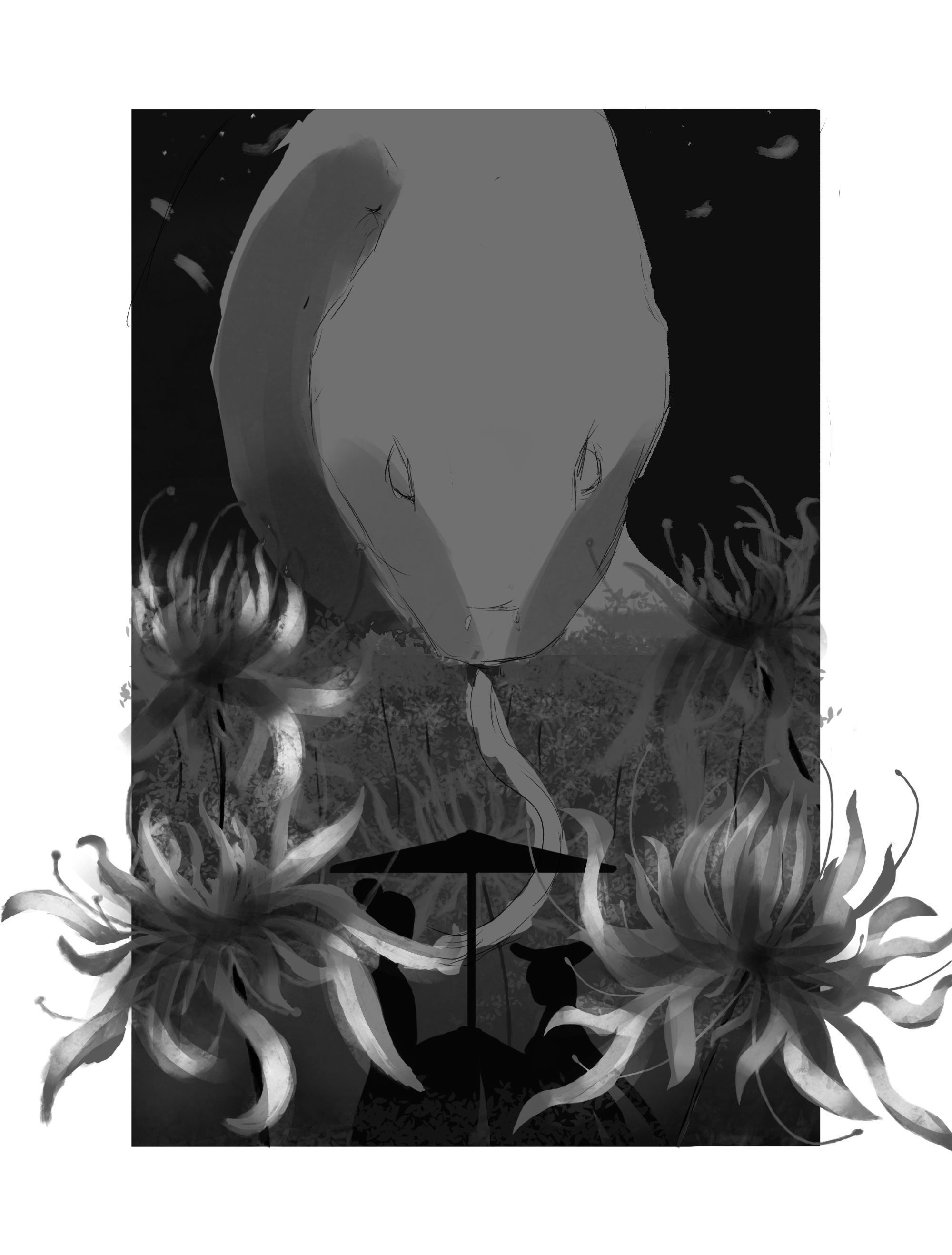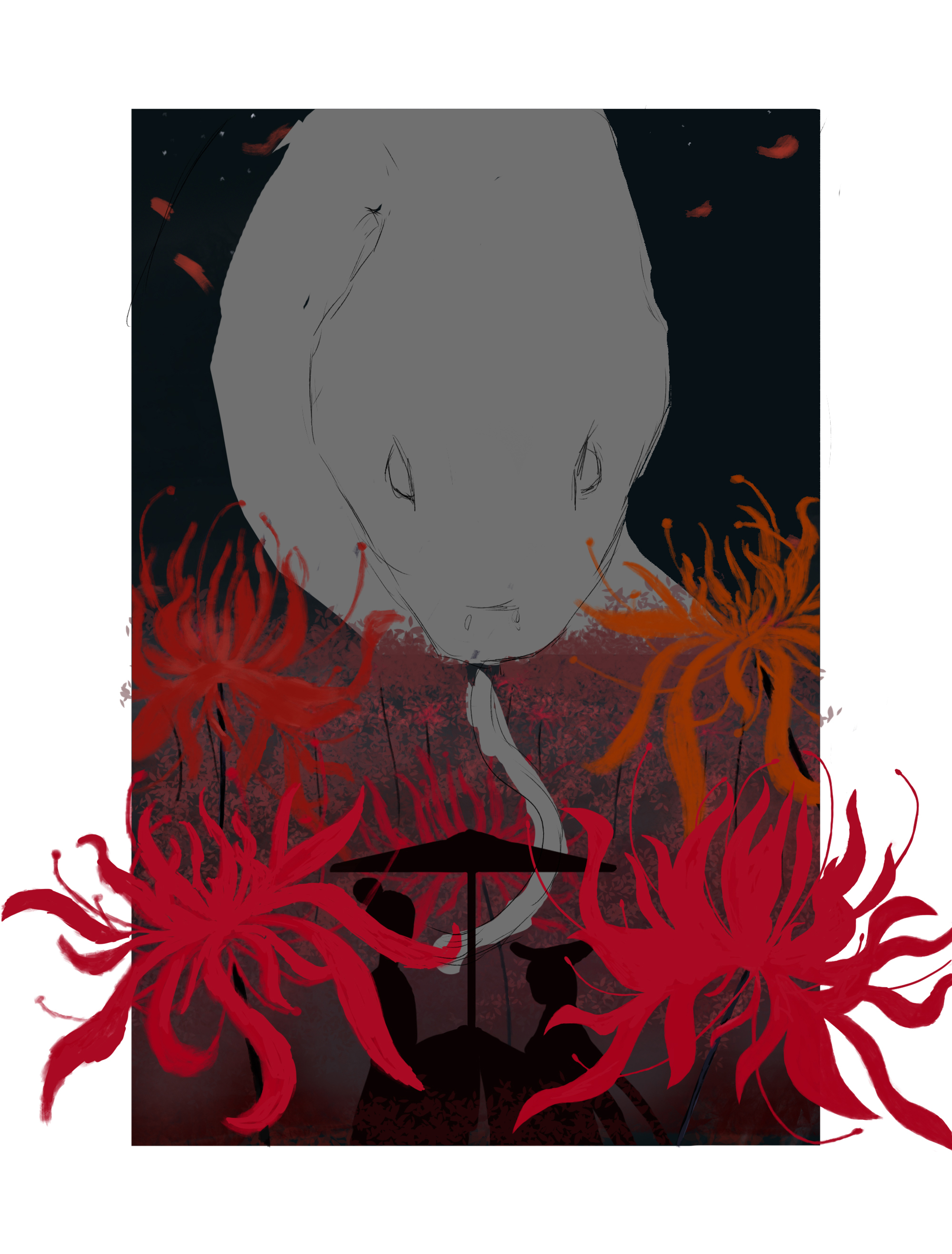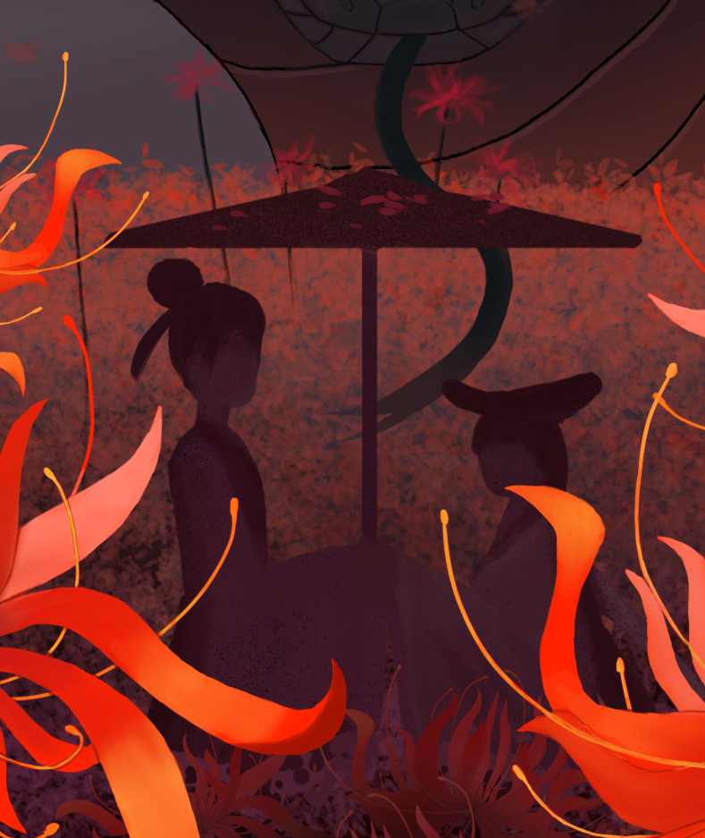 白素贞等了千年后与许仙在花海相遇。而彼岸花诉说着白素贞与许仙相遇时悲伤、幸福的故事。