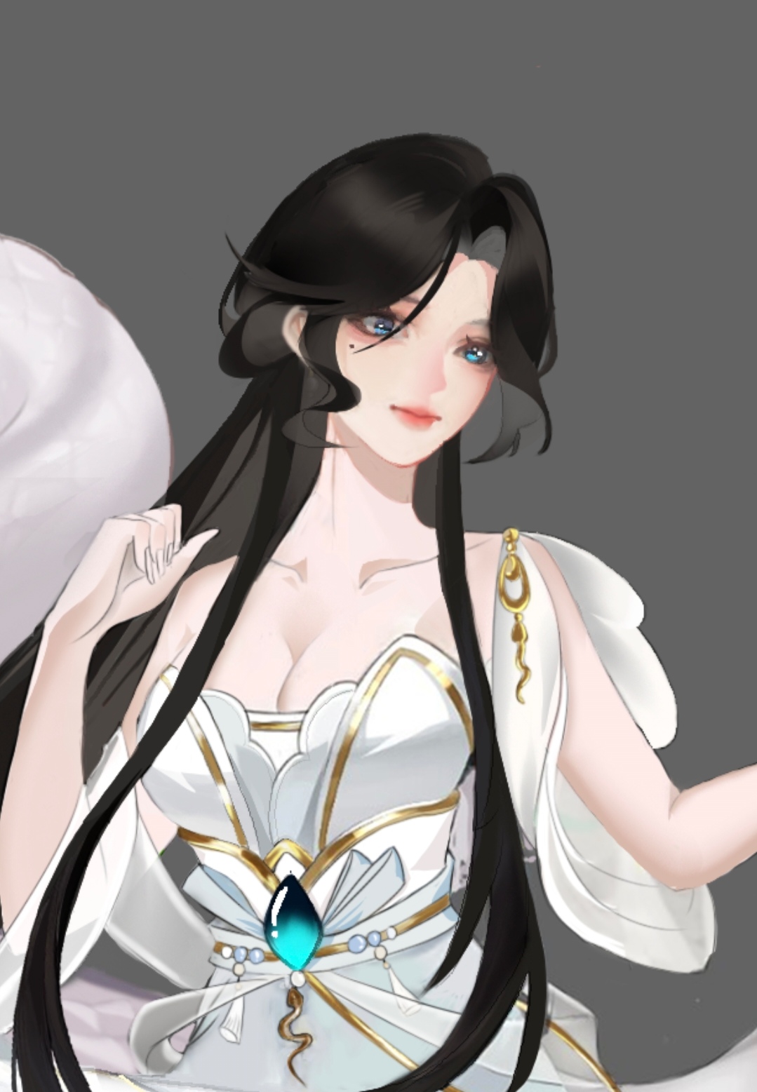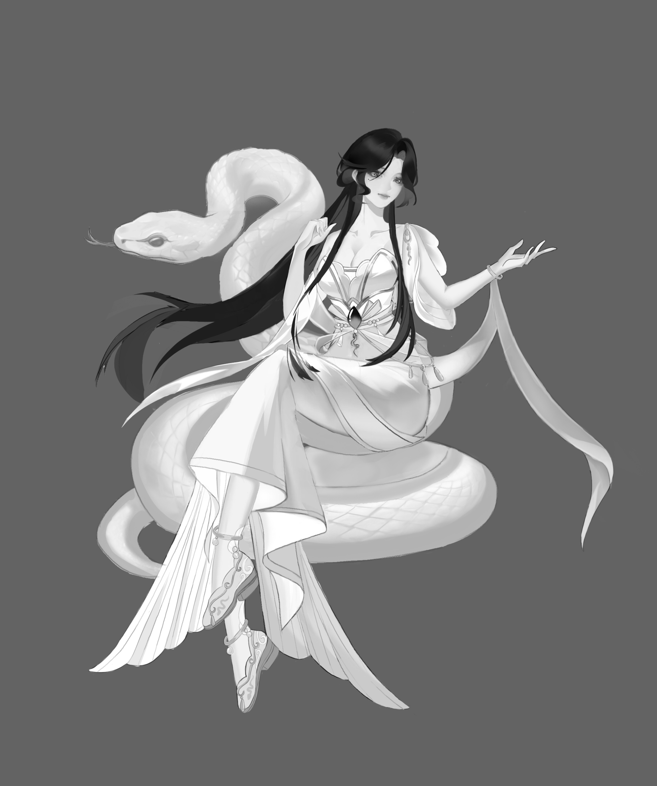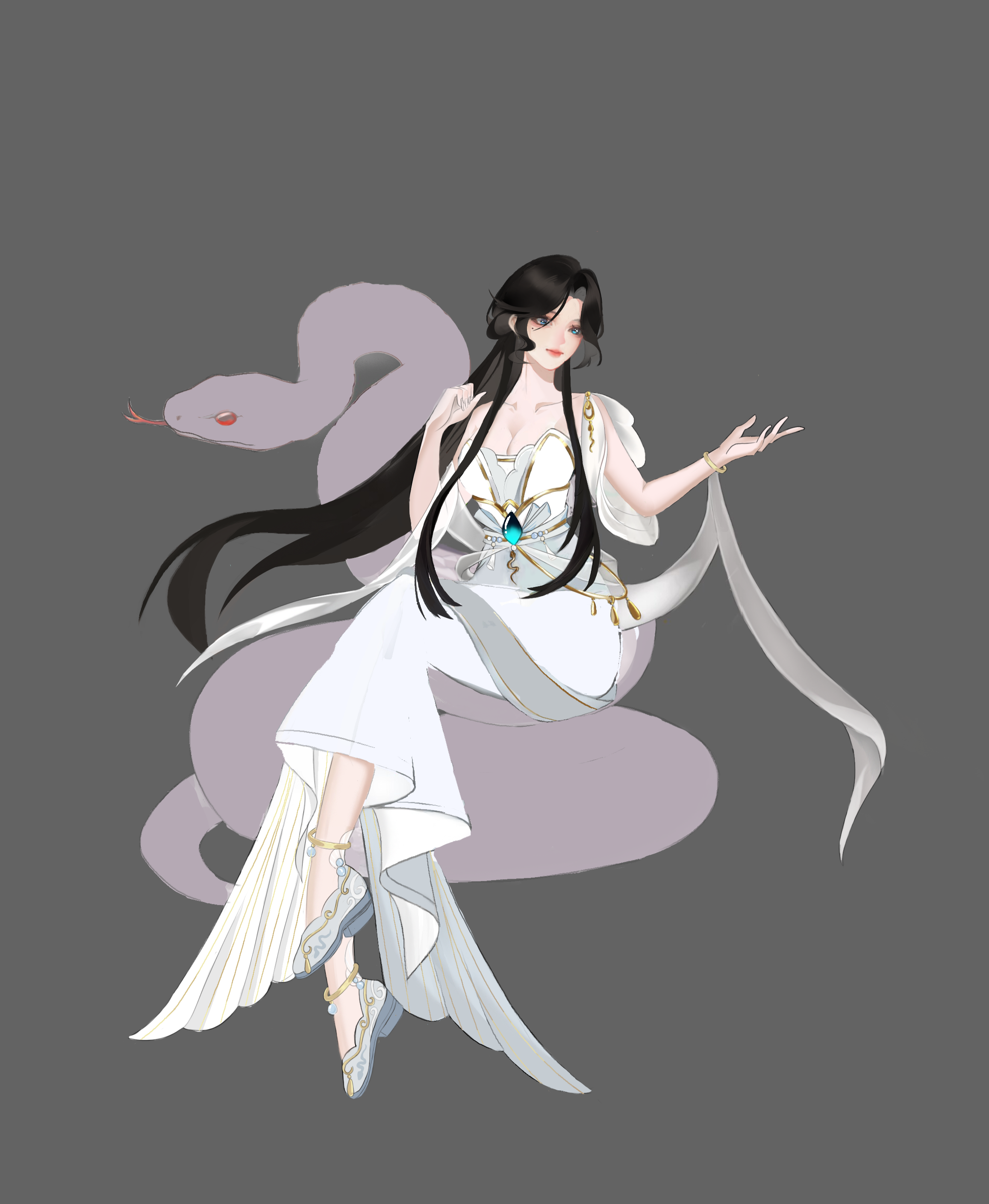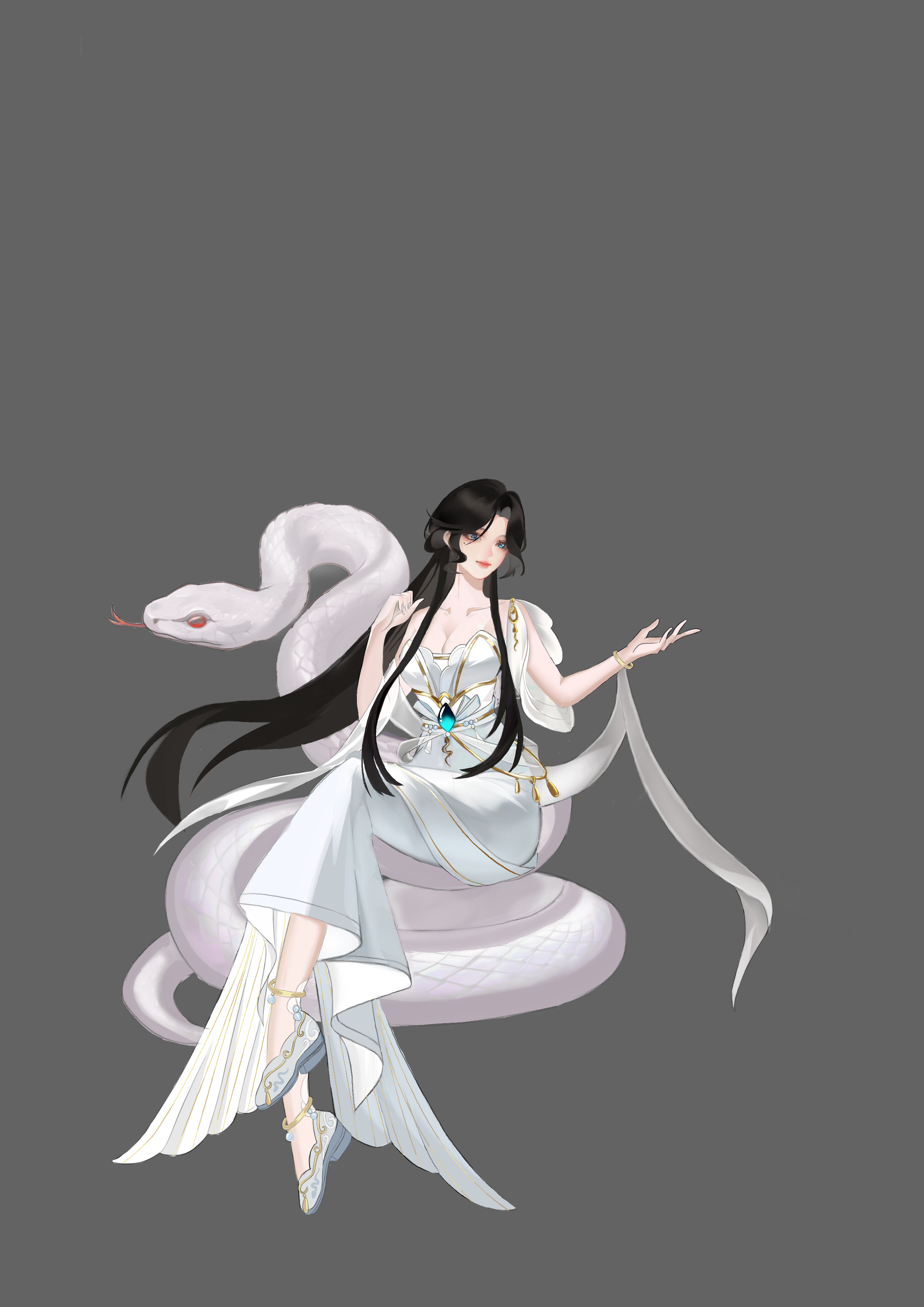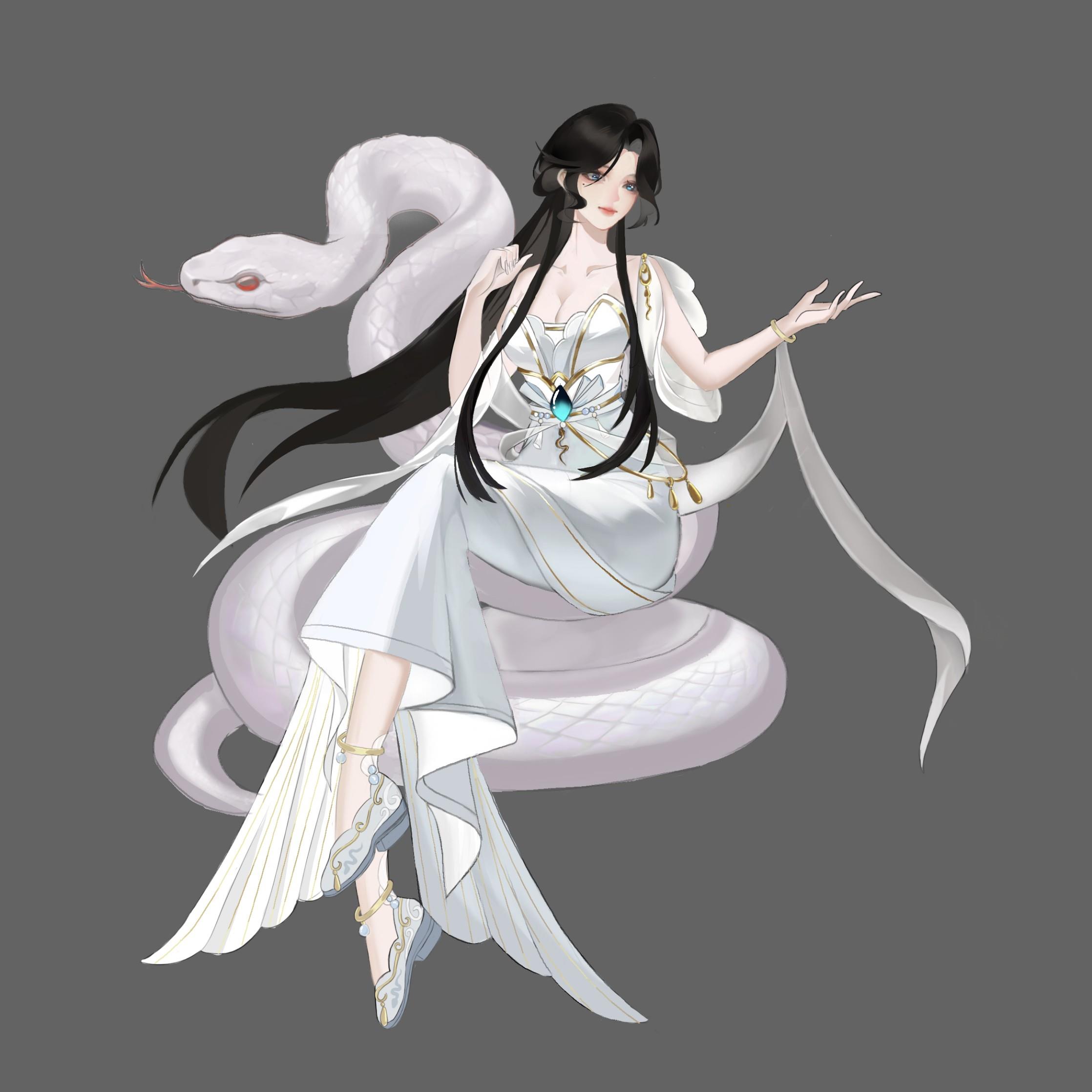 画的是白蛇白素贞,灵感来源于白蛇传,这一段美丽感人的爱情故事,它跨越了人与妖的界限,触动无数人的心弦.....