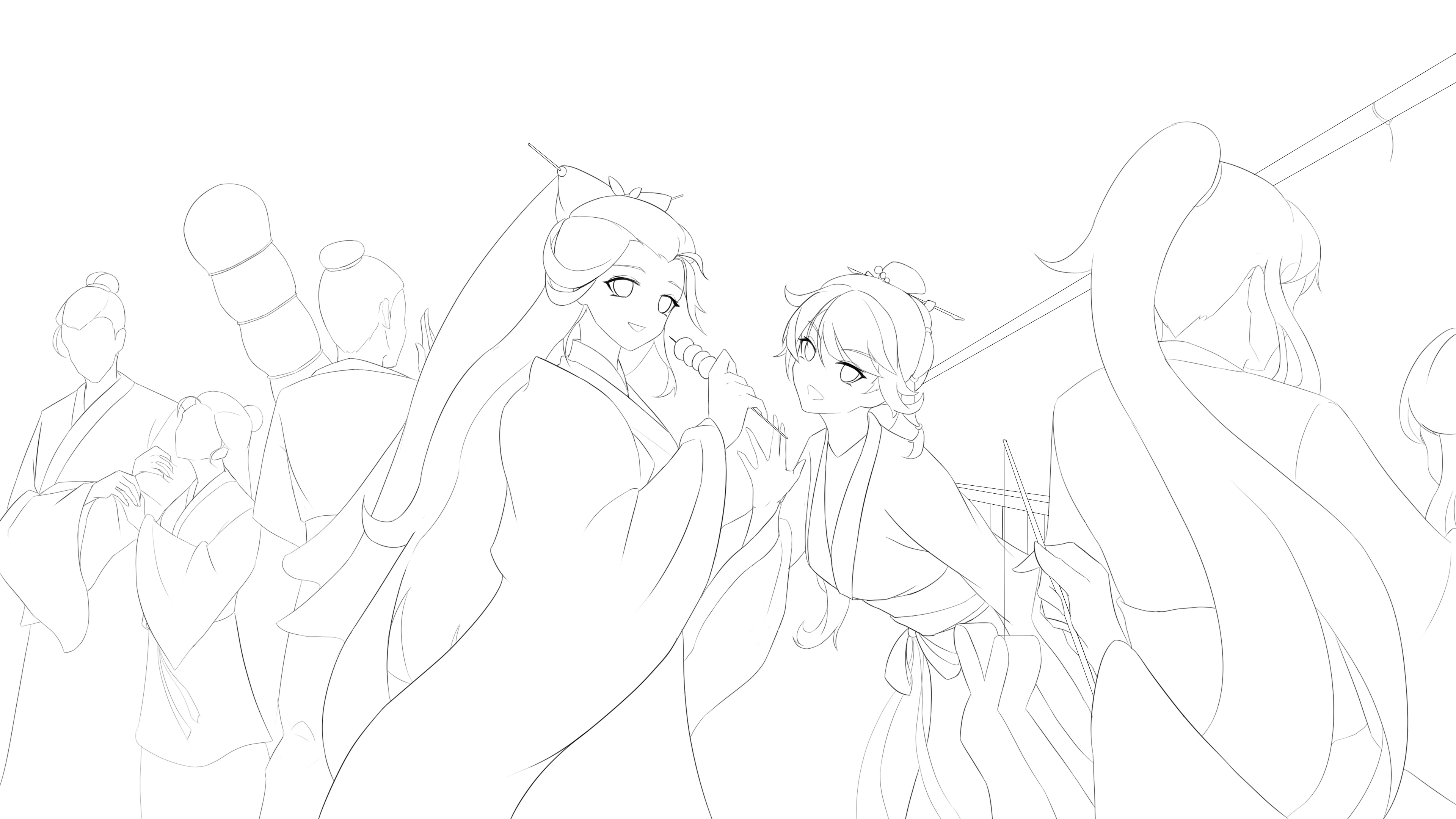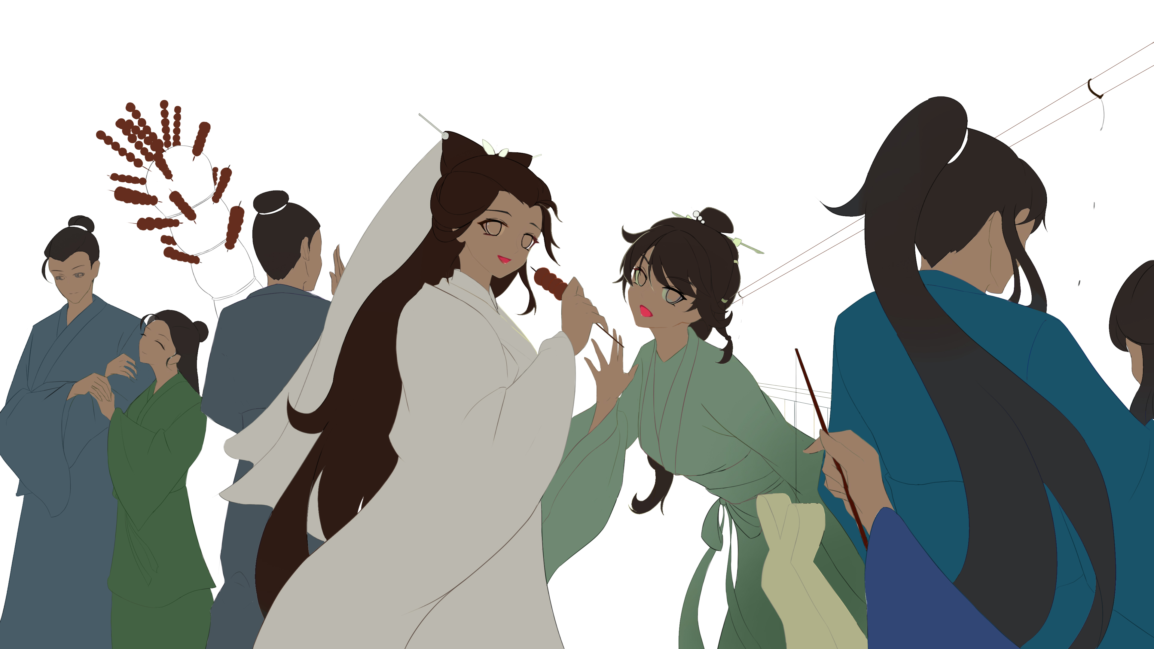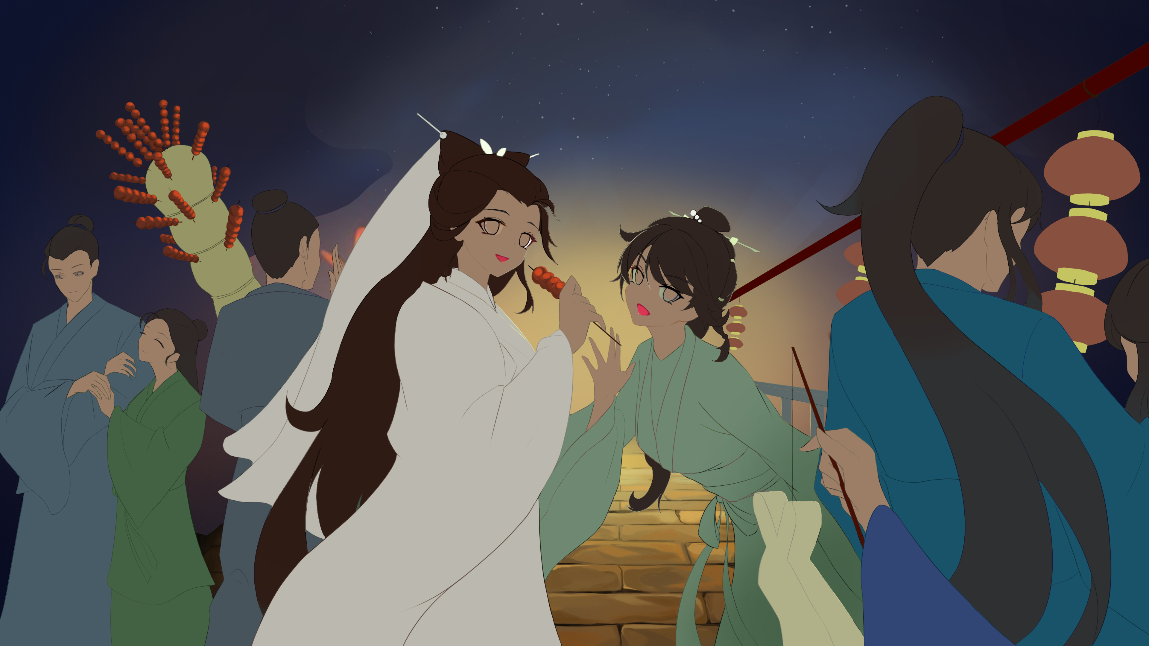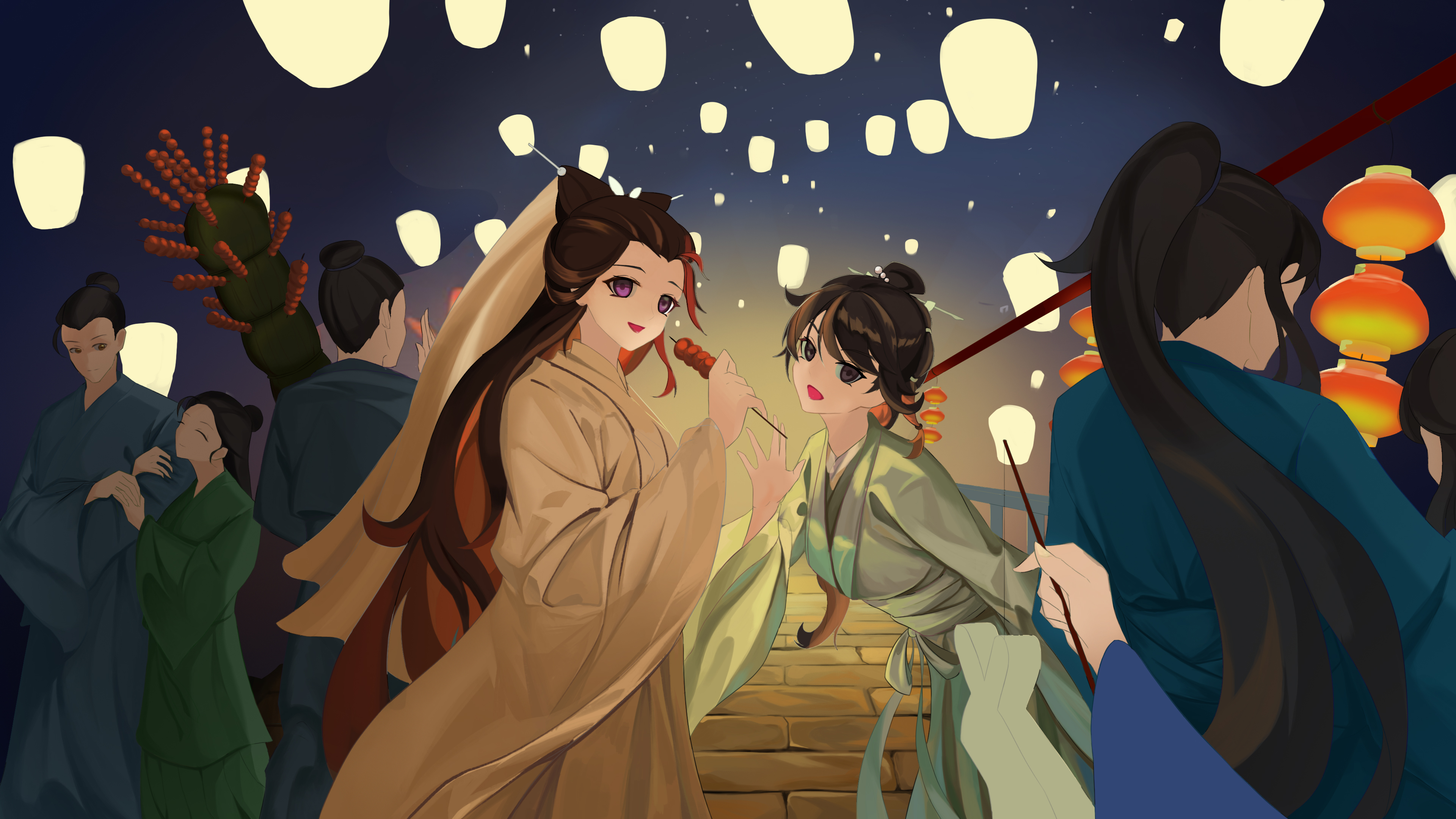 我挑着灯,处处找寻,口中呼喊着她们。忽然耳畔声音传来,回头看到她们向我招手