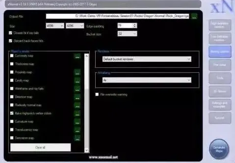 这一步是法线贴图和AO贴图的制作,简单的说这一步是要将高模上的凹凸细节以贴图的形式赋予到低模上,这样低模就能显示出高模的凹凸细节和环境光细节,贴图的烘焙可以用3D软件自带的烘焙工具,也可以用专业的烘焙软件比如xnormal