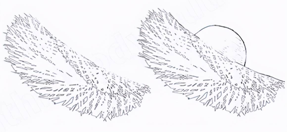 步骤三、走完一圈后,画相反的线。 变成下图。用橡皮工具擦掉圆形。唾沫最好不要太整齐,关掉时要注意。