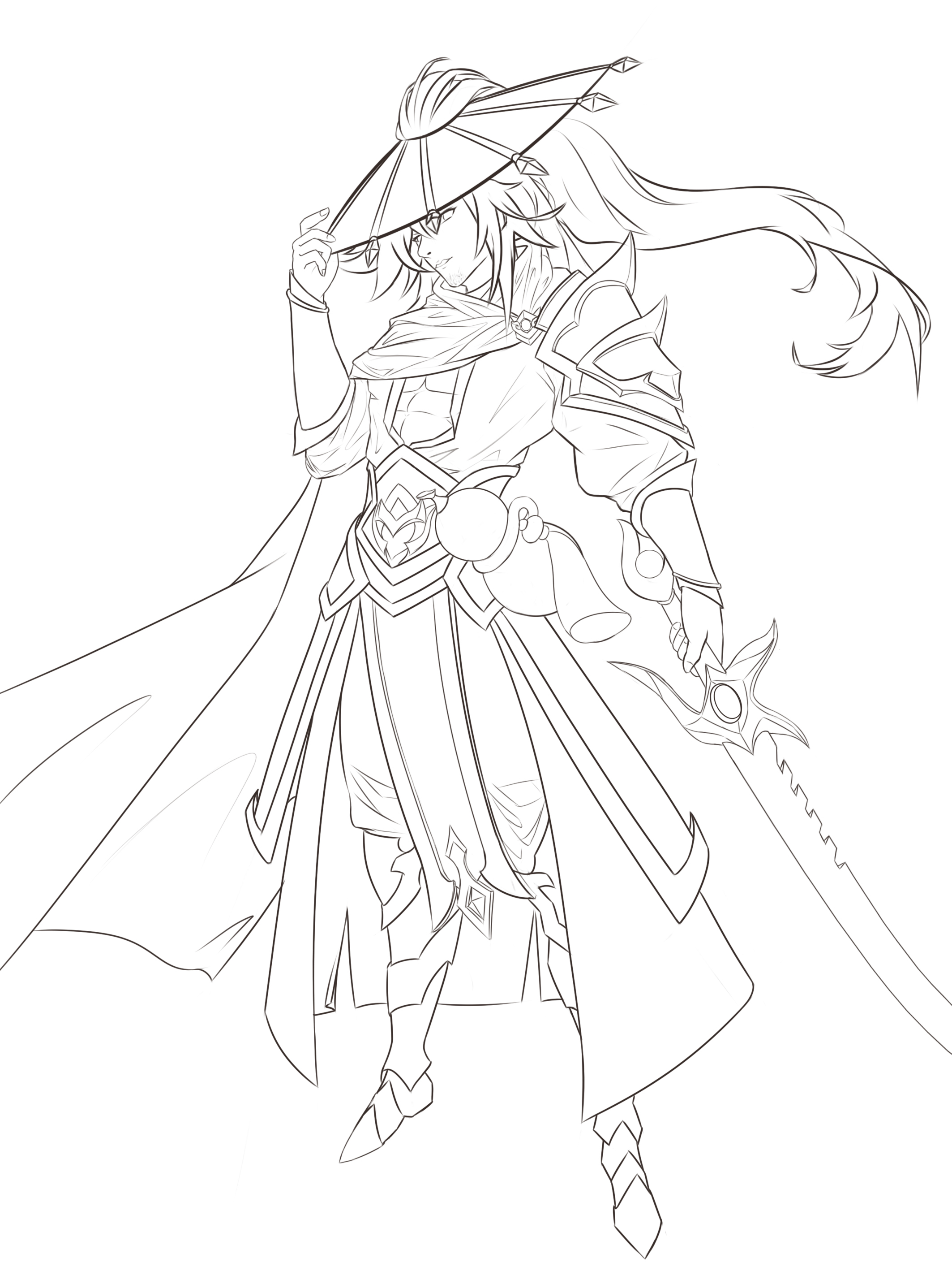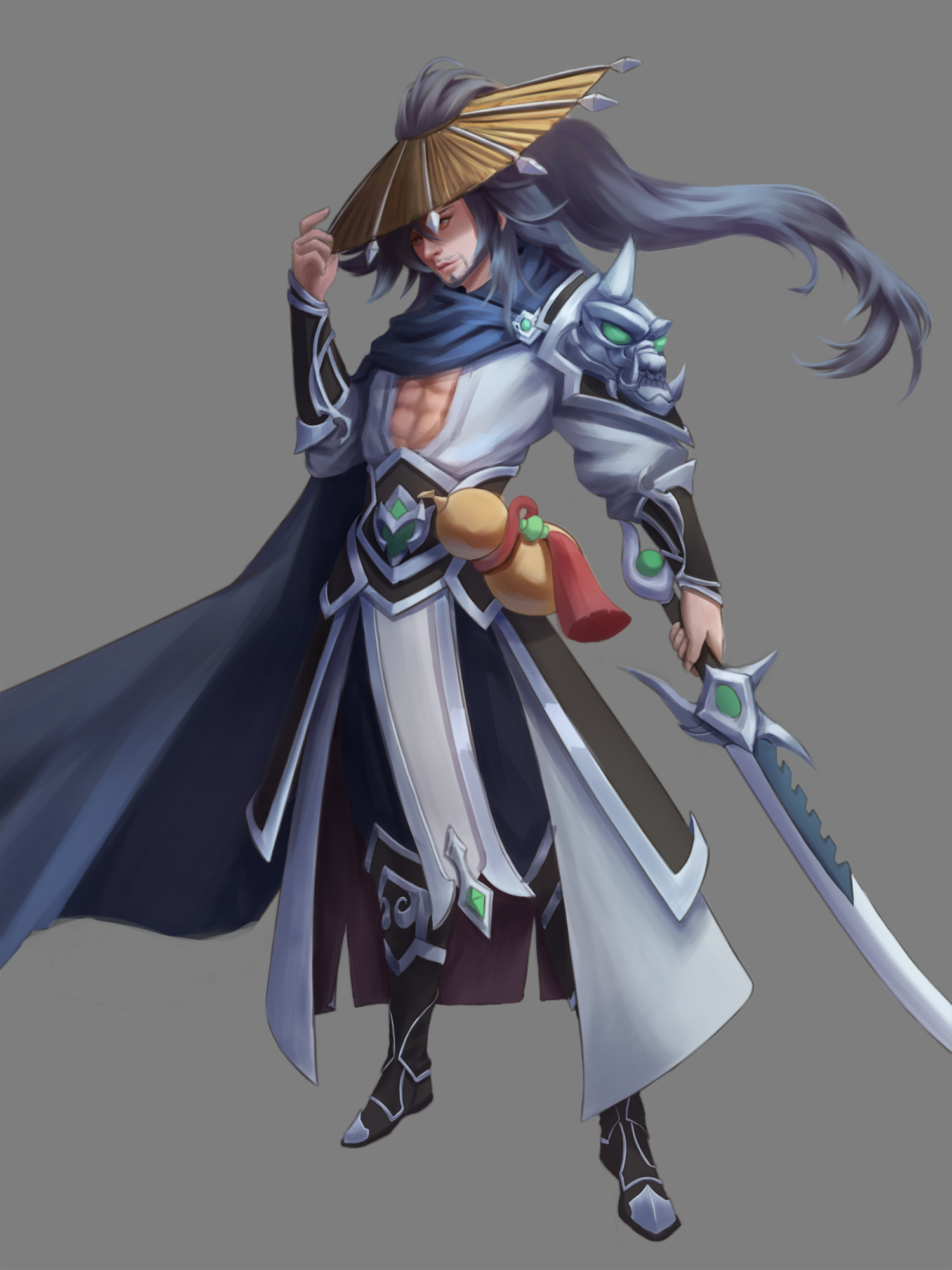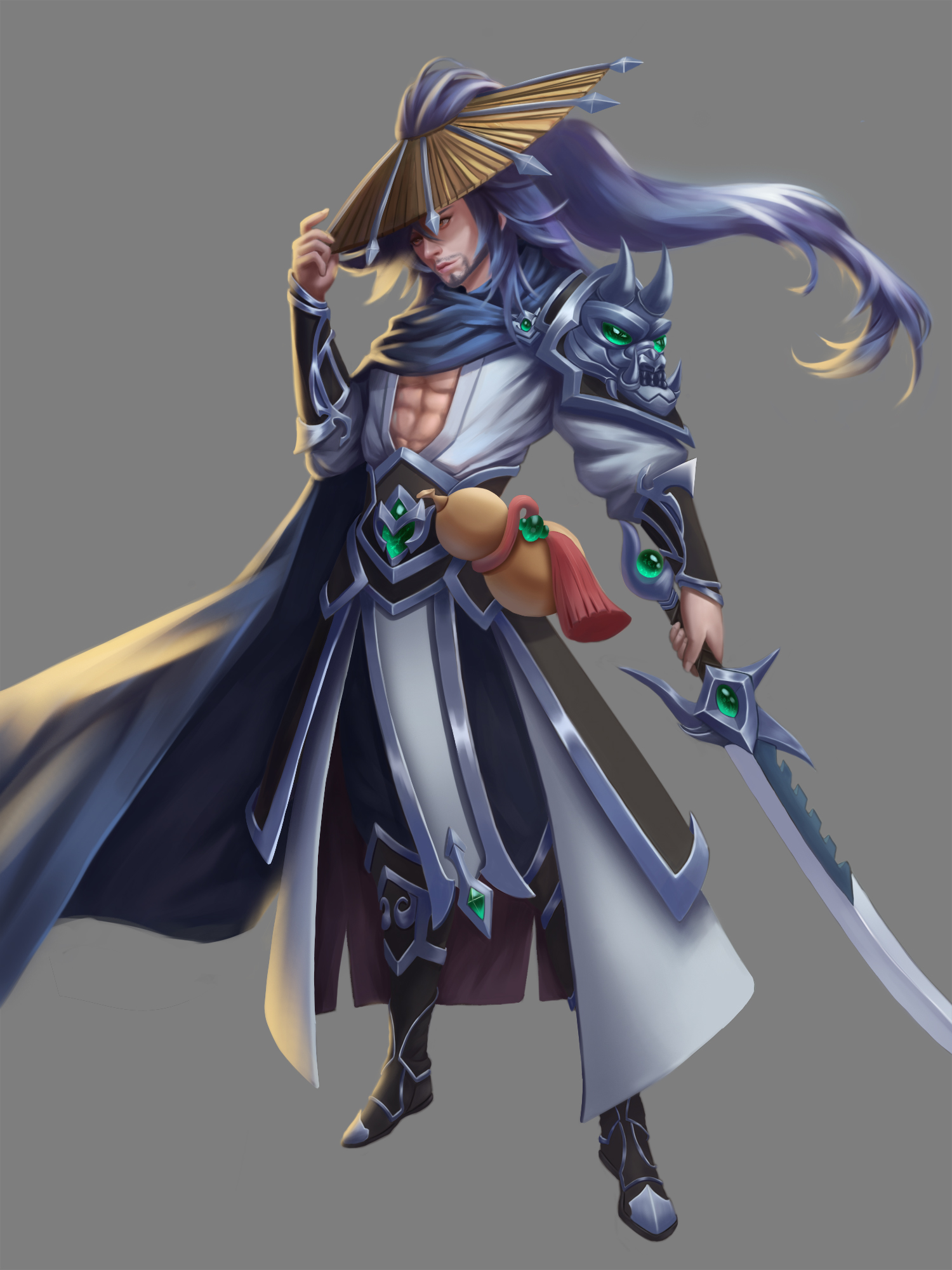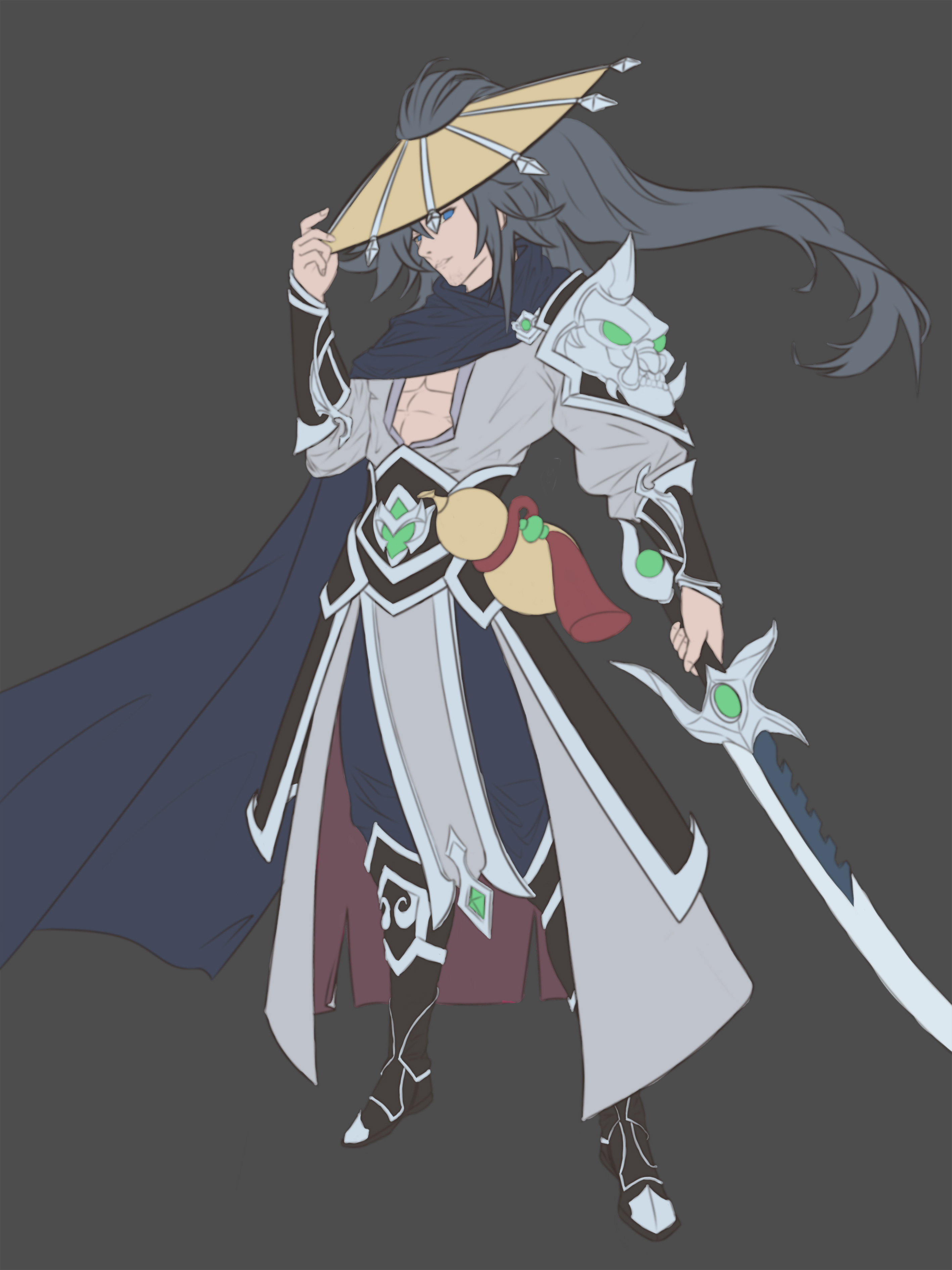 本次王座杯的主题是聊斋,第一映像一般来说就是鬼怪,但细想来,聊斋的世界观当中除了鬼怪之外,还有着道士这类的驱魔角色,所以我本次的作品(燕赤霞)便孕育而生了。因为各种原因我对燕赤霞的映像主要来自于倩女幽魂的电影当中,一个侠客形象的道长。