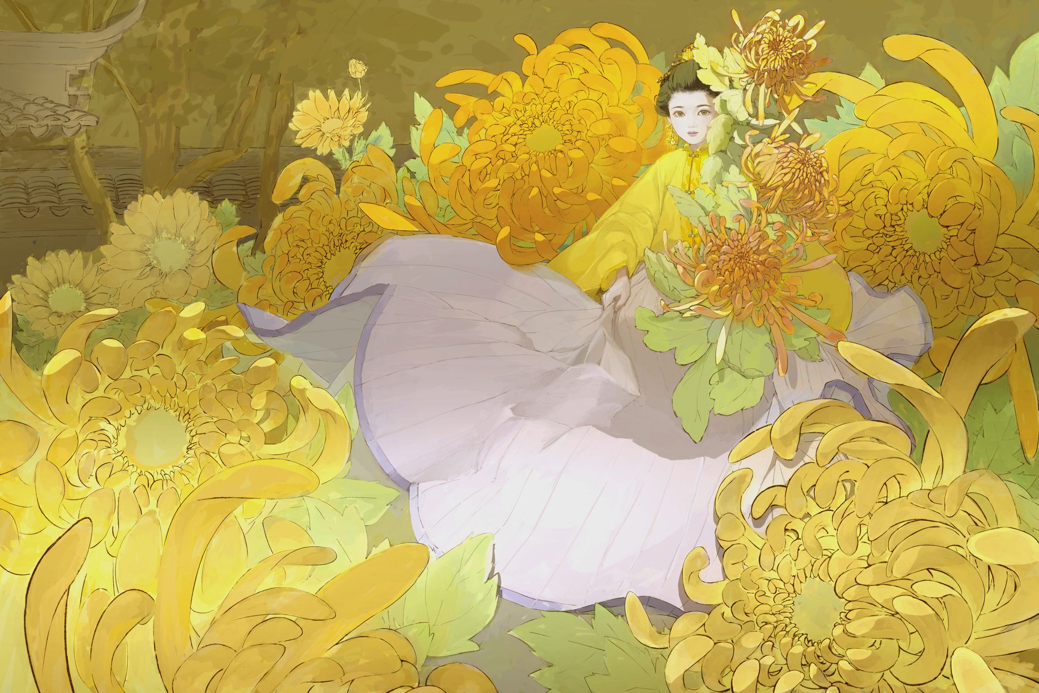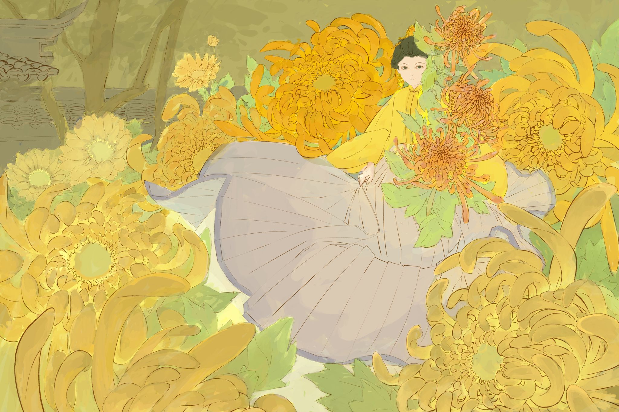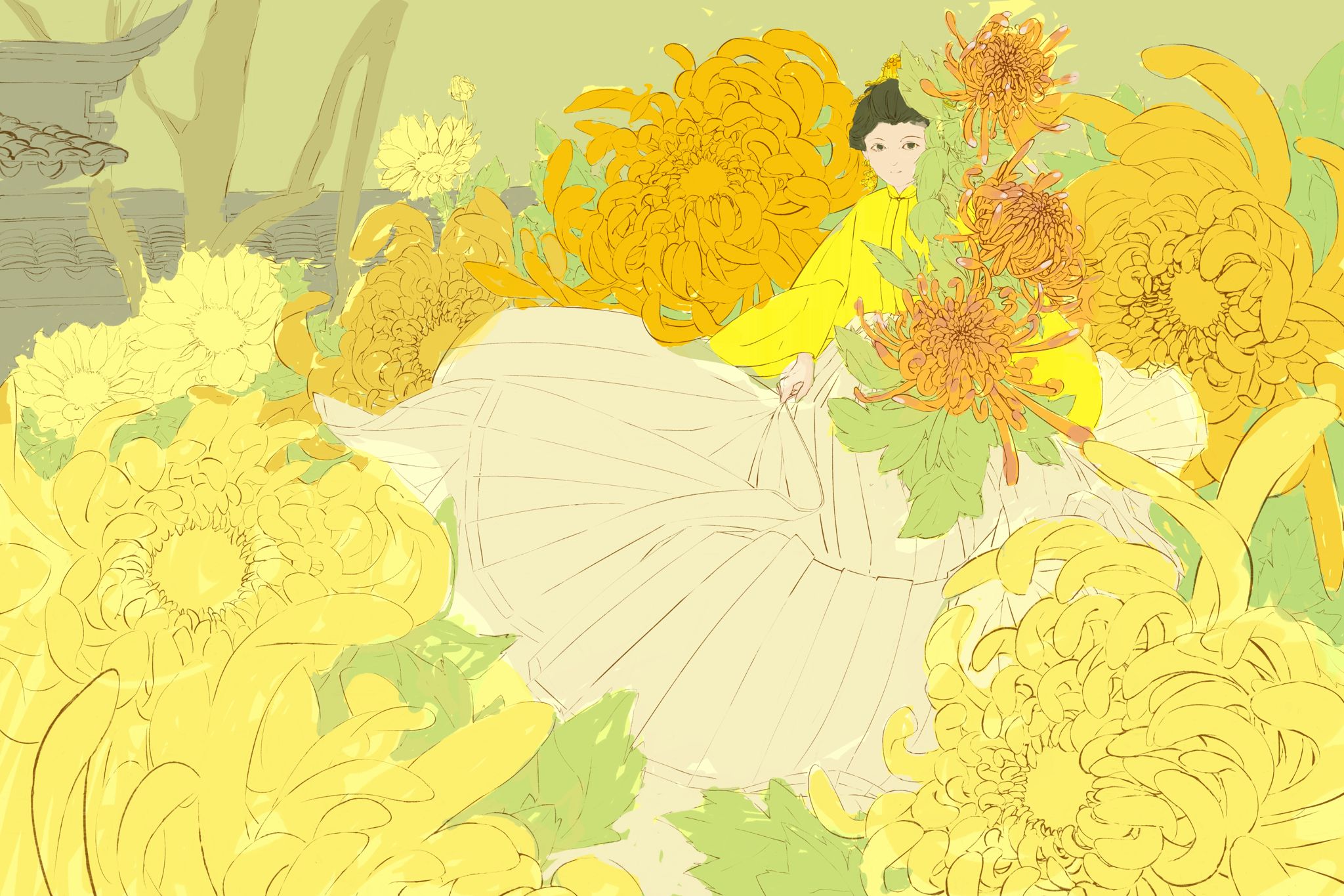 《黄英》篇章讲述顺天府的马子才爱菊,因此结缘了菊花精姐弟黄英和陶生。一次,马子才误伤醉后变菊的陶生,致使其死去,黄英设法救活他,后来长成了醉菊的故事。在平淡的生活里向往美好生活,热爱一件事物会让平淡生发出不一样的光。