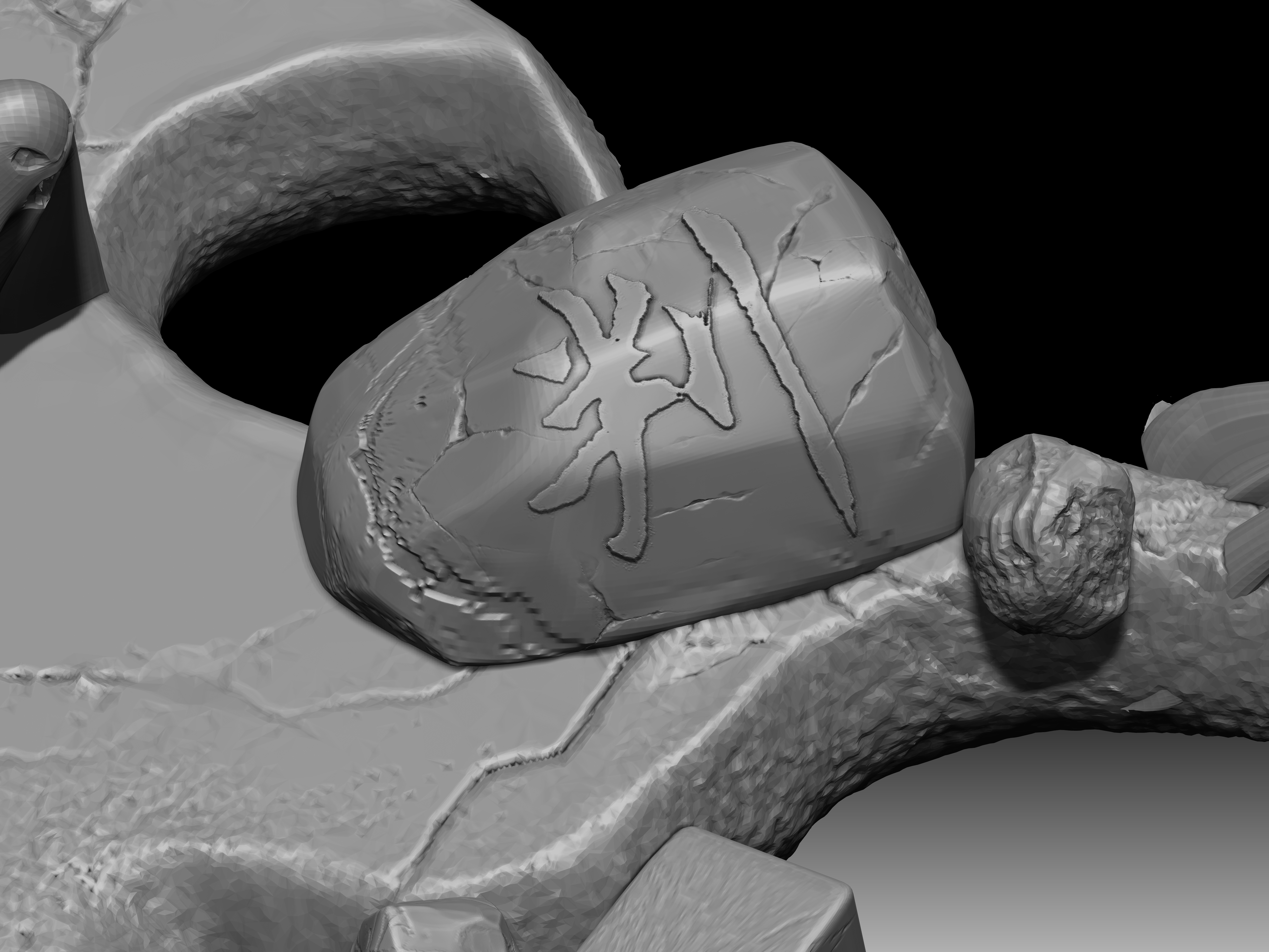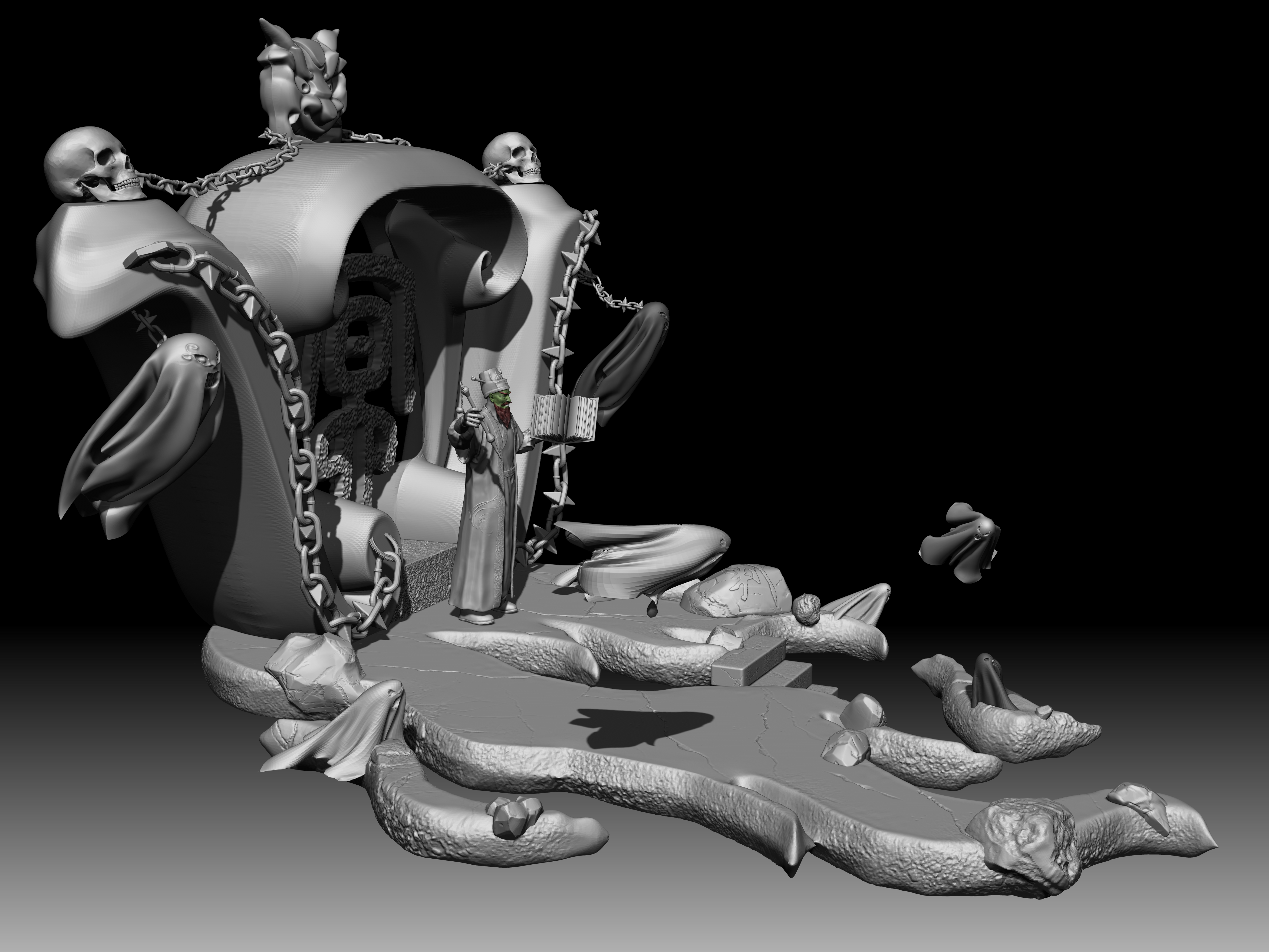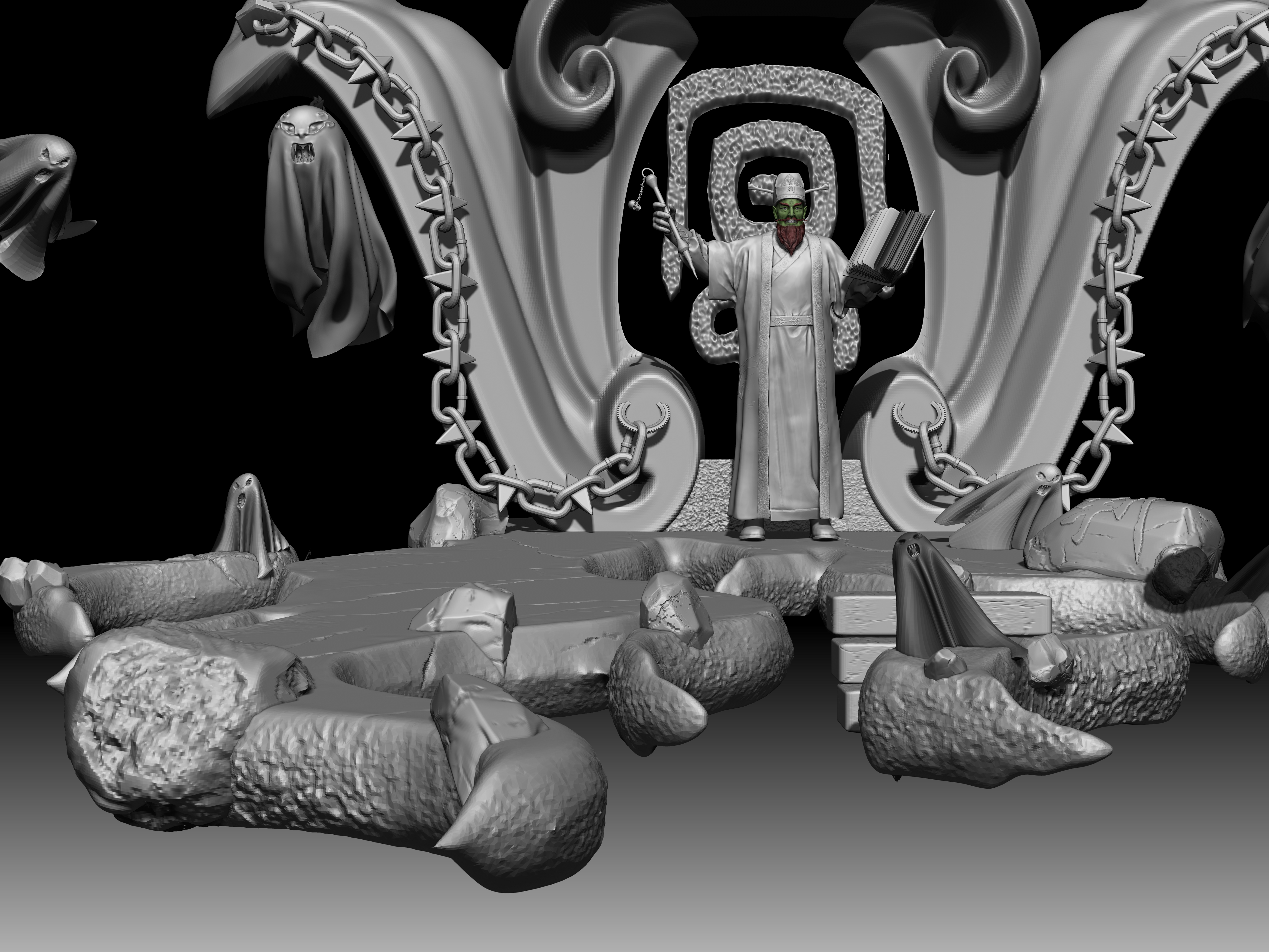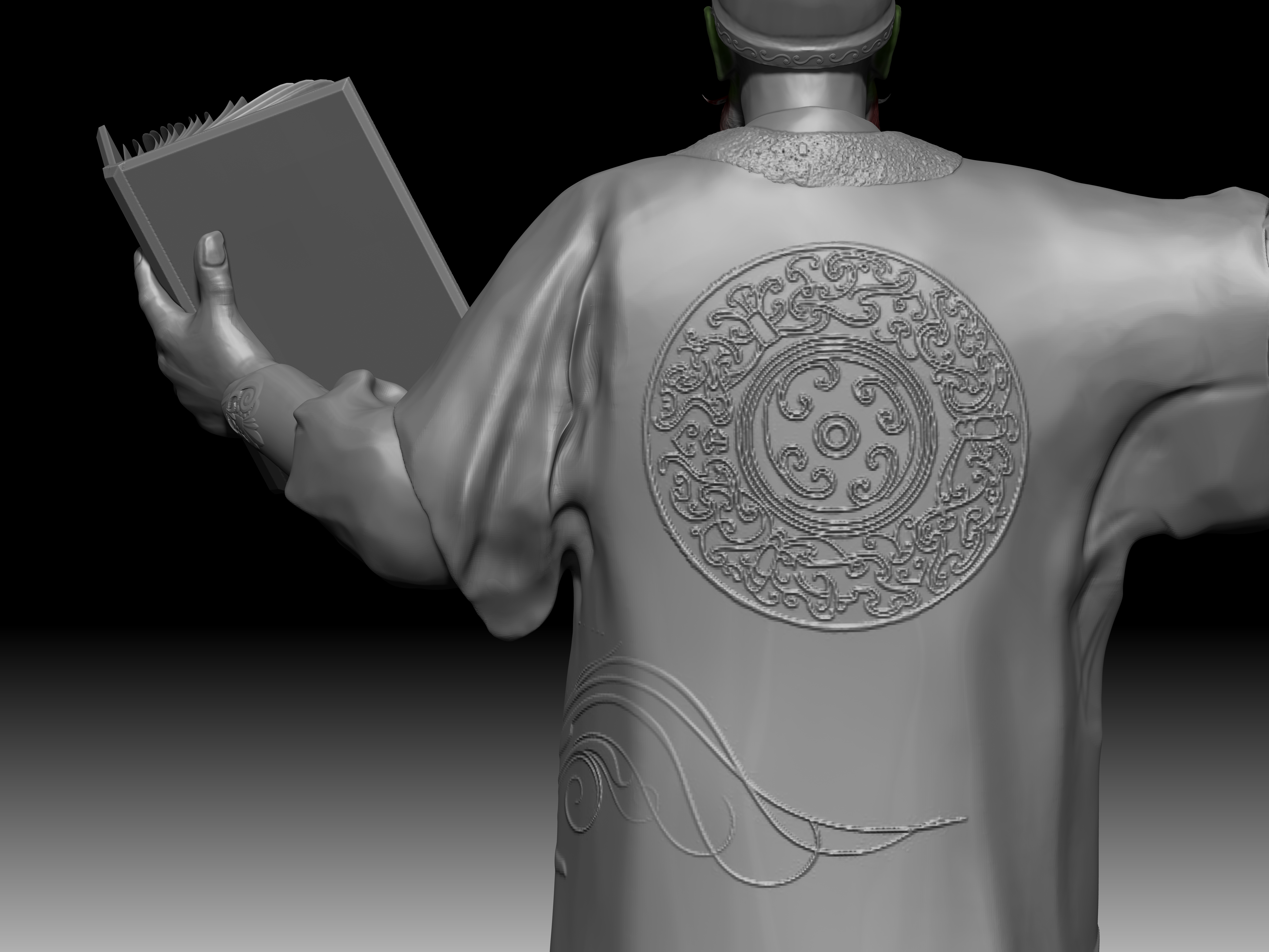 陆判是冥界的阴司,他双目如电,一副大义禀然的样子。其职责是使恶人受到惩罚,为冤者平反昭雪。他相貌狰狞,绿面红须,性格豪迈,刚强,监察人间寿尽之人,铁笔一勾,即来勾魂。在《聊斋志异》中,朱尔旦与陆判为友,为其换心,为其妻其后为其妻子换头,只留脖颈间一条红线,线上线下判若两人,可谓神技。